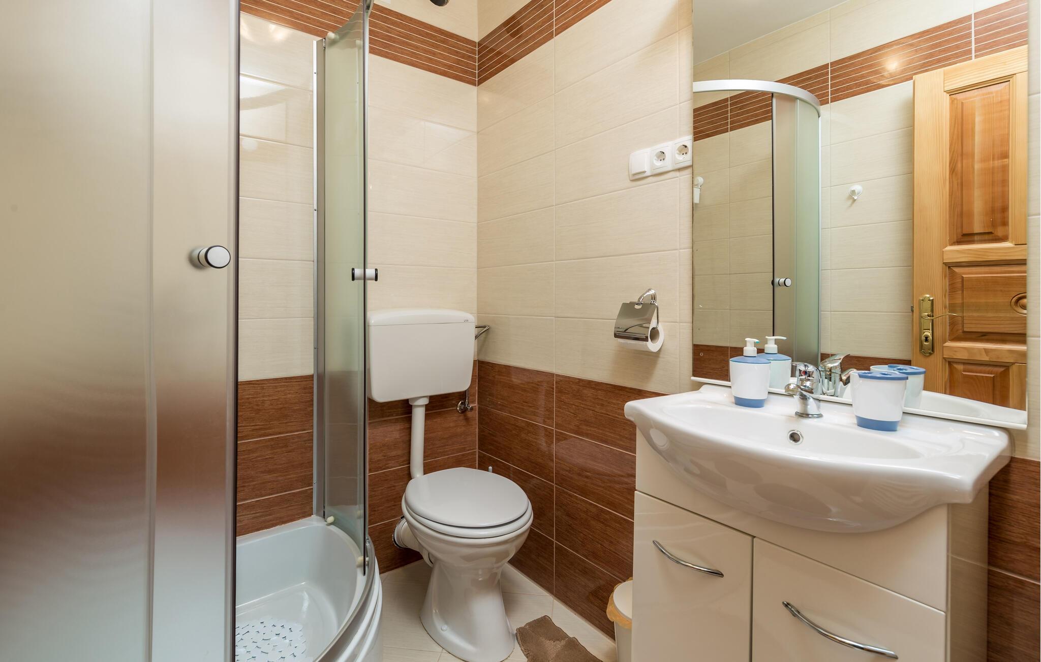 - WC med varmt og kaldt vann, Dusj