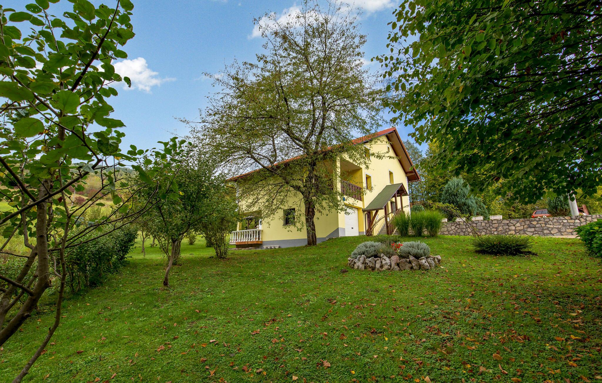 Denne velholdte ferieleiligheten ligger på en stor naturtomt langt borte fra byens kjas og mas. Inne finner du en hyggelig stueatmosfære der du kan lage mat, spise og slappe av med dine nærmeste. Lag deilige retter av lokale råvarer, og avrund en begivenhetsrik dag med en koselig spillekveld.