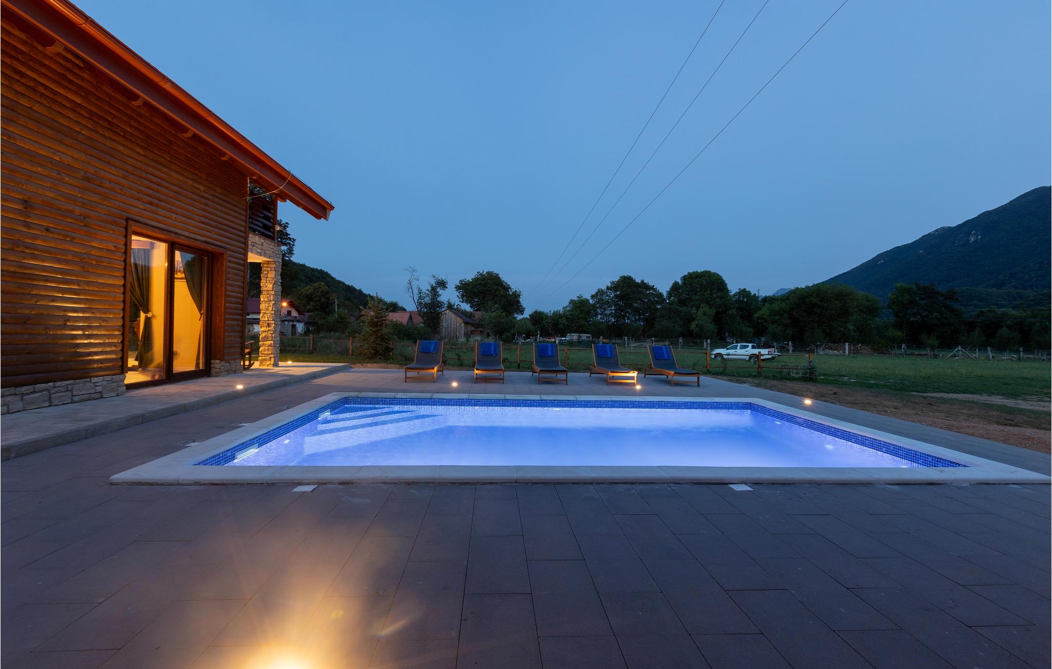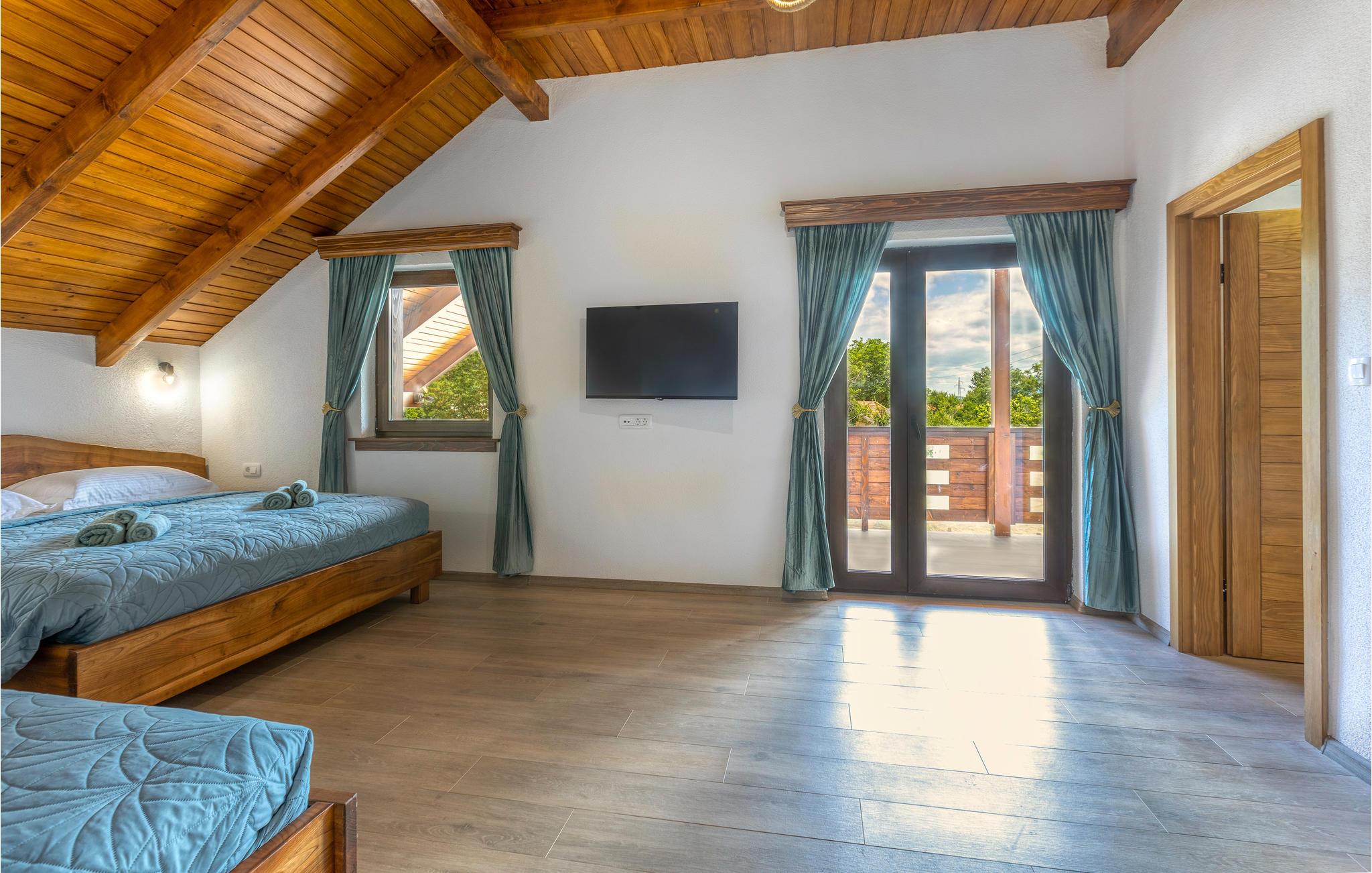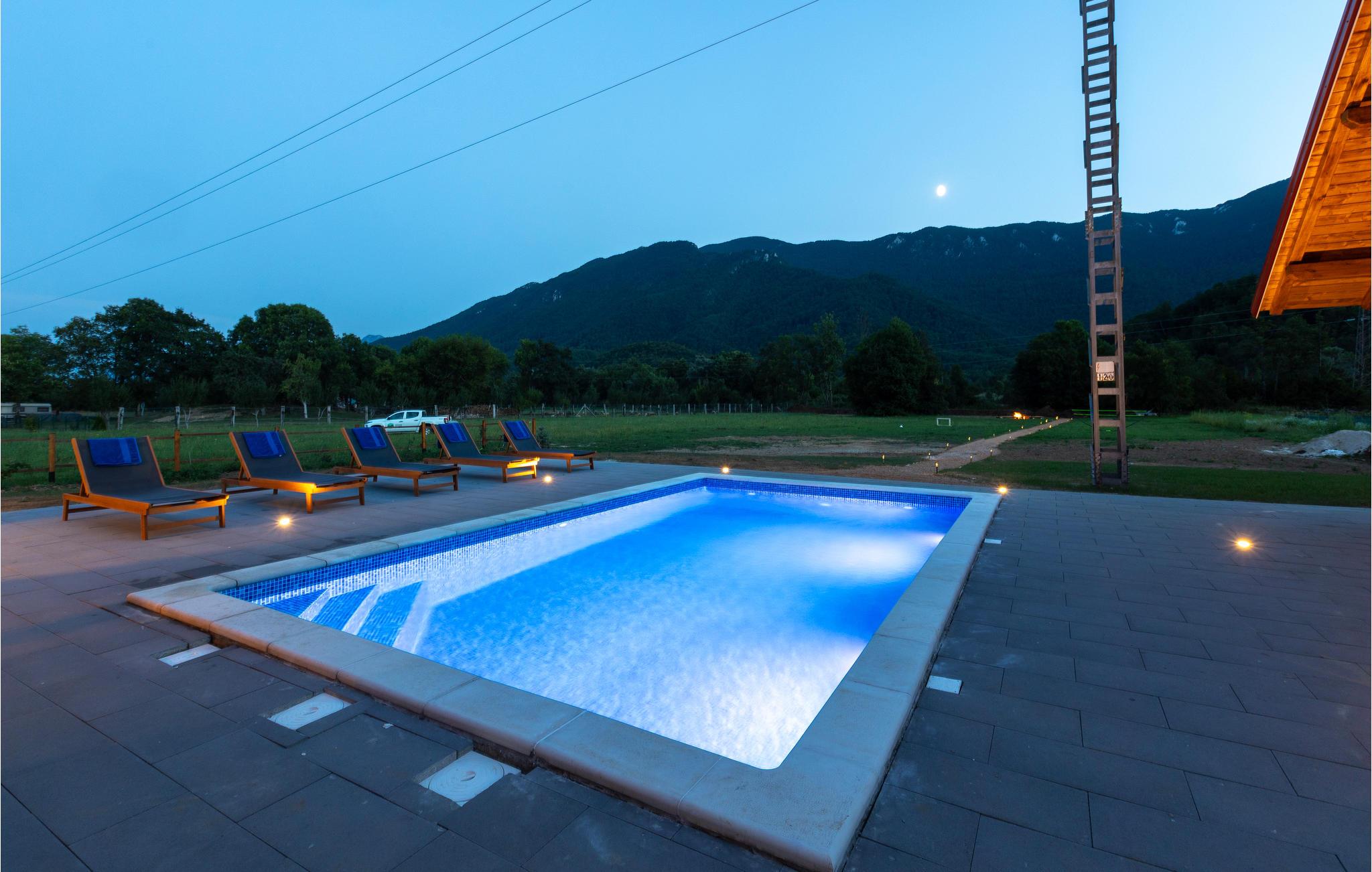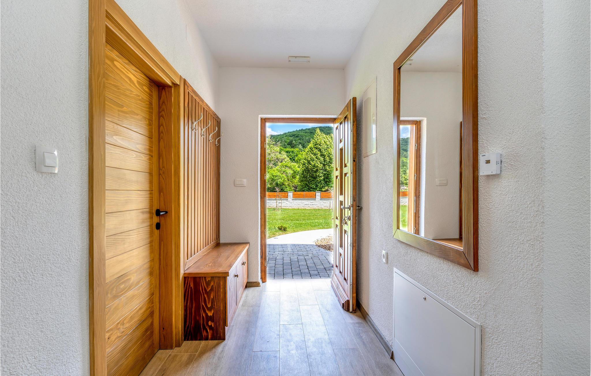 Ikke langt fra Gospi ligger dette vakre feriehuset i tre og stein, som er bygget i en spesiell stil. Det moderne huset gir dere som familie god plass og inviterer dere til å nyte alle fasilitetene i boligen. Nyt atmosfæren som skapes av kombinasjonen av treelementer og moderne møbler, og spill brettspill ved spisebordet om kvelden ved den åpne peisen. Ta en spasertur gjennom den vakkert anlagte hagen, og ta de første svømmeturene i bassenget tidlig om morgenen. Deretter kan du planlegge utflukter og aktiviteter over frokosten og dra av gårde litt senere.