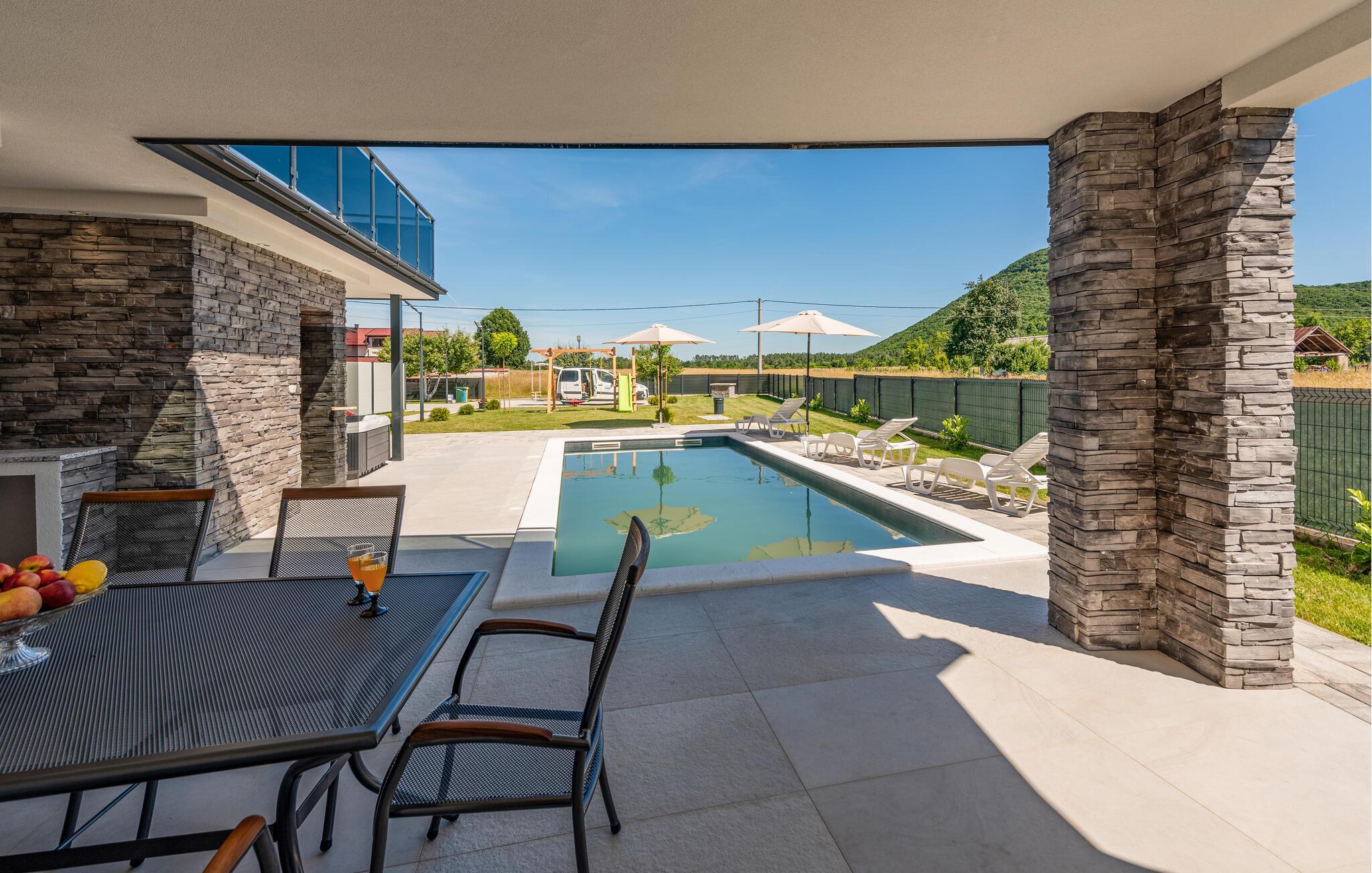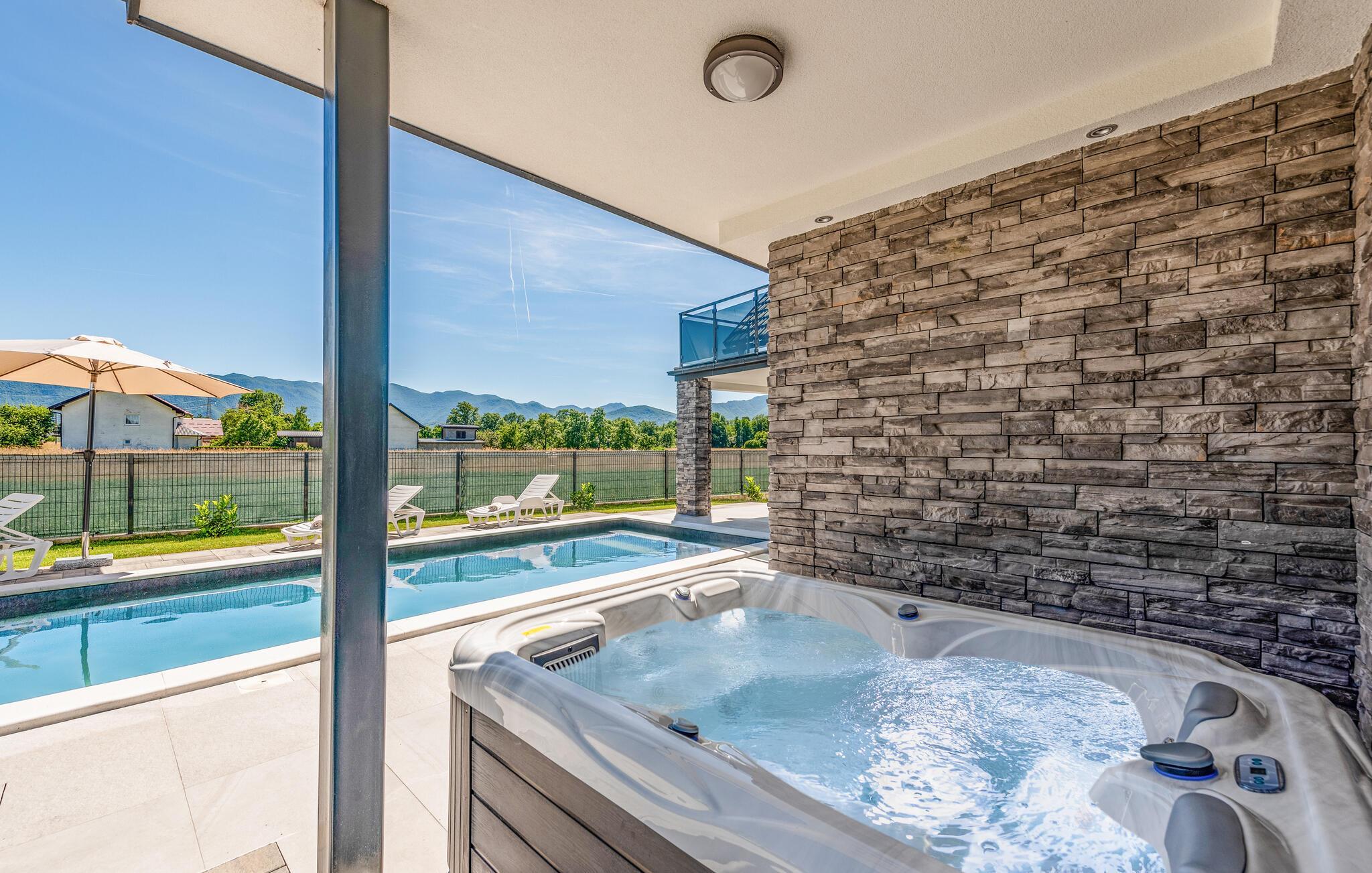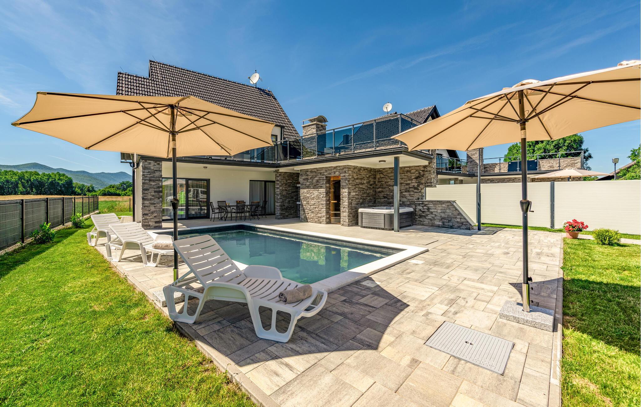 Forestill deg å sitte på den romslige terrassen og nyte den friske morgenluften eller et glass vin i hånden om kvelden. Svømmebassenget byr på forfriskninger på varme dager, mens du kan finne ren avslapning i badstuen eller boblebadet. Den velstelte hagen er et paradis for barn, som kan leke av hjertens lyst på lekeplassen mens du tilbereder middag på grillen.