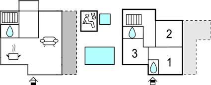 Feriehuset ligger på en tomt sammen med et annet feriehus, som er adskilt med en skjerm for å sikre privatlivets fred.
