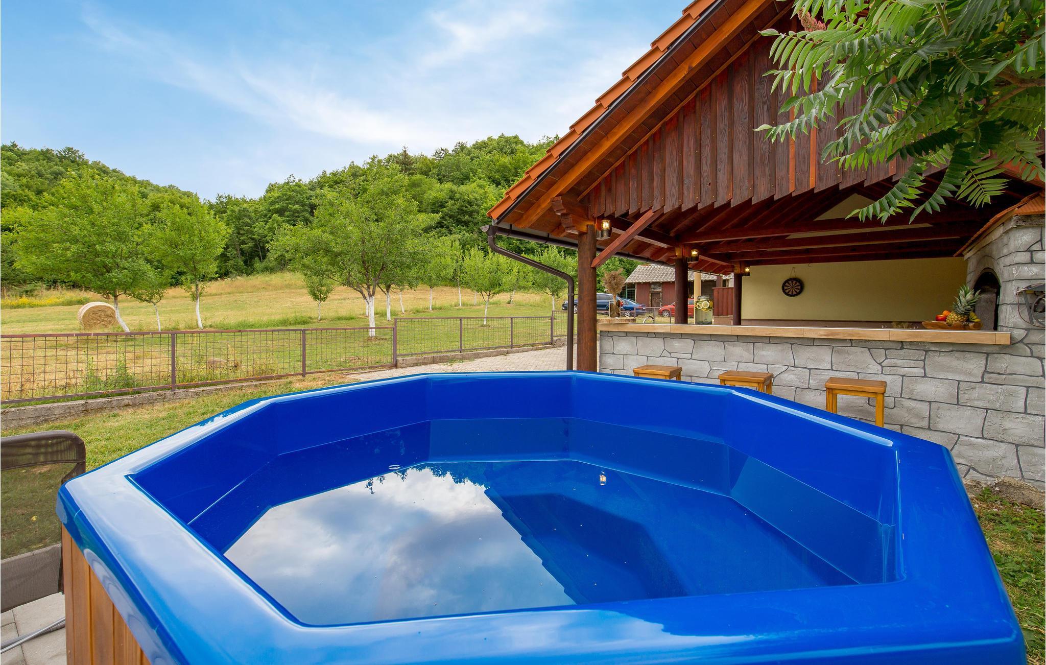 Nyt livet utendørs på husets overbygde terrasse, ta en dukkert i boblebadet og avrund dagen med en deilig grillmiddag. For barna finnes det en huske, leker og massevis av lekeapparater.