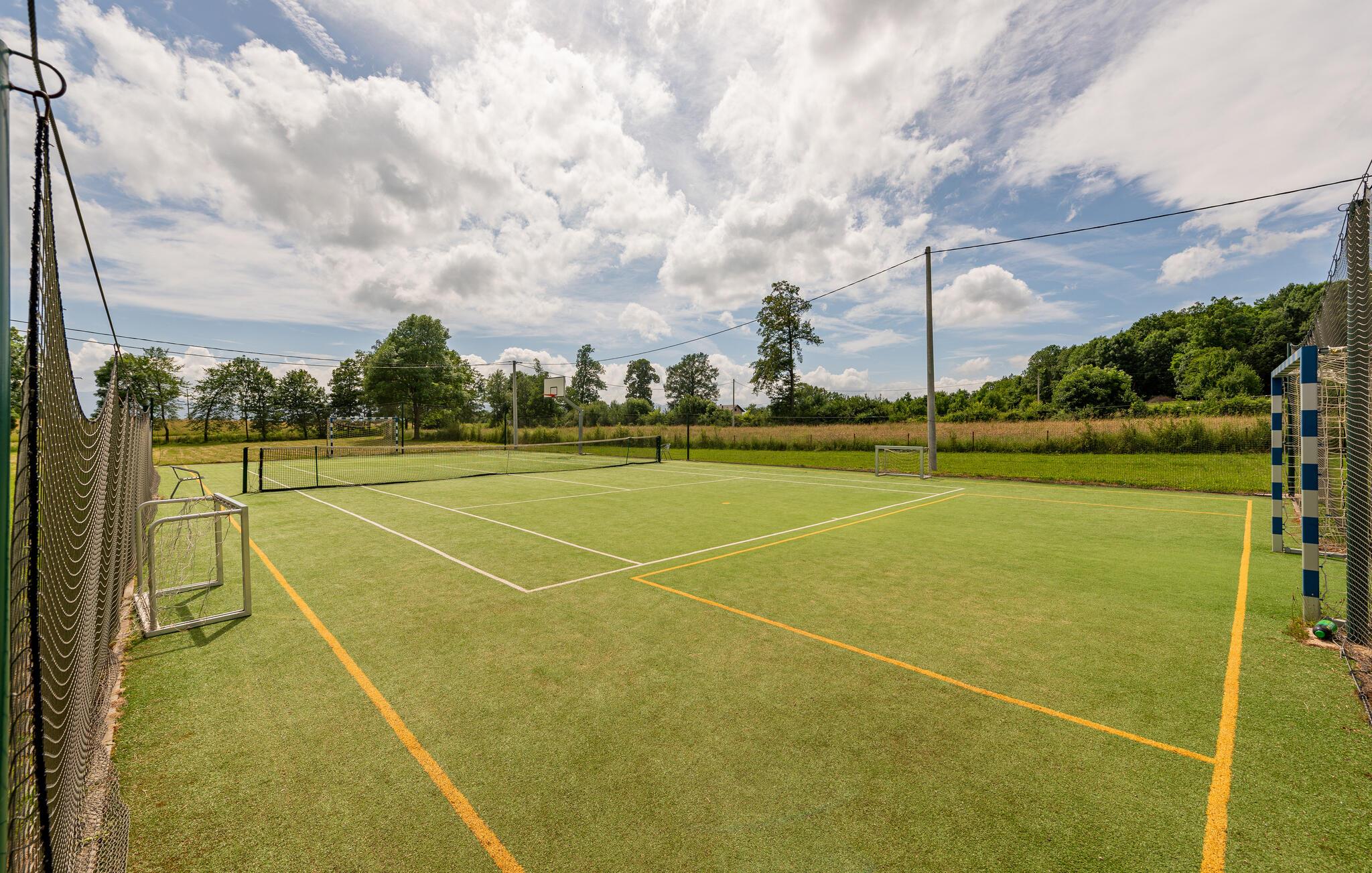 Et svømmebasseng venter på deg i hagen, slik at du kan slappe av etter fotturene. Barna dine vil elske lekeplassen og den multifunksjonelle idrettsbanen som dere deler med nabohuset.
