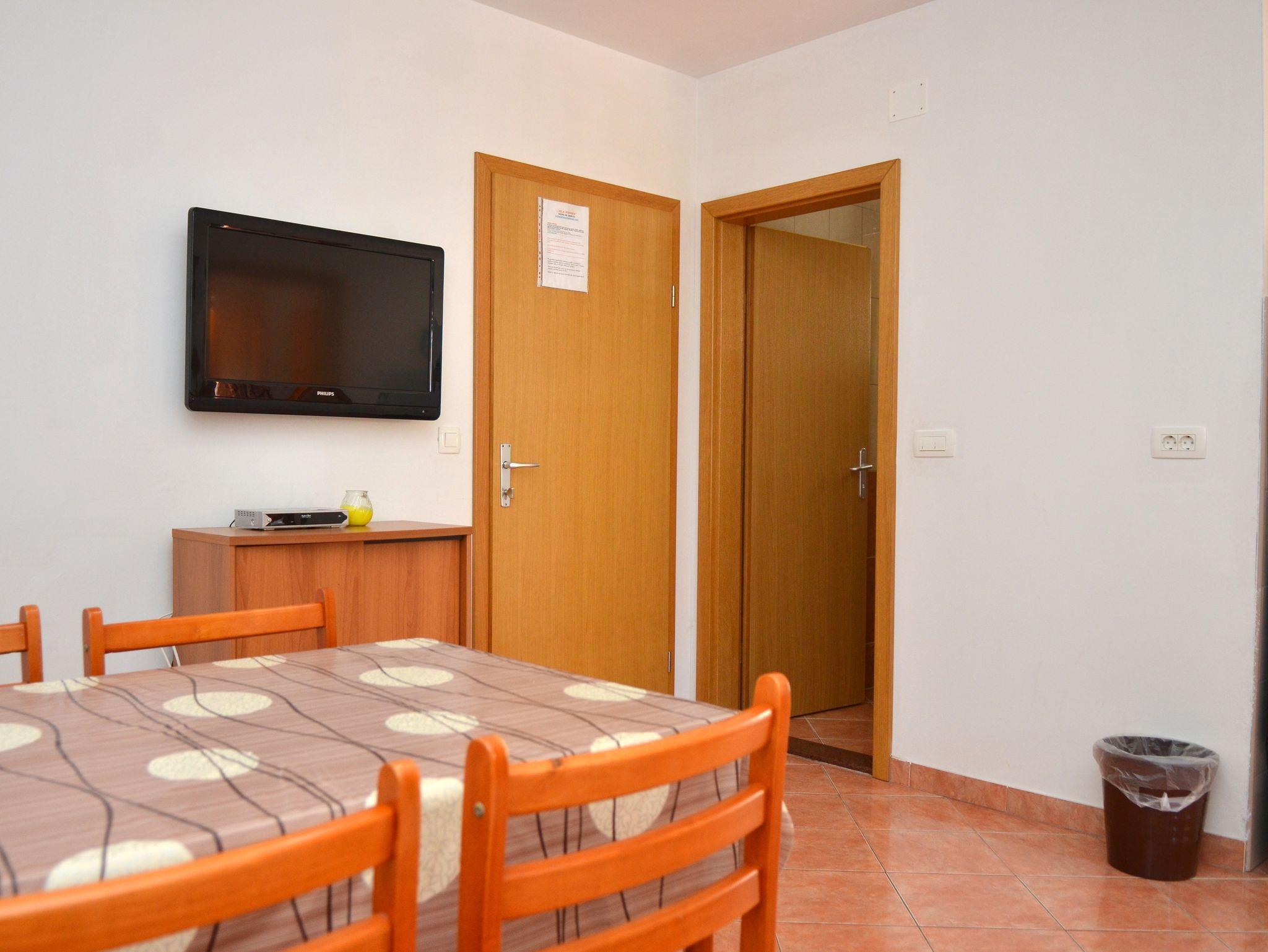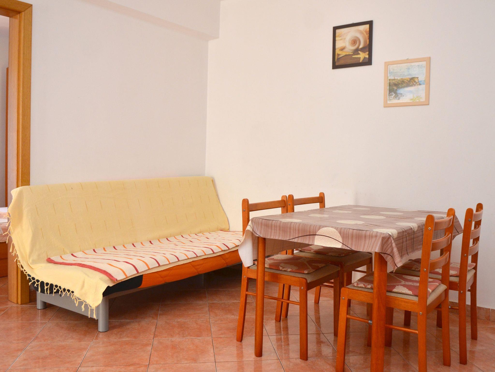 Ferienwohnung bietet Platz für 5 Gäste. Die Betten sind in Schlafzimmern, die es 2 gibt, und in Esszimmer, innerhalb einer Gesamtfläche von 39m2, angeordnet. Die Gäste haben einen eigenen Balkon zur Verfügung, auf der sie in warmen Sommernächten genießen können. Das Apartment bietet Meerblick. Es ist erlaubt, Speisen auf dem Gemeinschafts-Grill vorzubereiten. IM PREIS INBEGRIFFEN: Kurtaxe, Endreinigung, Klimatisierung, Parkplatz, Internet, Kinderbett. VERBINDLICHE ZUSÄTZLICHE KOSTEN: Aufzahlung für Kurzaufenthalte (prozentualer Zuschlag pro Nächtigungsanzahl: 30% - 1, 20% - 2, 10% - 3). UNVERBINDLICHE ZUSÄTZLICHE KOSTEN: Wäschewaschen (5,00 € Waschen). Die Verfügbarkeit zusätzlicher Dienstleistungen in Ihrem reservierten Termin und die Preise derselben (falls nicht aufgeführt) müssen im Voraus überprüft werden. Zusätzliche Dienstleistungen die in der Zahlungsaufforderung nicht aufgeführt sind werden direkt beim Vermieter bezahlt, angenommen der Gast nutzt auch diese. Ermäßigung auf den Grundpreis: Gratistag 21=19 (bei einem Aufenthalt von 21 Tagen oder mehr erhalten Sie 2 Gratistage für den Aufenthalt bis 31.12.26).