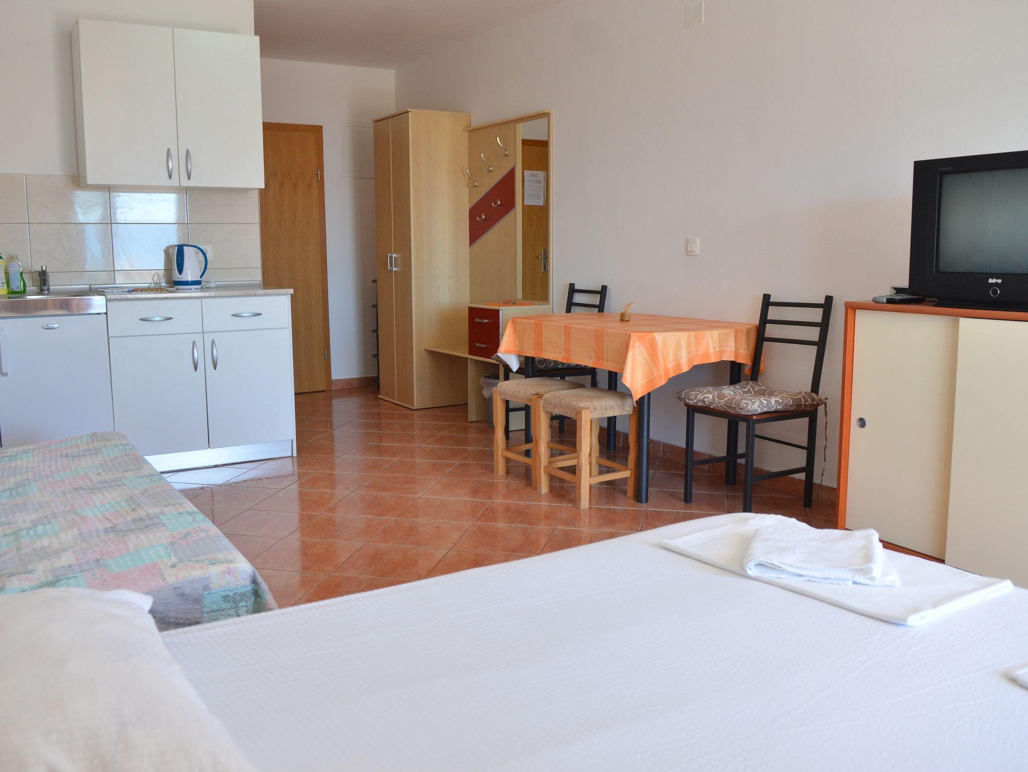 Studio bietet Platz für 3 Gäste. Die Betten sind in Schlafzimmern, die es 1 gibt, innerhalb einer Gesamtfläche von 24m2, angeordnet. Die Gäste haben einen eigenen Balkon zur Verfügung, auf der sie in warmen Sommernächten genießen können. Das Studio-Apartment bietet Meerblick. Es ist erlaubt, Speisen auf dem Gemeinschafts-Grill vorzubereiten. IM PREIS INBEGRIFFEN: Kurtaxe, Endreinigung, Klimatisierung, Parkplatz, Internet, Kinderbett. VERBINDLICHE ZUSÄTZLICHE KOSTEN: Aufzahlung für Kurzaufenthalte (prozentualer Zuschlag pro Nächtigungsanzahl: 30% - 1, 20% - 2, 10% - 3). UNVERBINDLICHE ZUSÄTZLICHE KOSTEN: Wäschewaschen (5,00 € Waschen). Die Verfügbarkeit zusätzlicher Dienstleistungen in Ihrem reservierten Termin und die Preise derselben (falls nicht aufgeführt) müssen im Voraus überprüft werden. Zusätzliche Dienstleistungen die in der Zahlungsaufforderung nicht aufgeführt sind werden direkt beim Vermieter bezahlt, angenommen der Gast nutzt auch diese. Ermäßigung auf den Grundpreis: Gratistag 21=19 (bei einem Aufenthalt von 21 Tagen oder mehr erhalten Sie 2 Gratistage für den Aufenthalt bis 31.12.26).