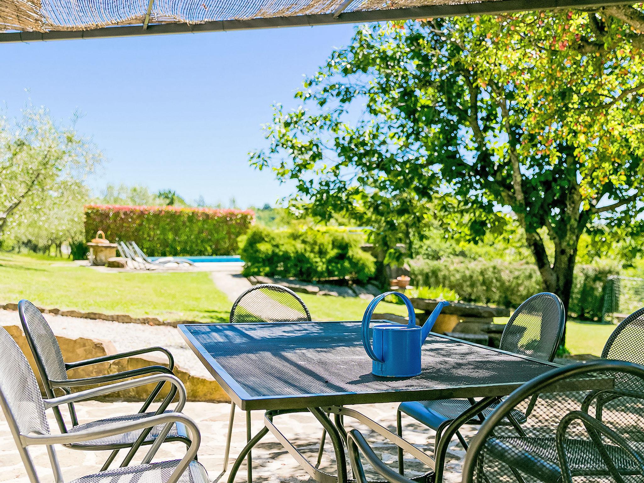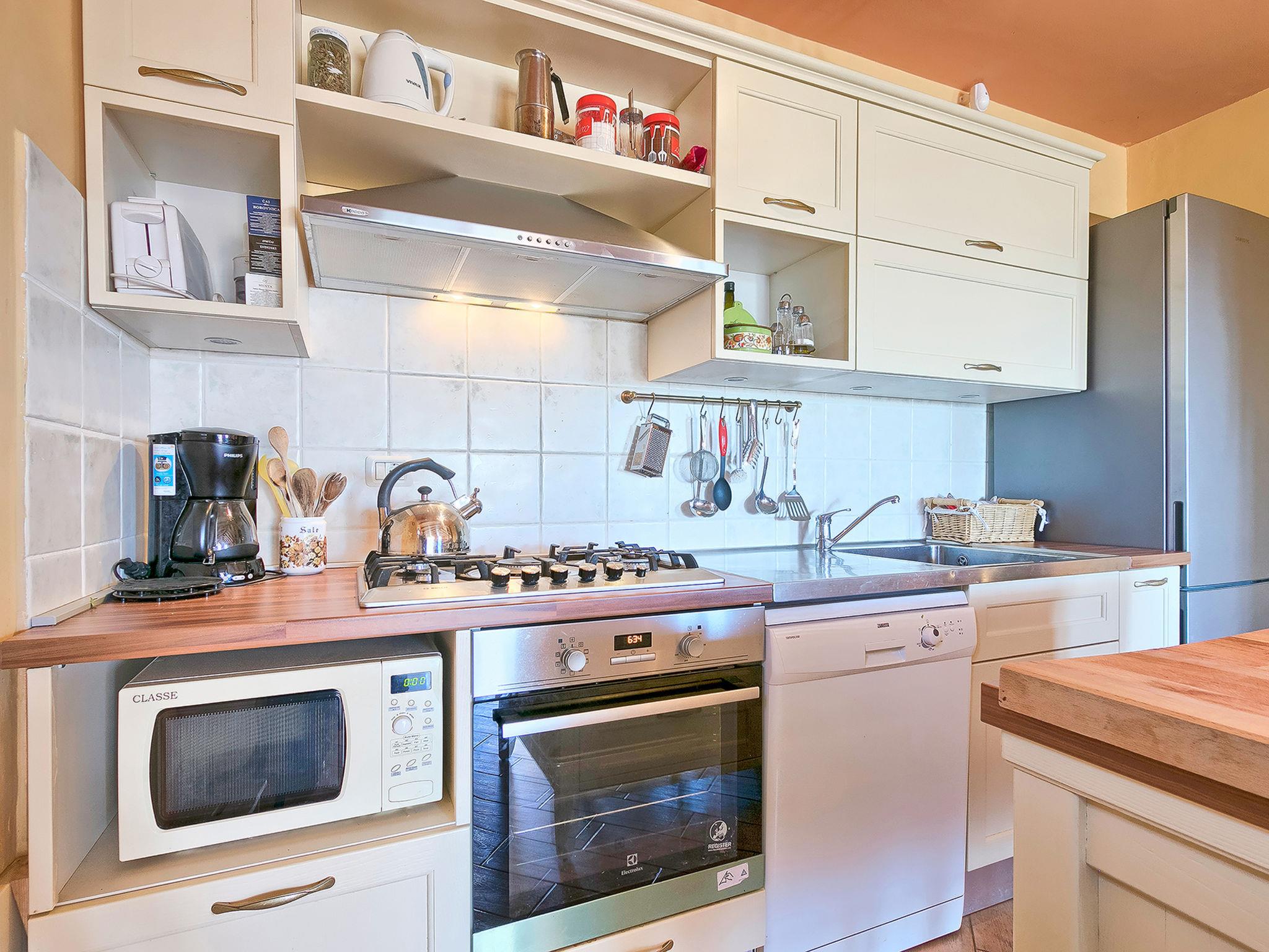 8-room house 250 m2 on 2 levels. Cosy furnishings: living/dining room with kitchen corner and satellite TV (flat screen). Exit to the terrace. 1 room with 1 french bed (160 cm, length 200 cm), satellite TV. Living/dining room with kitchen corner and satellite TV. 1 room with 1 french bed (160 cm, length 200 cm). Large living/dining room with open-hearth fireplace, satellite TV and air conditioning. Exit to the terrace. Open kitchen (oven, dishwasher, 4 gas rings, kettle, microwave, freezer, electric coffee machine). 2 showers/WC, 2 sep. WC's. Upper floor: (exterior staircase) living/dining room with satellite TV and air conditioning. Exit to the terrace. 1 room with 1 french bed (160 cm, length 200 cm). 1 room with 2 beds (80 cm, length 200 cm). Open kitchen (oven, 4 gas rings, freezer, electric coffee machine). Shower/bidet/WC. Terrace 18 m2, roofed, 2 terraces 15 m2. Terrace furniture, deck chairs. Marvellous view of the countryside and the city. Facilities: safe, hair dryer. Internet (WiFi, free). Please note: non-smoking house. Maximum 1 small pet/ dog allowed.