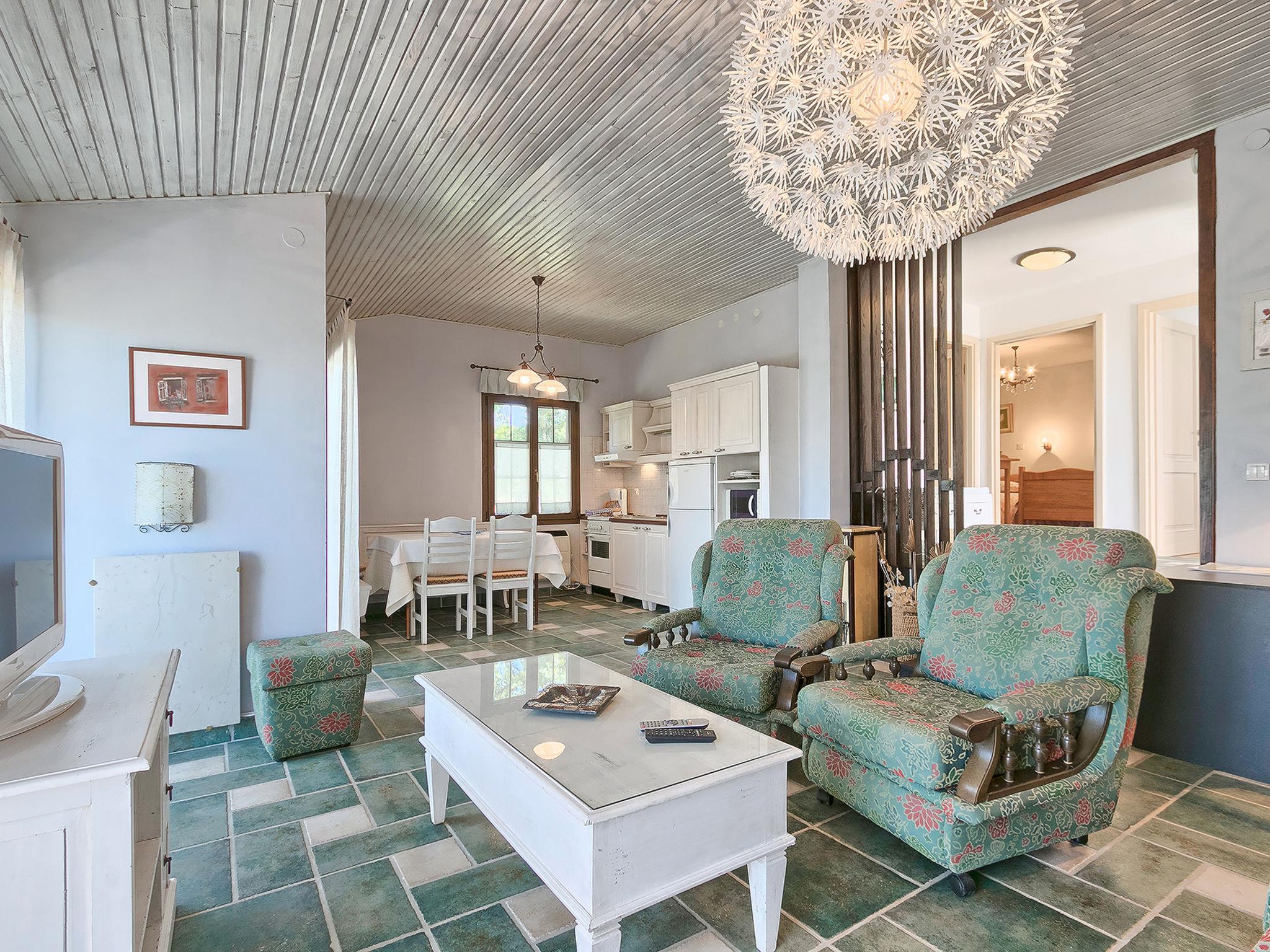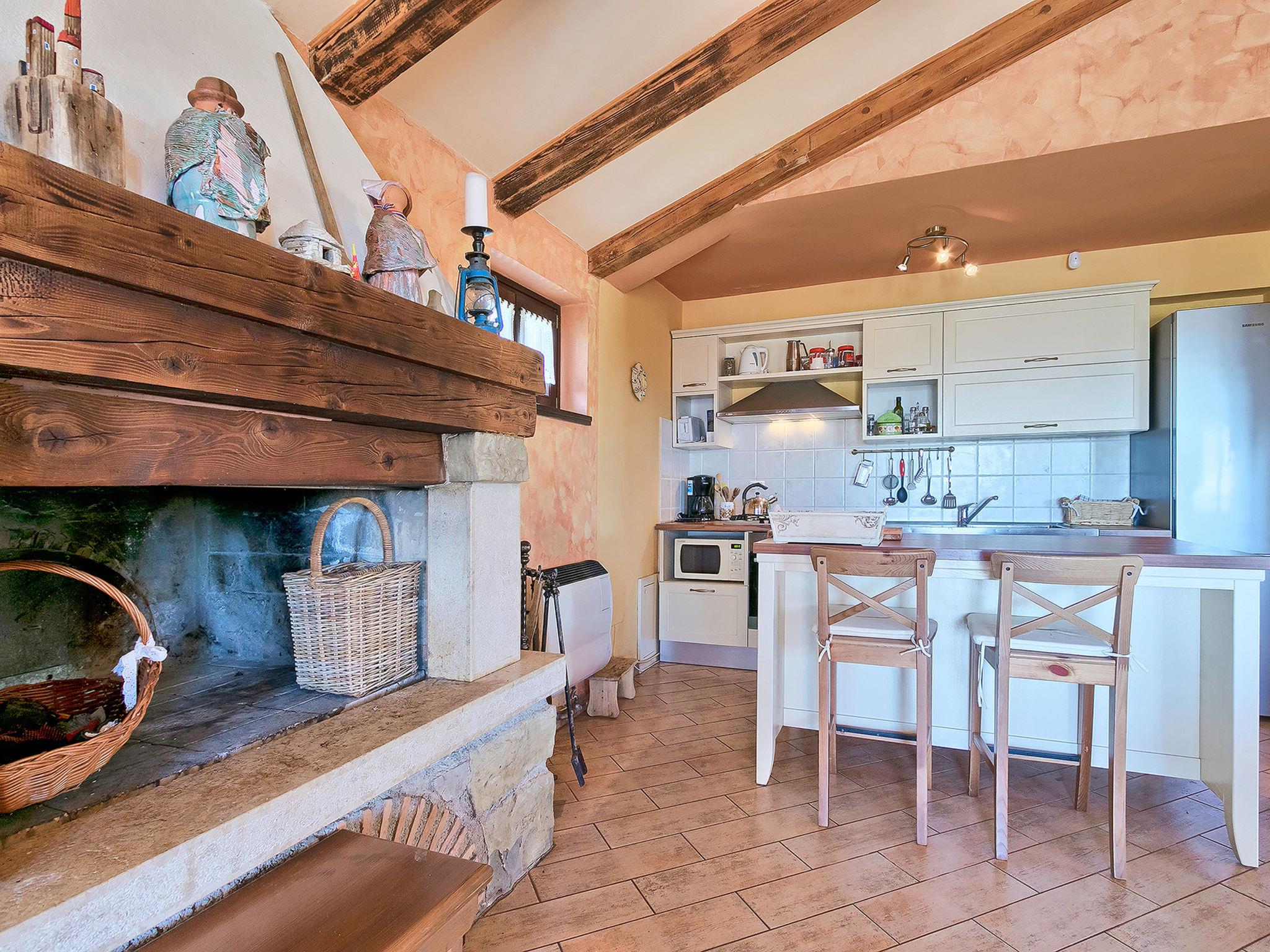 Beautiful 3-family house "Margherita", 2 storeys. In the hamlet Peroj 1 km from the centre of Grožnjan, in a quiet, sunny, elevated position, 20 km from the sea. Private: property 3'000 m2 (fenced), beautiful garden with lawn and wildlife garden, swimming pool angular (8 x 4 m, depth 140 cm, seasonal availability: 01.May. - 29.Sep.). Outdoor shower, barbecue. In the house: internet access, washing machine. Parking at the house on the premises. Shop 1 km, supermarket 8 km, restaurant 1 km, bus stop 8 km, railway station 35 km, pebble beach 20 km. Walking paths from the house 100 m, cycle lane 150 m.