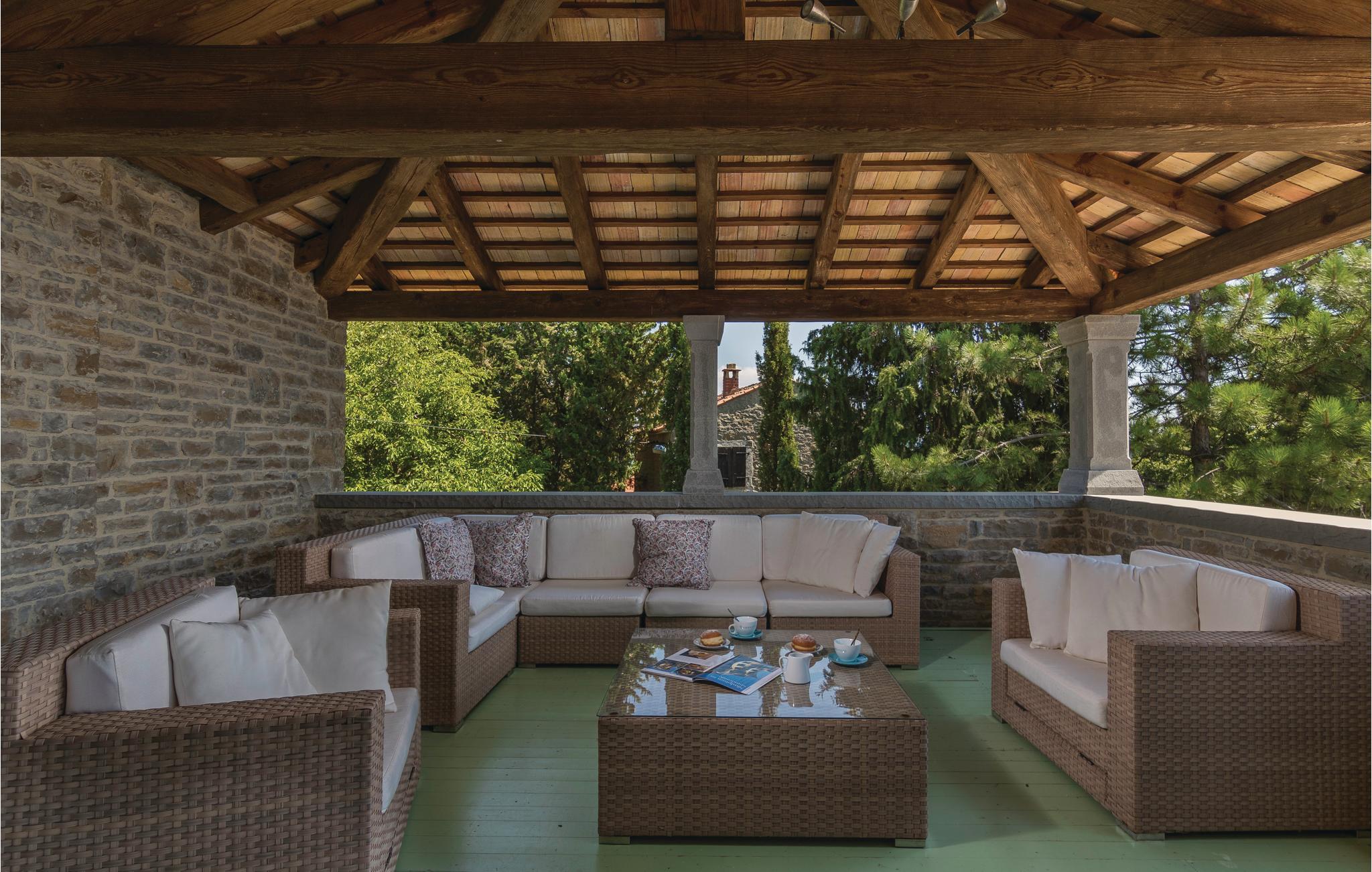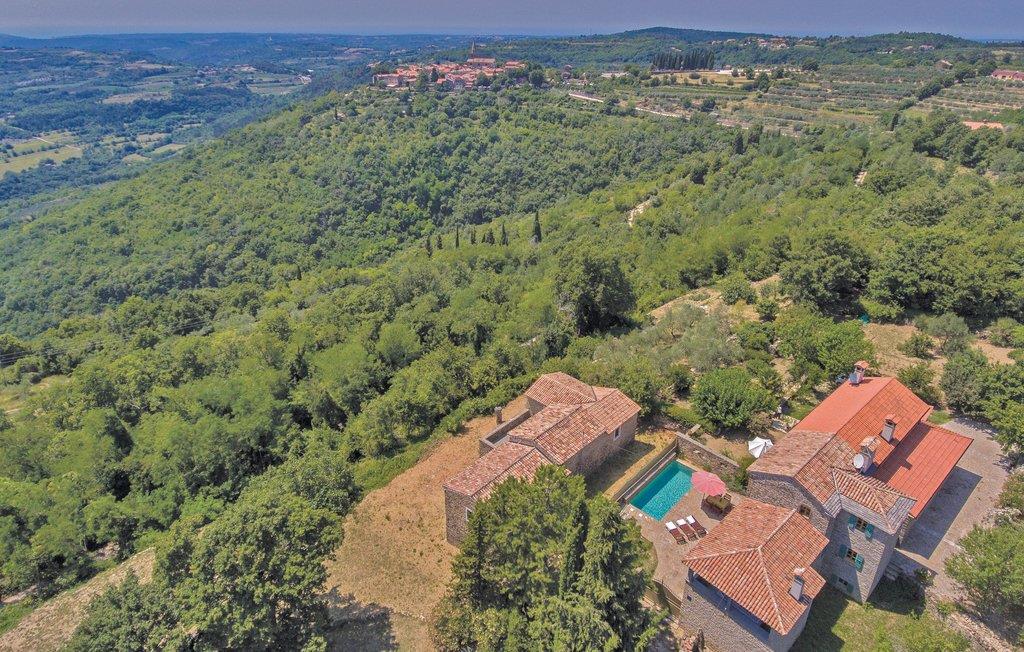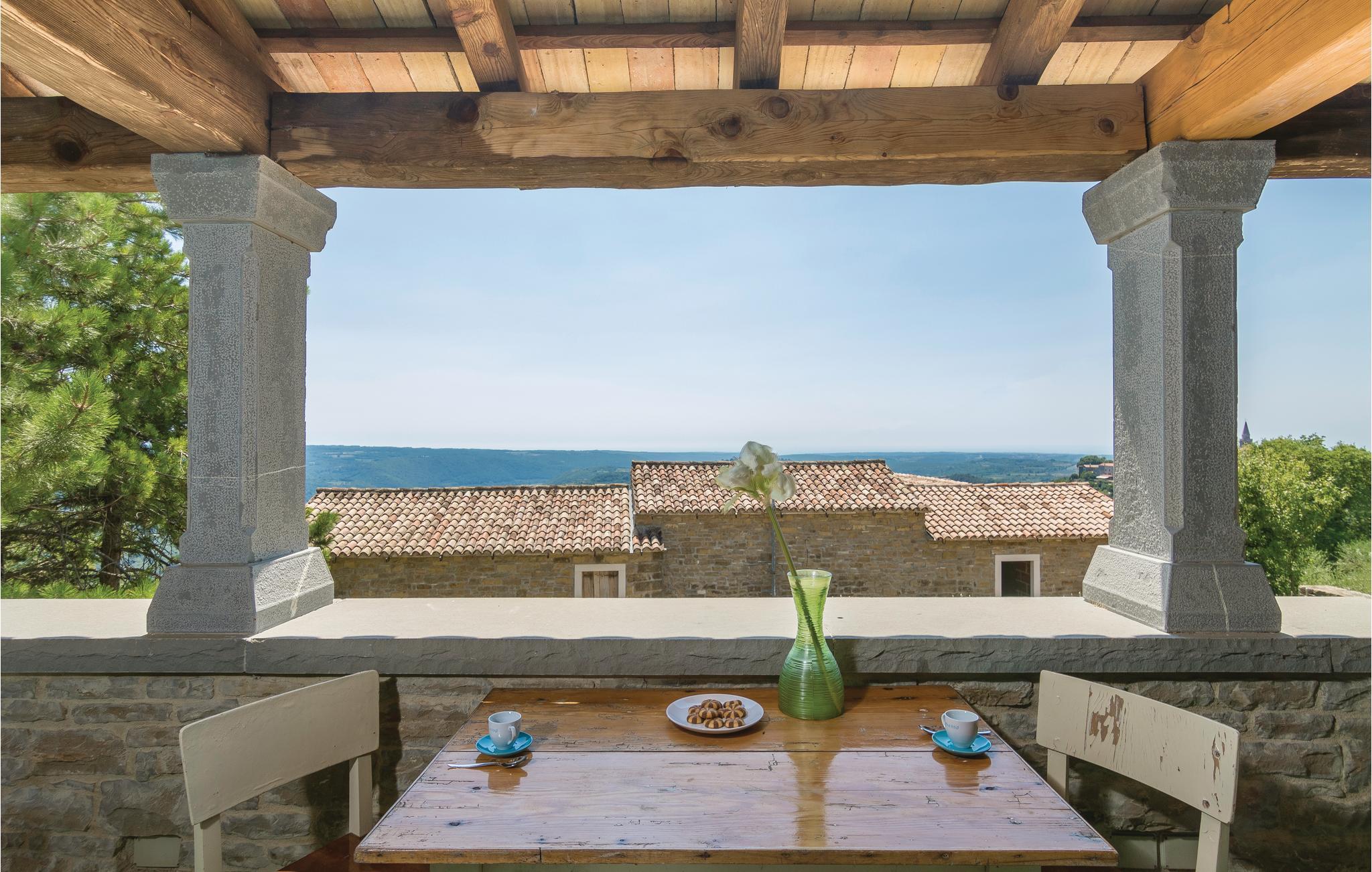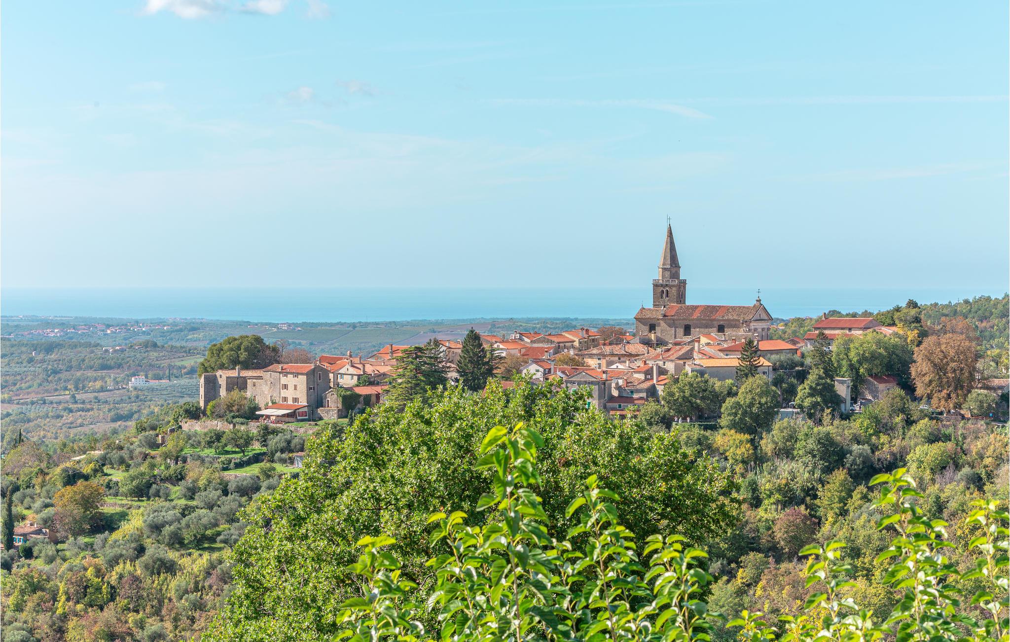 Karakteristisk steinhus i det indre av Istria. Huset tilbyr en kombinasjon av tradisjonell konstruksjon og moderne komfort. Nyt en forfriskende dukkert i svømmebassenget eller slapp av i boblebadet med romantisk stearinlys. Det spesielle med huset er definitivt den store terrassen, som er utstyrt med koselige møbler og inviterer deg til å slappe av, lese og drømme. Huset ligger på en tomt med en fortryllende utsikt over den lille byen Groznjan, som ligger bare 10 minutters gange unna. På nordsiden av landsbyen kan du utforske det vakre skogsområdet, som også krysses av en sykkelsti. Området er kjent for den gode olivenoljen (noen bønder har oppnådd verdensomspennende berømmelse) og produksjonen av vinsortene Malwasia og Teran. De deilige rettene laget av hvite trøfler anbefales også. Sopp og vill asparges vokser i området. I sommermånedene finner det sted mange musikalske og kulturelle arrangementer i Groznjan.