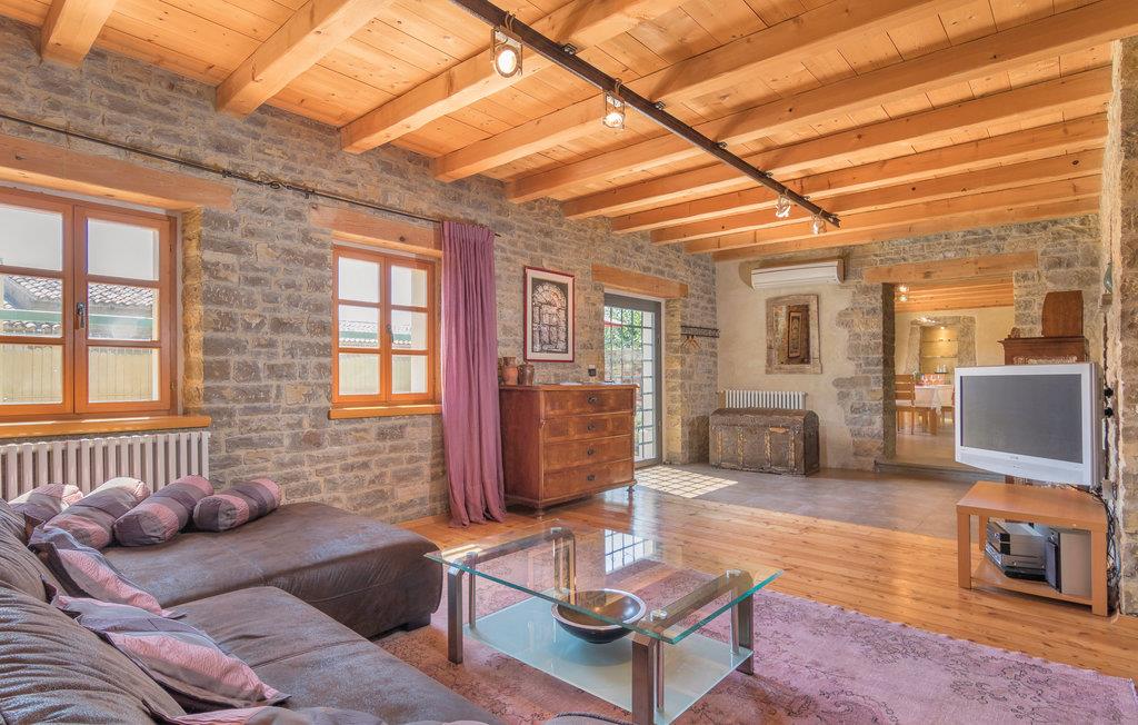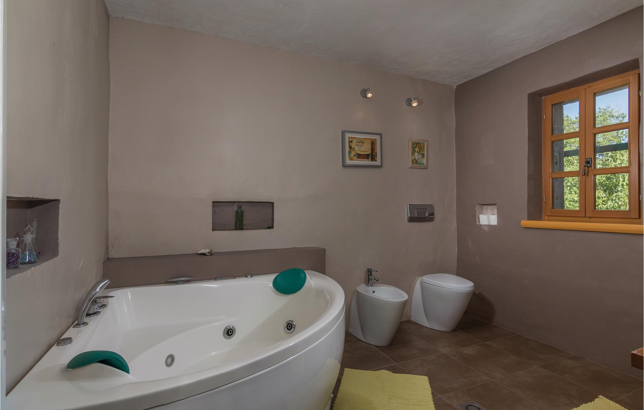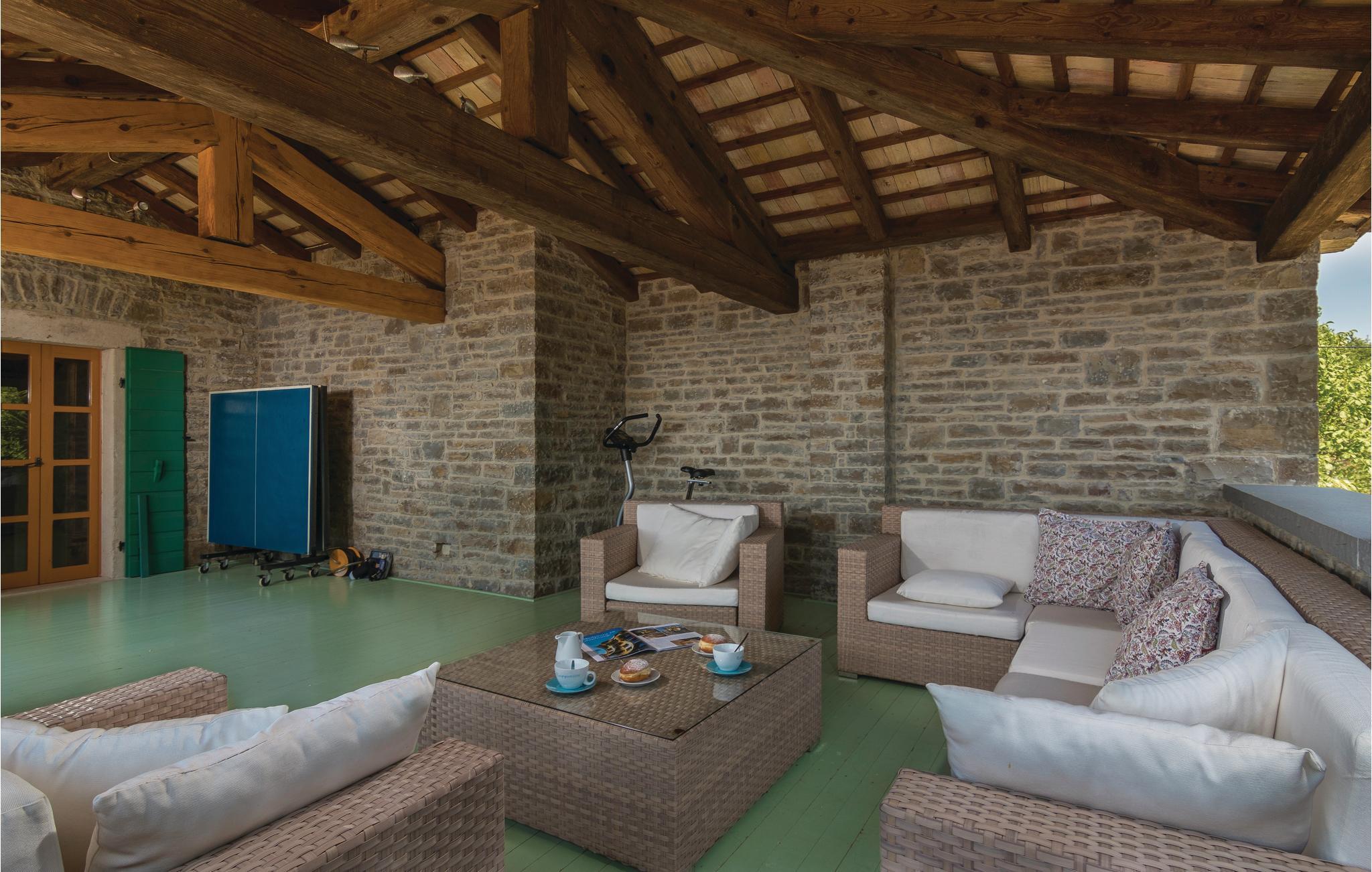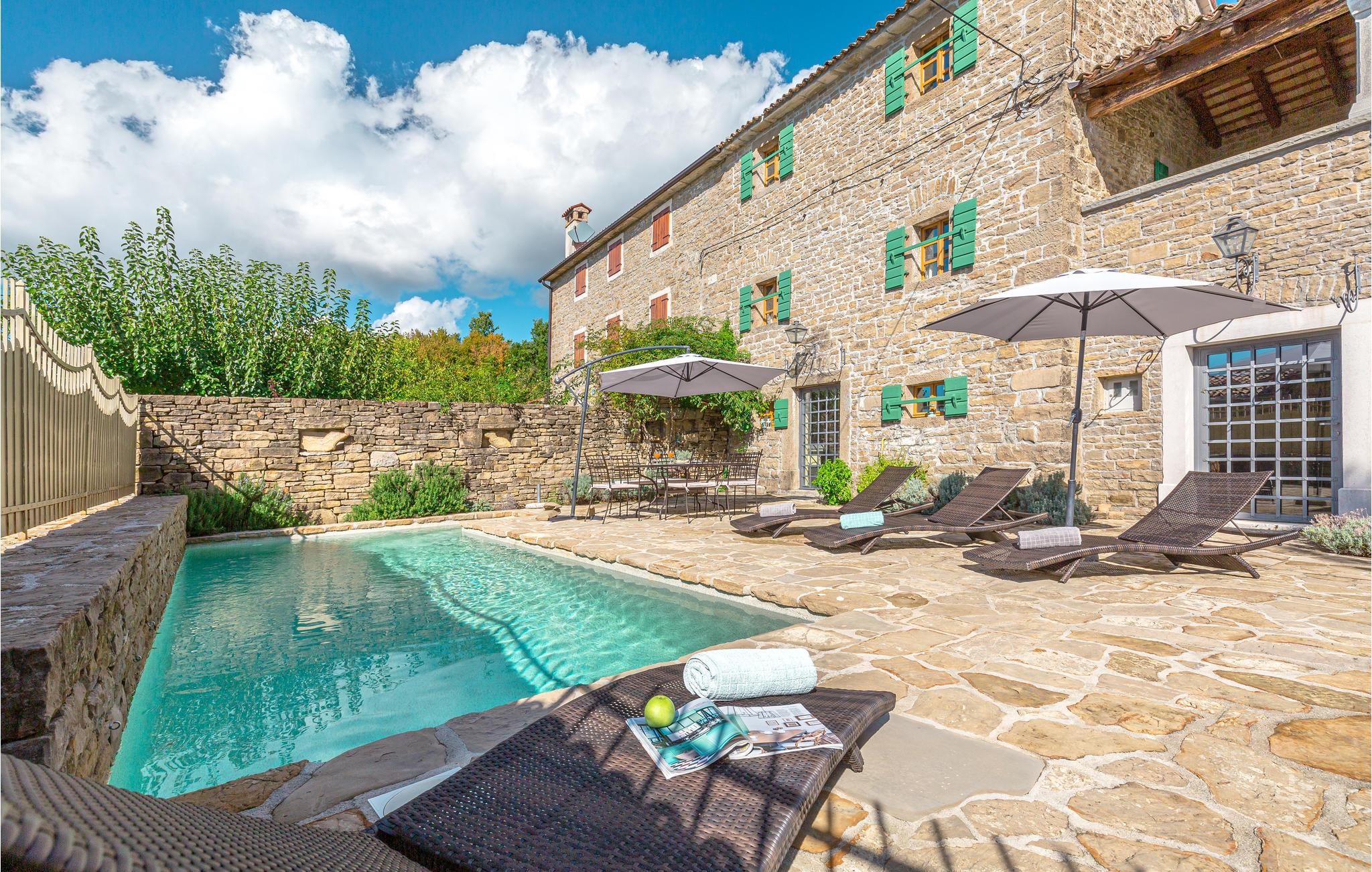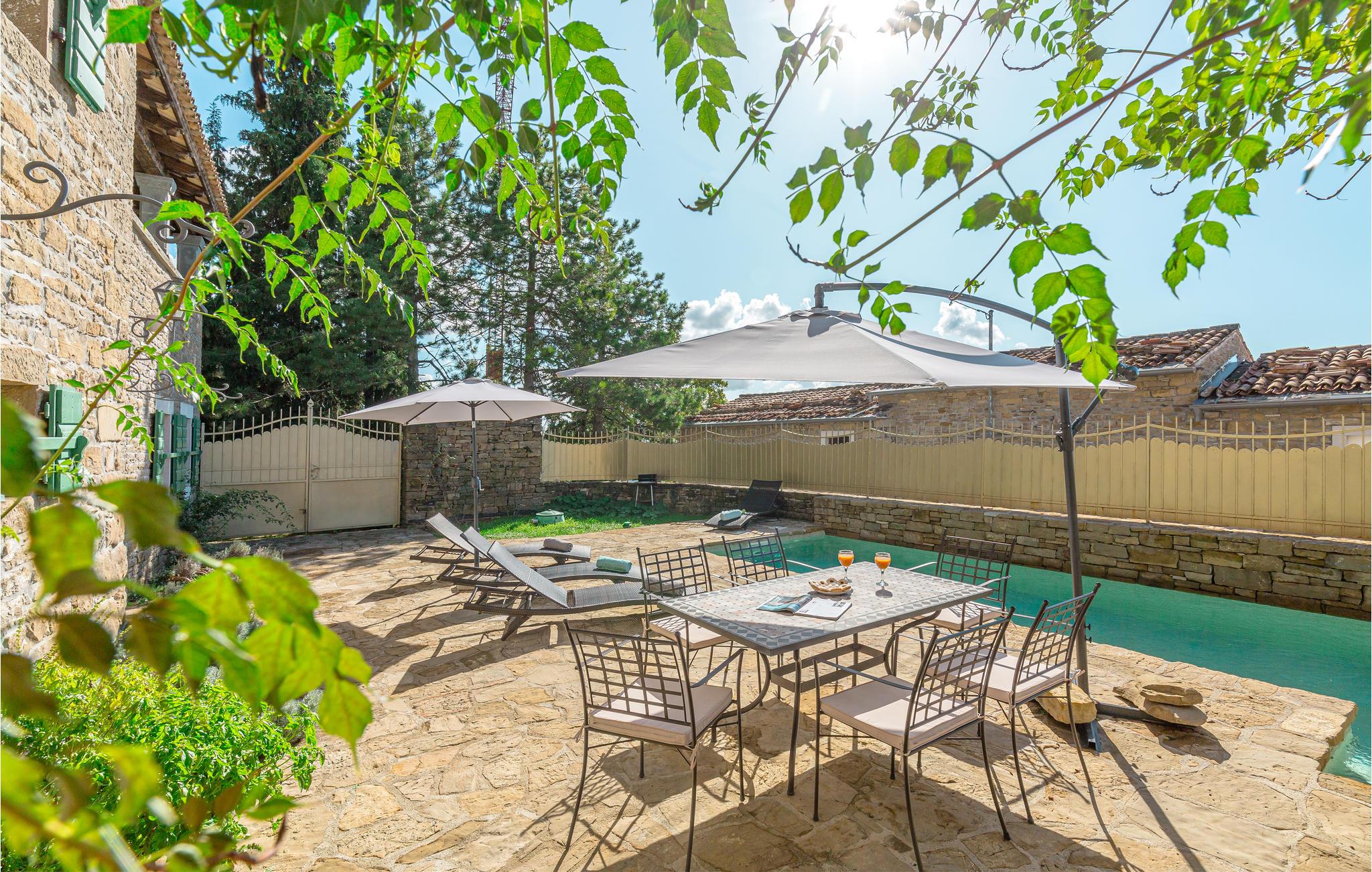 Karakteristisk steinhus i det indre av Istria. Huset tilbyr en kombinasjon av tradisjonell konstruksjon og moderne komfort. Nyt en forfriskende dukkert i svømmebassenget eller slapp av i boblebadet med romantisk stearinlys. Det spesielle med huset er definitivt den store terrassen, som er utstyrt med koselige møbler og inviterer deg til å slappe av, lese og drømme. Huset ligger på en tomt med en fortryllende utsikt over den lille byen Groznjan, som ligger bare 10 minutters gange unna. På nordsiden av landsbyen kan du utforske det vakre skogsområdet, som også krysses av en sykkelsti. Området er kjent for den gode olivenoljen (noen bønder har oppnådd verdensomspennende berømmelse) og produksjonen av vinsortene Malwasia og Teran. De deilige rettene laget av hvite trøfler anbefales også. Sopp og vill asparges vokser i området. I sommermånedene finner det sted mange musikalske og kulturelle arrangementer i Groznjan.
