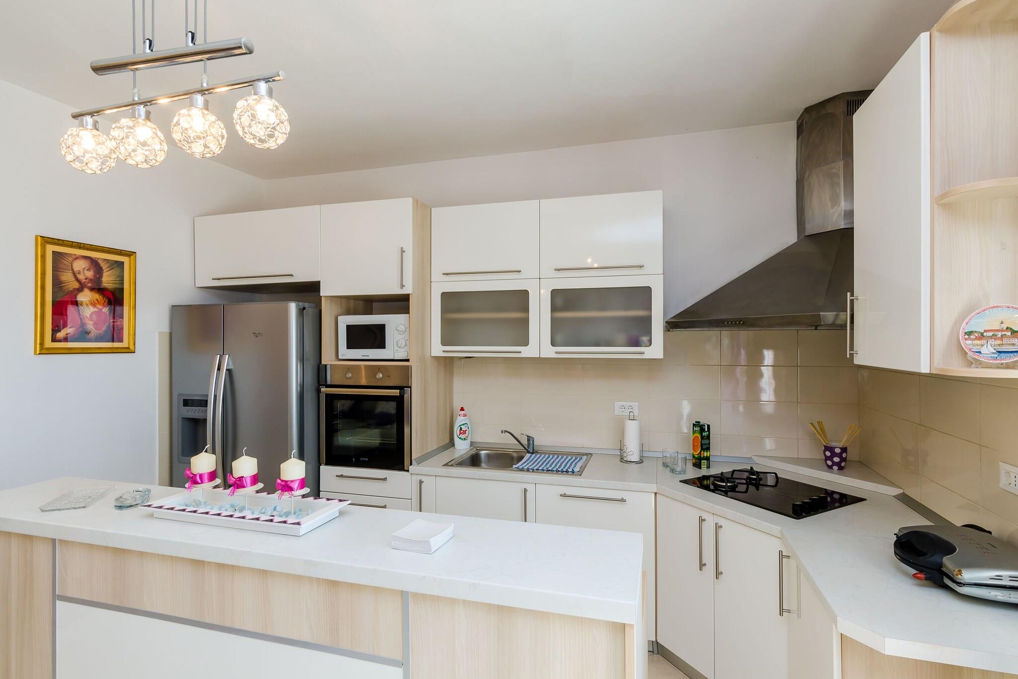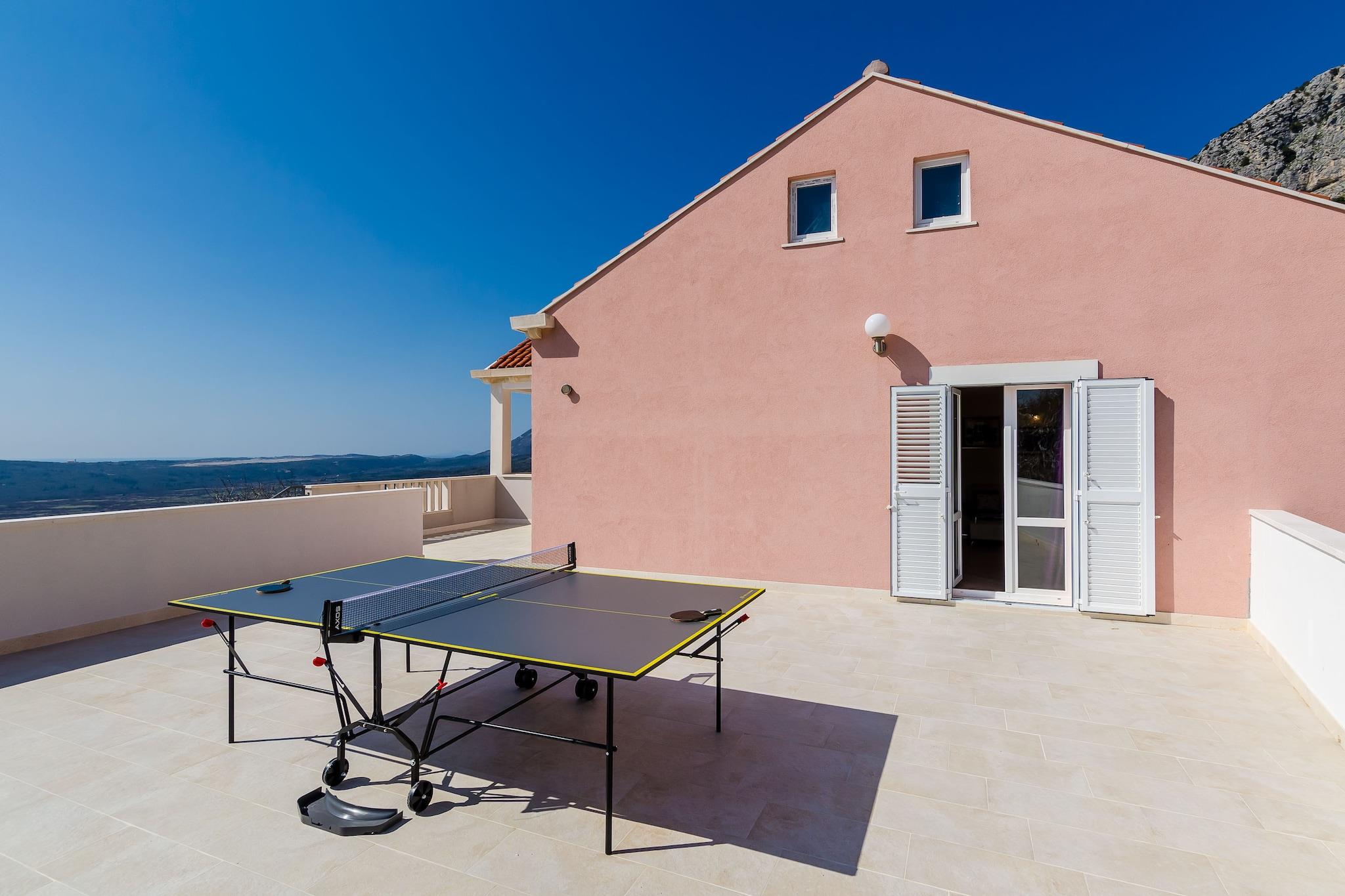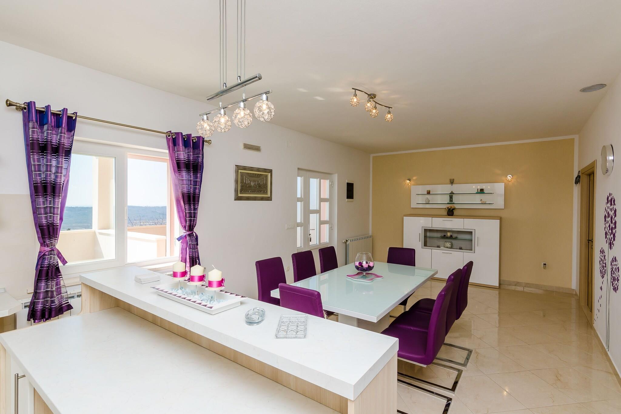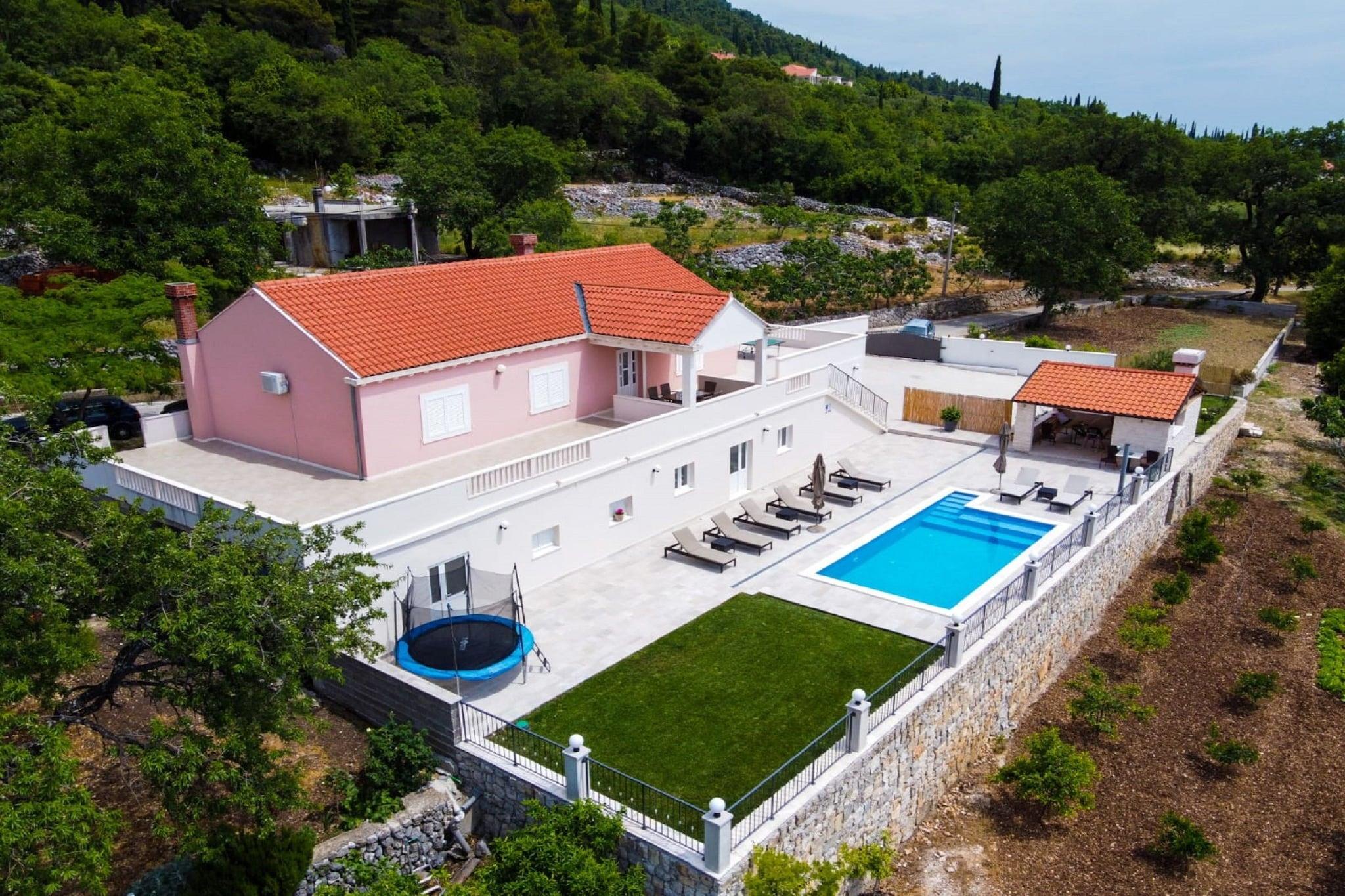 Ny moderne villa med sin fantastiske private svømmebassenget har en rolig, landlig beliggenhet i landsbyen Pridvorje i vakre Konavle regionen. Et perfekt sted å nyte en avslappet ferie med god privatliv. Kun 28 km fra Dubrovnik, en berømt kystby med middelalderby på Adriaterhavskysten og 11 km fra byen Cavtat. Denne vakre og romslige villaen i eiendom (500m) sprer seg over to etasjer. Det er en perfekt overnatting for inntil 8 personer med 3 smakfullt innredede soverom, 2 bad med boblebad, moderne stue / spisestue med åpen kjøkkenløsning og fantastisk utsikt over Konavle og et hav. Romslige terrasser er godt utstyrt med hagemøbler, trampoline, tenisbord og tilbyr også en fin panoramautsikt over de grønne feltene i vingårder og oliven som omgir denne private eiendommen. Gjestene kan smake organice frukt og grønnsaker fra hagen rundt Villa. Utendørsområdet tilbyr privat svømmebasseng, fin inngjerdet hage med lekeplass for barn - trampoline, sjarmerende terrasse med peis, stort stort trebord ved taket peis og gloriet enn nok parkeringsplasser.