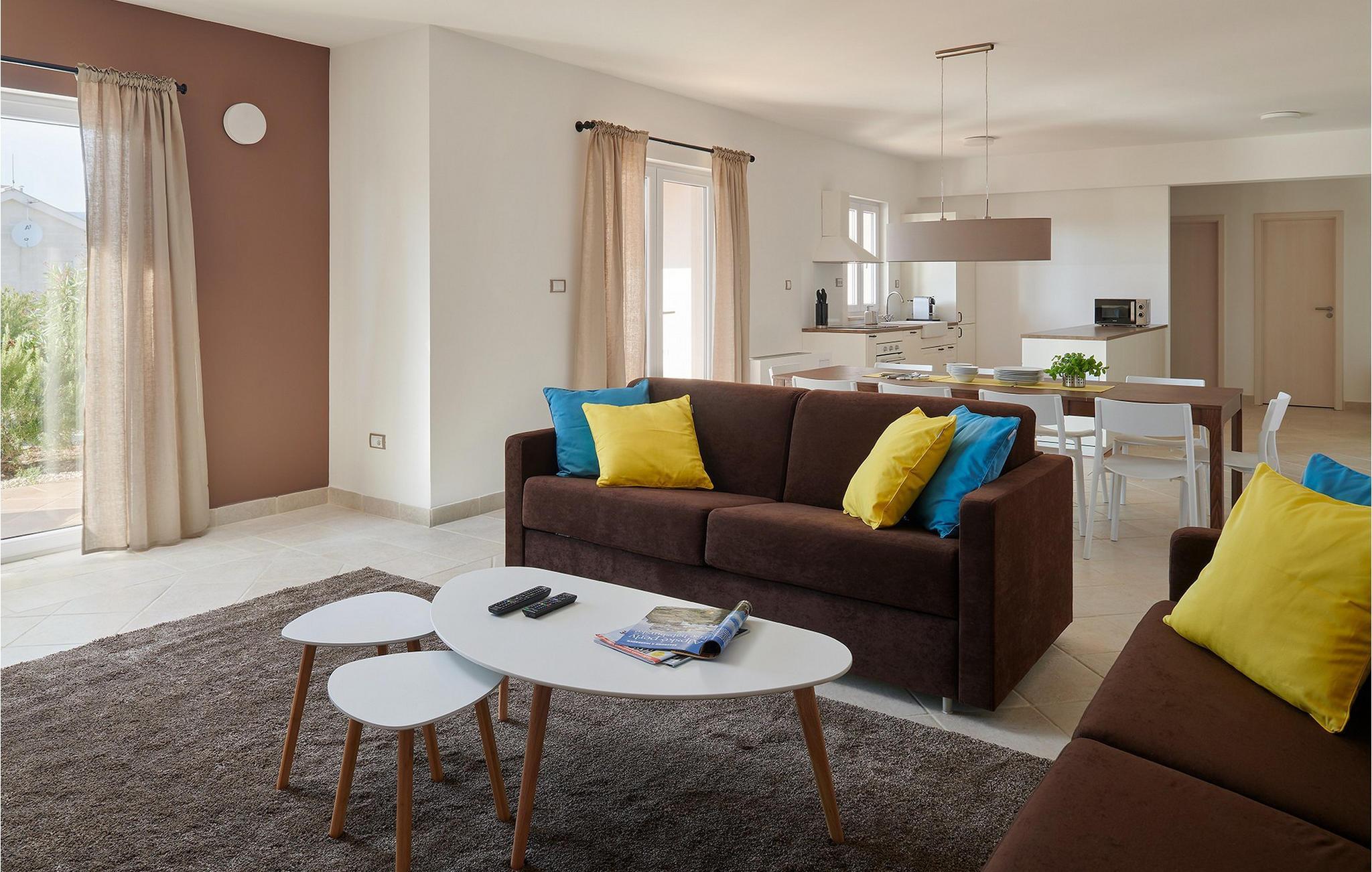 Villa 1 Mala Rudina på den solfylte øya Hvar tilbyr deg en stilfull og avslappet ferieatmosfære. Feriehuset ligger i Rudina, en tradisjonell dalmatisk landsby, og kombinerer moderne komfort med autentisk stil. I første etasje finner du et fullt utstyrt kjøkken, en koselig stue og stilfulle oppholdsrom som innbyr til opphold. I øverste etasje kan du nyte en behagelig natts søvn og nyte morgenen med en kopp kaffe på balkongen med utsikt over havet.