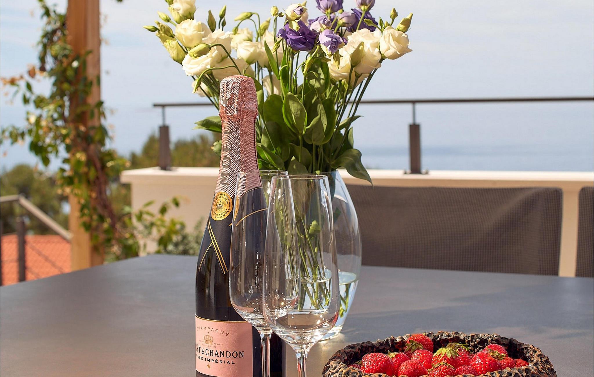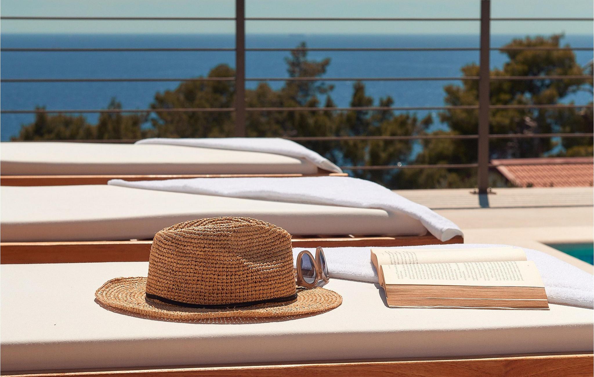 På det elegante uteområdet kan du også nyte lange soltimer under den dypblå himmelen. Ta en forfriskende dukkert i bassenget om morgenen, lukk øynene igjen på de komfortable solsengene og la den fredelige atmosfæren virke på deg. Server deg en deilig frokost i den diskret skyggelagte uteserveringen, tilbered deilige grillmåltider på sommerkjøkkenet og lytt til sikadenes kvitring over et glass vin.