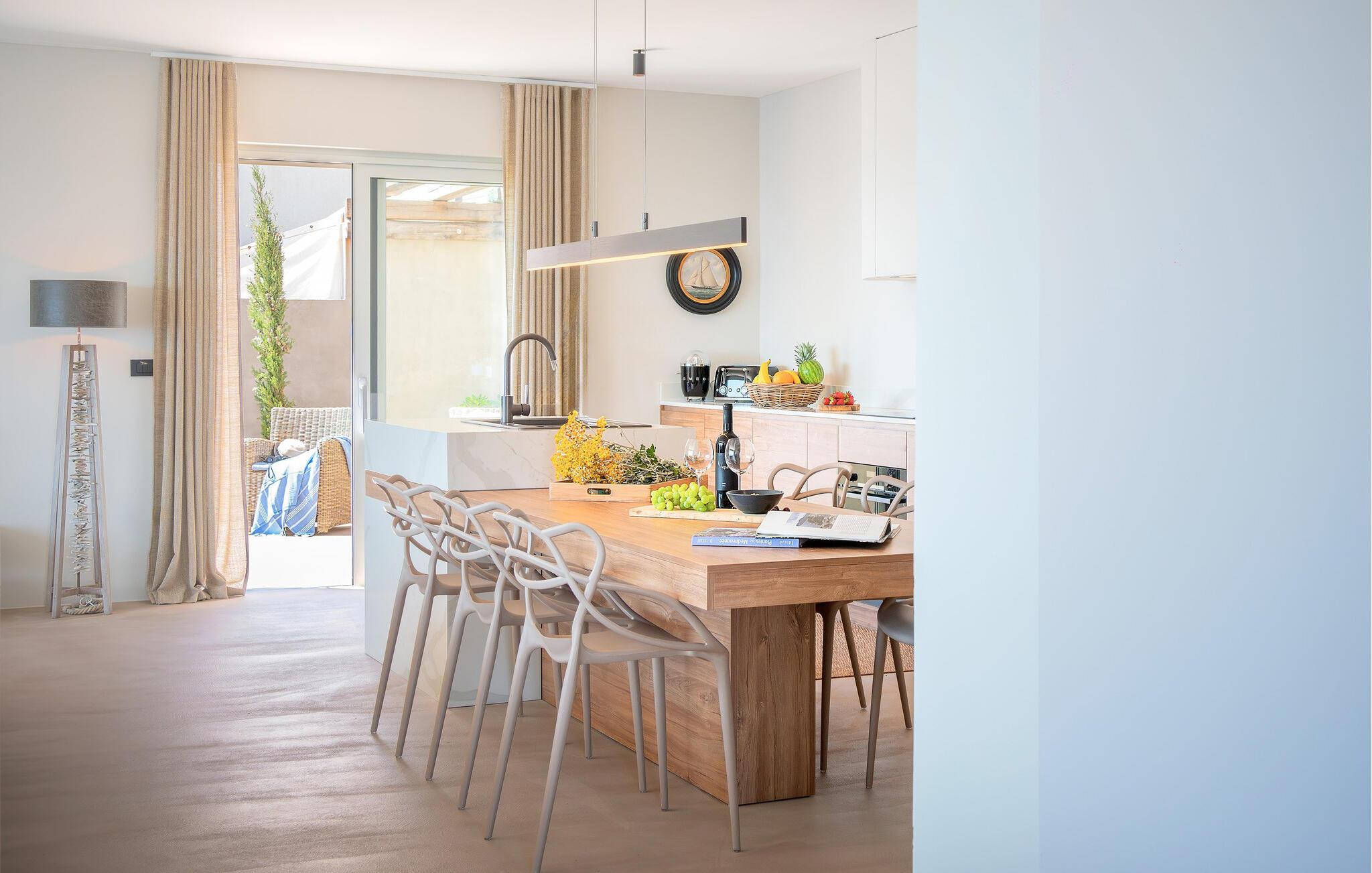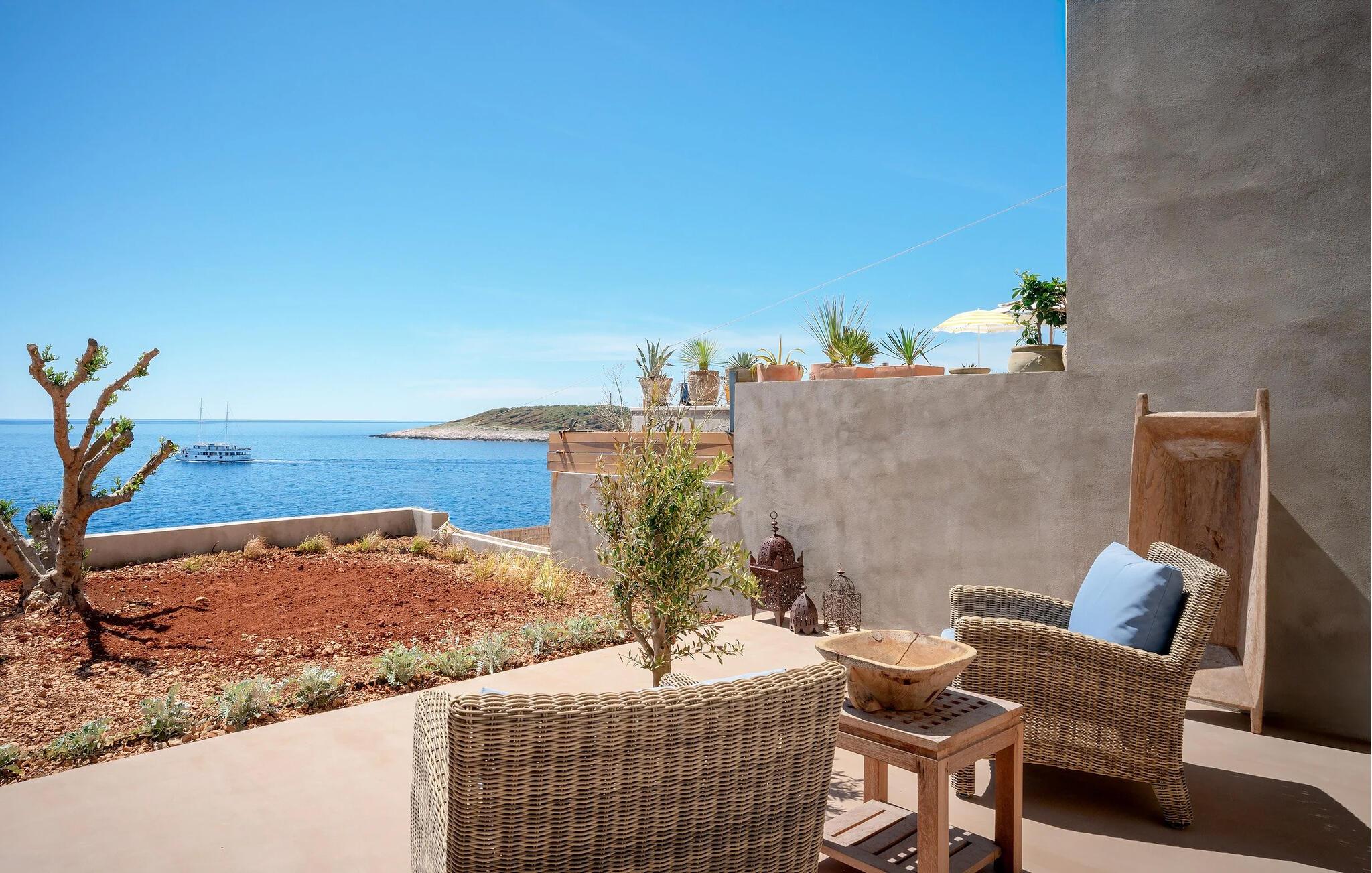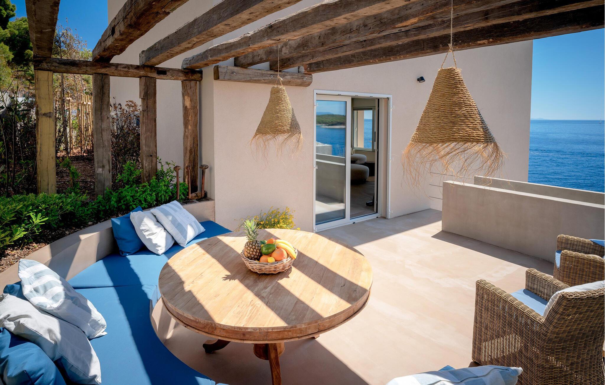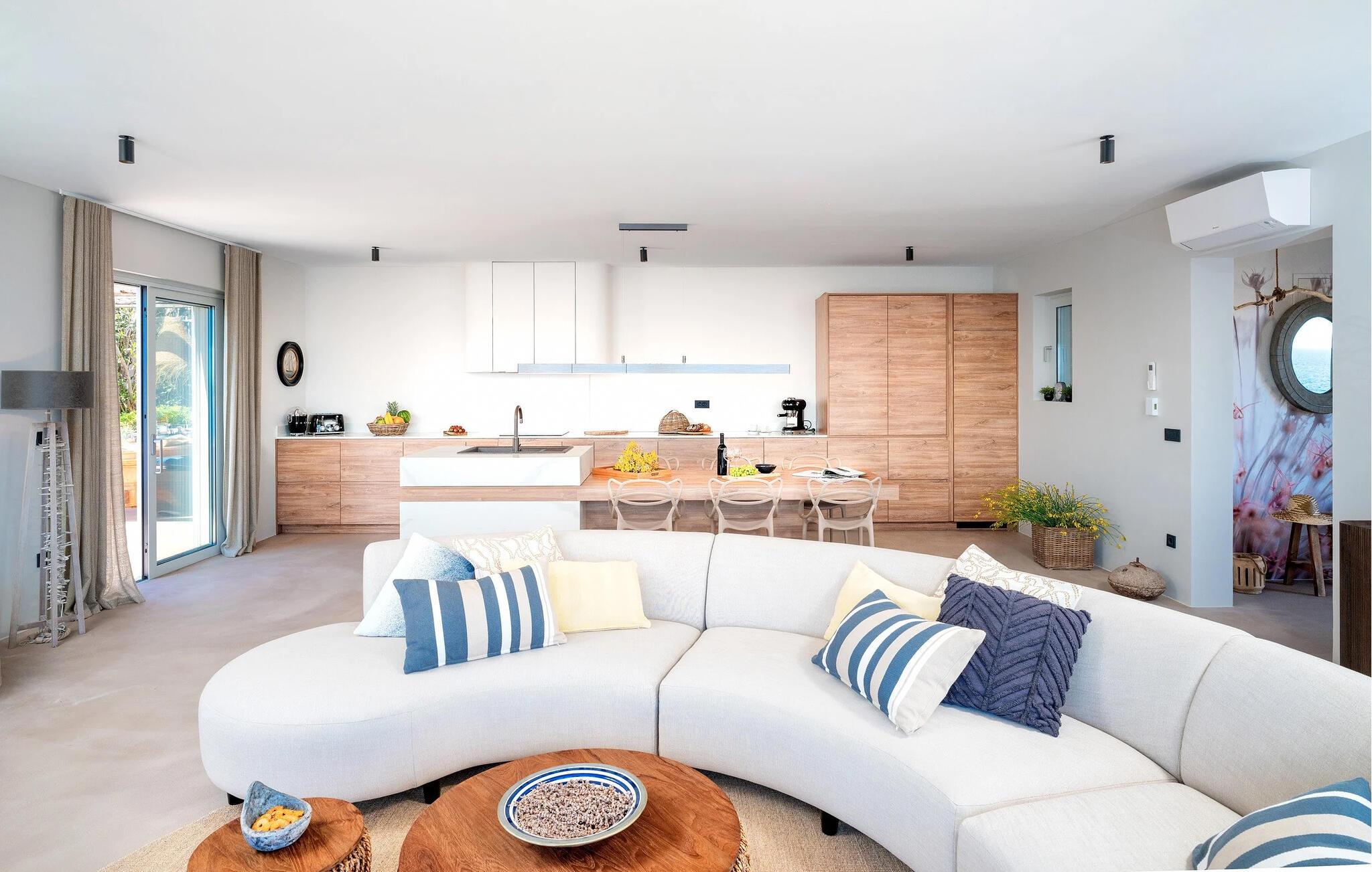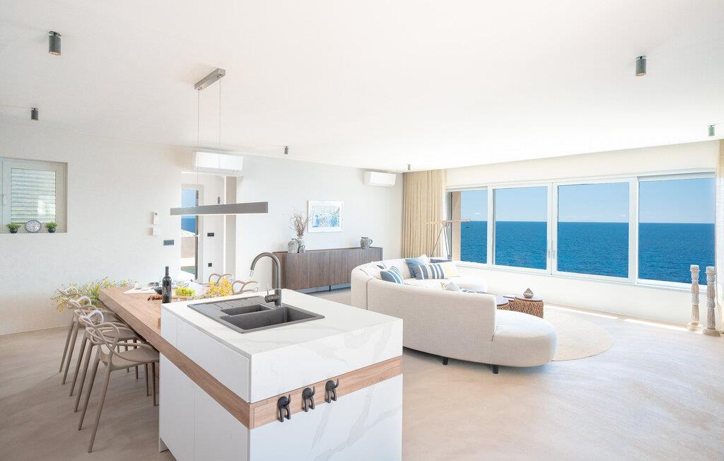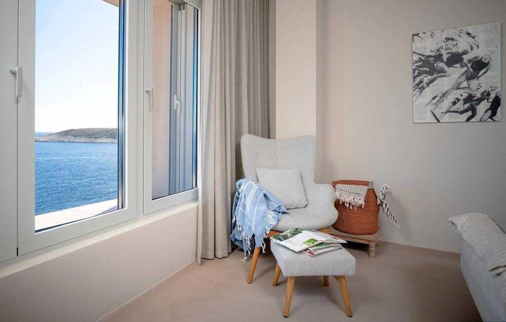 Denne moderne villaen av høy kvalitet ønsker deg velkommen til en fortryllende beliggenhet rett ved vannet. Stig inn og la deg inspirere av det lyse og smakfullt innredede interiøret, hvor du alltid kan nyte den fantastiske utsikten over Adriaterhavet. Du kan trylle frem kulinariske høydepunkter, samles til hyggelige måltider og morsomme spillkvelder ved det innbydende spisebordet og streame favorittseriene dine på smart-TV-en etter en lang dag.