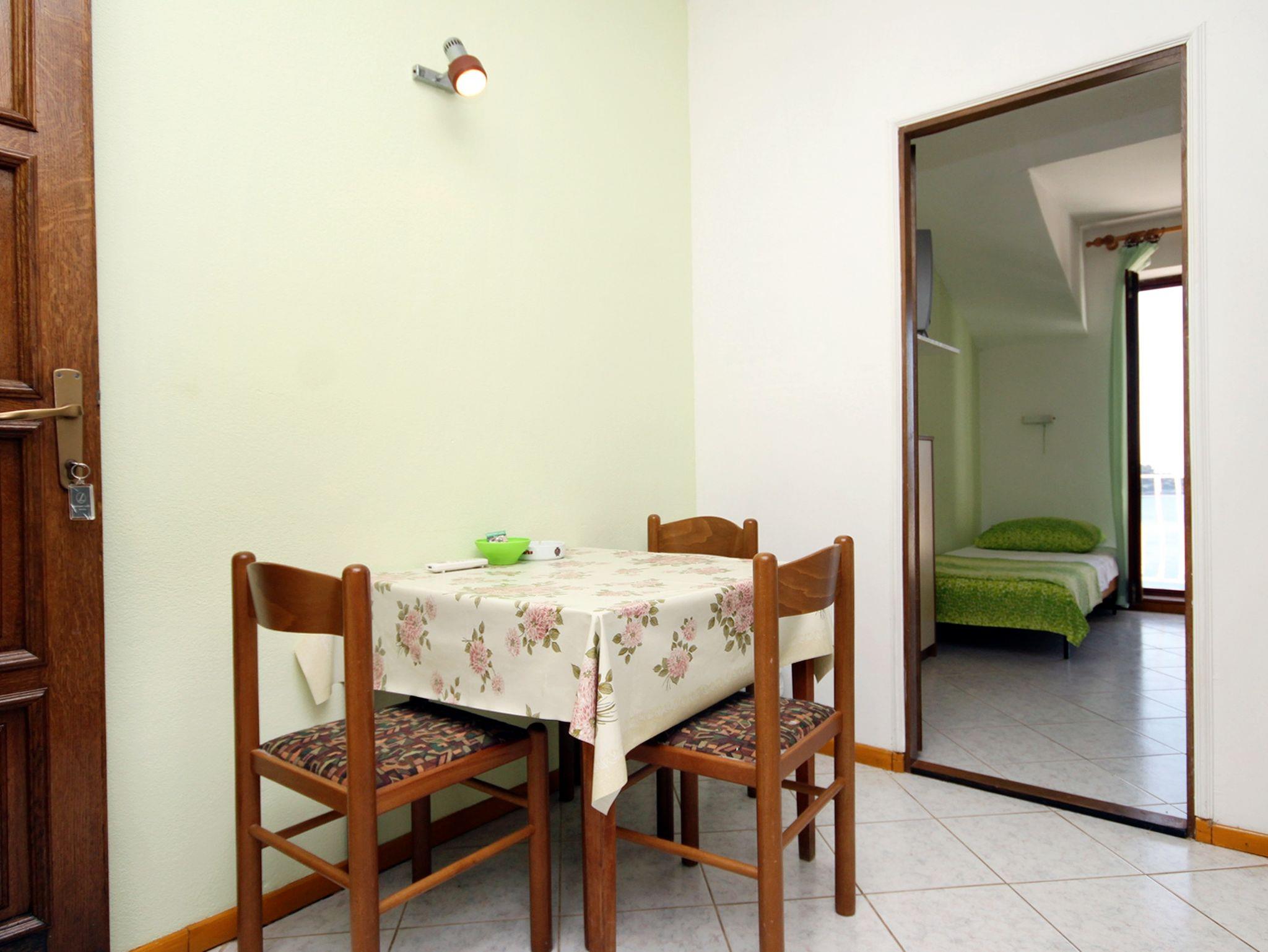 Studio bietet Platz für 3 Gäste. Die Betten sind in Schlafzimmern, die es 1 gibt, innerhalb einer Gesamtfläche von 26m2, angeordnet. Die Gäste haben eine eigene Terrasse zur Verfügung, auf der sie in warmen Sommernächten genießen können. Das Studio-Apartment bietet Meerblick. Es ist erlaubt, Speisen auf dem Gemeinschafts-Grill vorzubereiten. In der Unterkunftseinheit besteht die Möglichkeit des Mitbringens von Haustieren gegen Aufpreis. IM PREIS INBEGRIFFEN: Kurtaxe, Endreinigung, Klimatisierung, Zentralheizung, Parkplatz, Internet, Kinderbett, Bügeleisen, Bügelbrett, Föhn. VERBINDLICHE ZUSÄTZLICHE KOSTEN: Aufzahlung für Kurzaufenthalte (prozentualer Zuschlag pro Nächtigungsanzahl: 30% - 1, 20% - 2, 10% - 3). UNVERBINDLICHE ZUSÄTZLICHE KOSTEN: Haustiere (5,00 € pro Nacht). Die Verfügbarkeit zusätzlicher Dienstleistungen in Ihrem reservierten Termin und die Preise derselben (falls nicht aufgeführt) müssen im Voraus überprüft werden. Zusätzliche Dienstleistungen die in der Zahlungsaufforderung nicht aufgeführt sind werden direkt beim Vermieter bezahlt, angenommen der Gast nutzt auch diese. Ermäßigung auf den Grundpreis: Gratistag 14=13 (bei einem Aufenthalt von 14 Tagen oder mehr erhalten Sie einen Gratistag für den Aufenthalt bis 31.12.26).