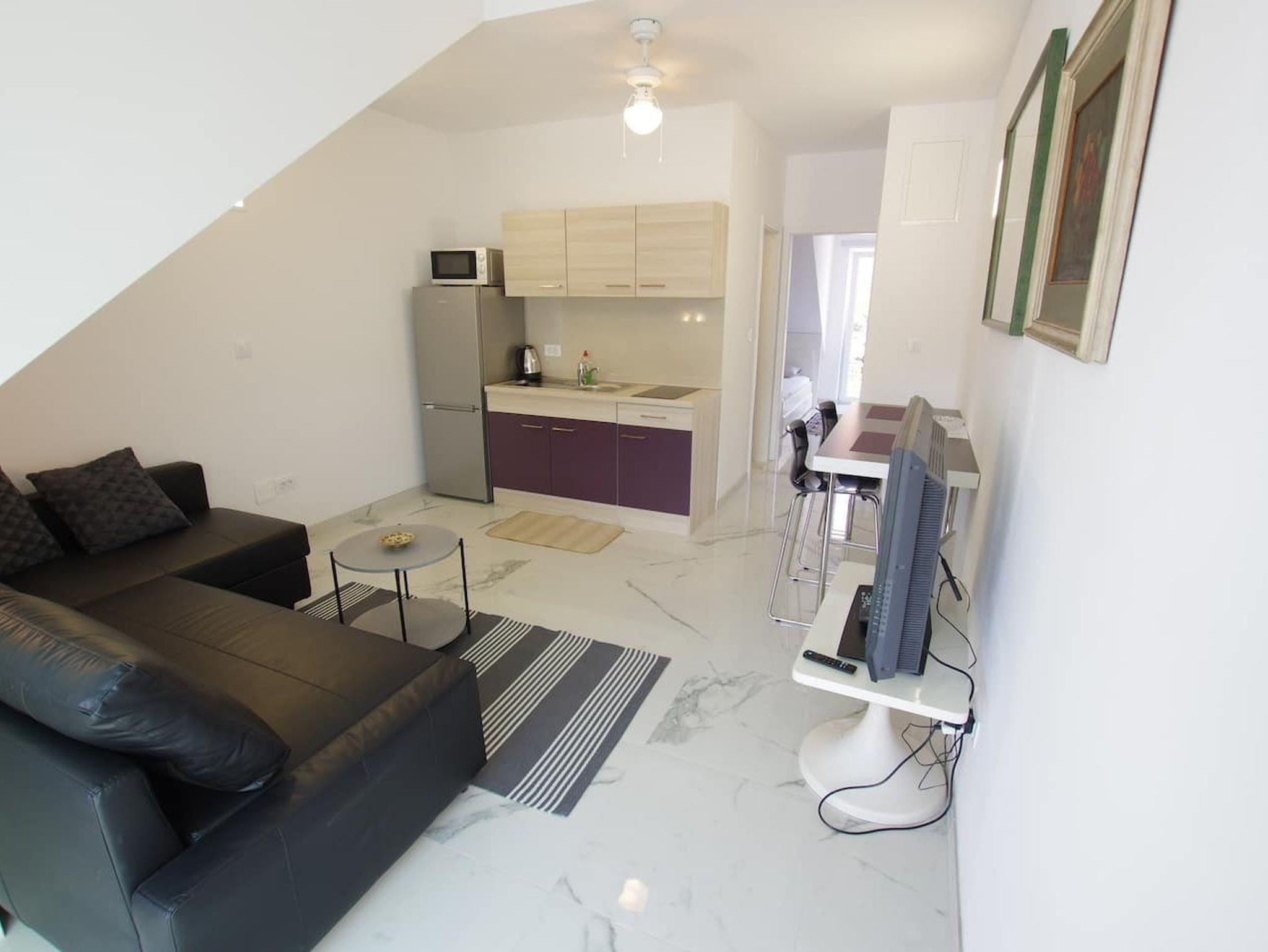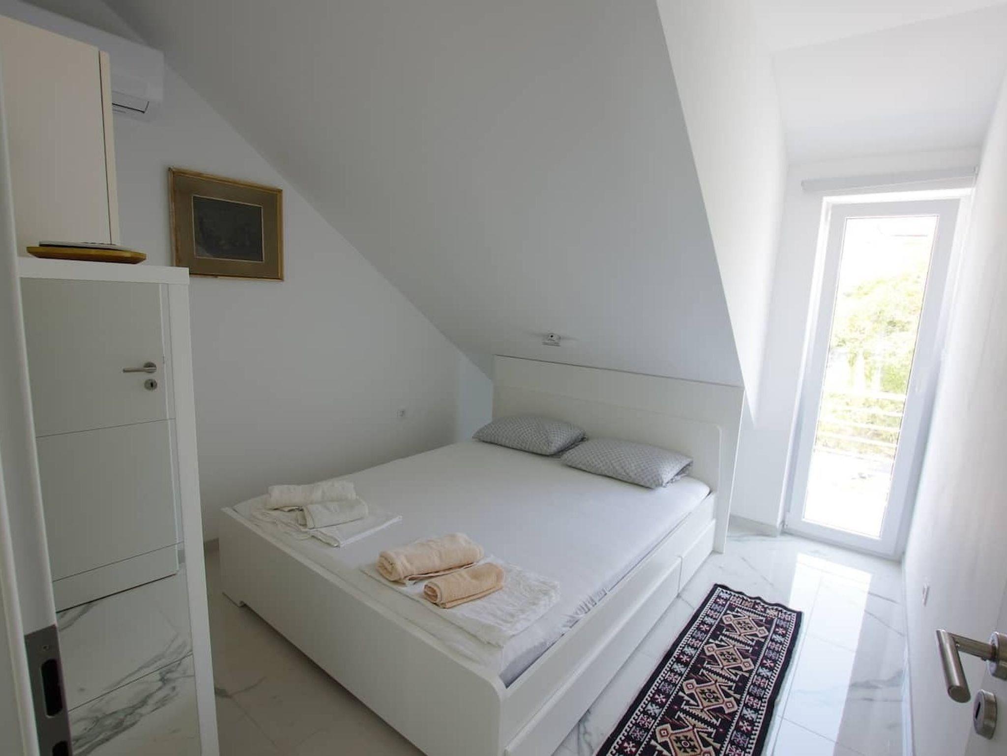 Ferienwohnung bietet Platz für 4 Gäste. Die Betten sind in Schlafzimmern, die es 1 gibt, und in Wohnzimmer, innerhalb einer Gesamtfläche von 33m2, angeordnet. Die Gäste haben eine eigene Terrasse zur Verfügung, auf der sie in warmen Sommernächten genießen können. Das Apartment bietet Meerblick. IM PREIS INBEGRIFFEN: Kurtaxe, Endreinigung, Klimatisierung, Parkplatz, Internet, Kinderbett, Bügeleisen, Bügelbrett, Föhn, Sonnenschirm. Die Verfügbarkeit zusätzlicher Dienstleistungen in Ihrem reservierten Termin und die Preise derselben (falls nicht aufgeführt) müssen im Voraus überprüft werden. Zusätzliche Dienstleistungen die in der Zahlungsaufforderung nicht aufgeführt sind werden direkt beim Vermieter bezahlt, angenommen der Gast nutzt auch diese. Ermäßigung auf den Grundpreis: Gratistag 14=13 (bei einem Aufenthalt von 14 Tagen oder mehr erhalten Sie einen Gratistag für den Aufenthalt bis 31.12.26).