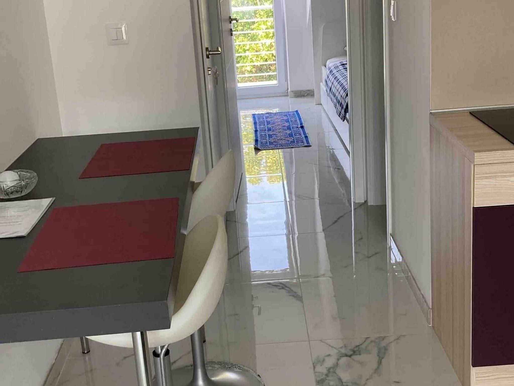 Ferienwohnung bietet Platz für 4 Gäste. Die Betten sind in Schlafzimmern, die es 1 gibt, und in Wohnzimmer, innerhalb einer Gesamtfläche von 35m2, angeordnet. Die Gäste haben eine eigene Terrasse zur Verfügung, auf der sie in warmen Sommernächten genießen können. Das Apartment bietet Meerblick. IM PREIS INBEGRIFFEN: Kurtaxe, Endreinigung, Klimatisierung, Parkplatz, Internet, Kinderbett, Bügeleisen, Bügelbrett, Föhn, Sonnenschirm. Die Verfügbarkeit zusätzlicher Dienstleistungen in Ihrem reservierten Termin und die Preise derselben (falls nicht aufgeführt) müssen im Voraus überprüft werden. Zusätzliche Dienstleistungen die in der Zahlungsaufforderung nicht aufgeführt sind werden direkt beim Vermieter bezahlt, angenommen der Gast nutzt auch diese. Ermäßigung auf den Grundpreis: Gratistag 14=13 (bei einem Aufenthalt von 14 Tagen oder mehr erhalten Sie einen Gratistag für den Aufenthalt bis 31.12.26).