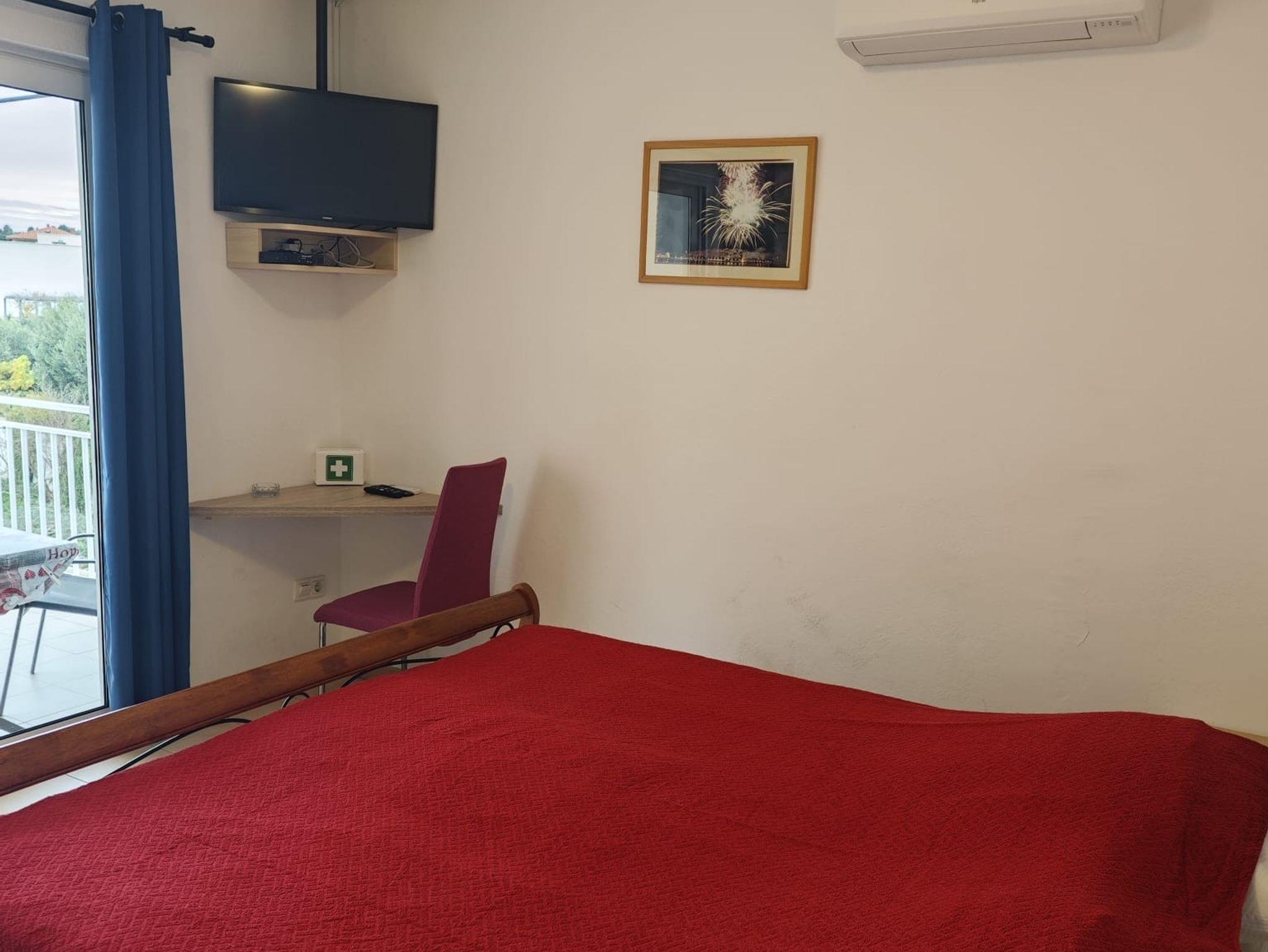 Ferienwohnung bietet Platz für 2 Gäste. Die Betten sind in Schlafzimmern, die es 1 gibt, innerhalb einer Gesamtfläche von 27m2, angeordnet. Die Gäste haben eine eigene Terrasse zur Verfügung, auf der sie in warmen Sommernächten genießen können. Das Apartment bietet Meerblick. IM PREIS INBEGRIFFEN: Kurtaxe, Endreinigung, Klimatisierung, Parkplatz, Internet, Wäschewaschen, Zusatzbett, Bügeleisen, Bügelbrett, Föhn. Die Verfügbarkeit zusätzlicher Dienstleistungen in Ihrem reservierten Termin und die Preise derselben (falls nicht aufgeführt) müssen im Voraus überprüft werden. Zusätzliche Dienstleistungen die in der Zahlungsaufforderung nicht aufgeführt sind werden direkt beim Vermieter bezahlt, angenommen der Gast nutzt auch diese. Ermäßigung auf den Grundpreis: Gratistag 14=13 (bei einem Aufenthalt von 14 Tagen oder mehr erhalten Sie einen Gratistag für den Aufenthalt bis 31.12.26).