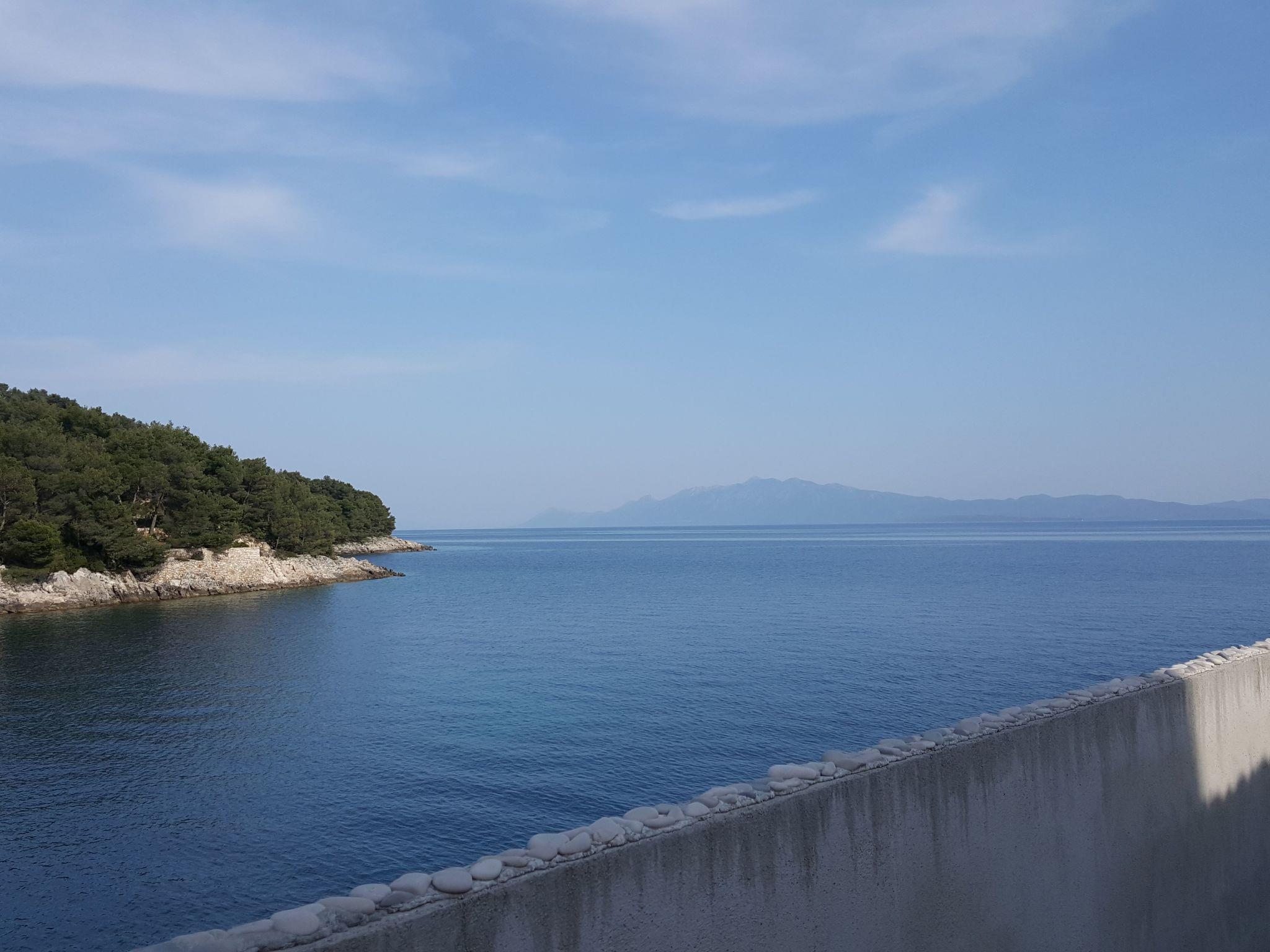 The covered terrace right in front of the house has a barbecue, a table and a bench. From here you can enjoy the sea views across the bay.