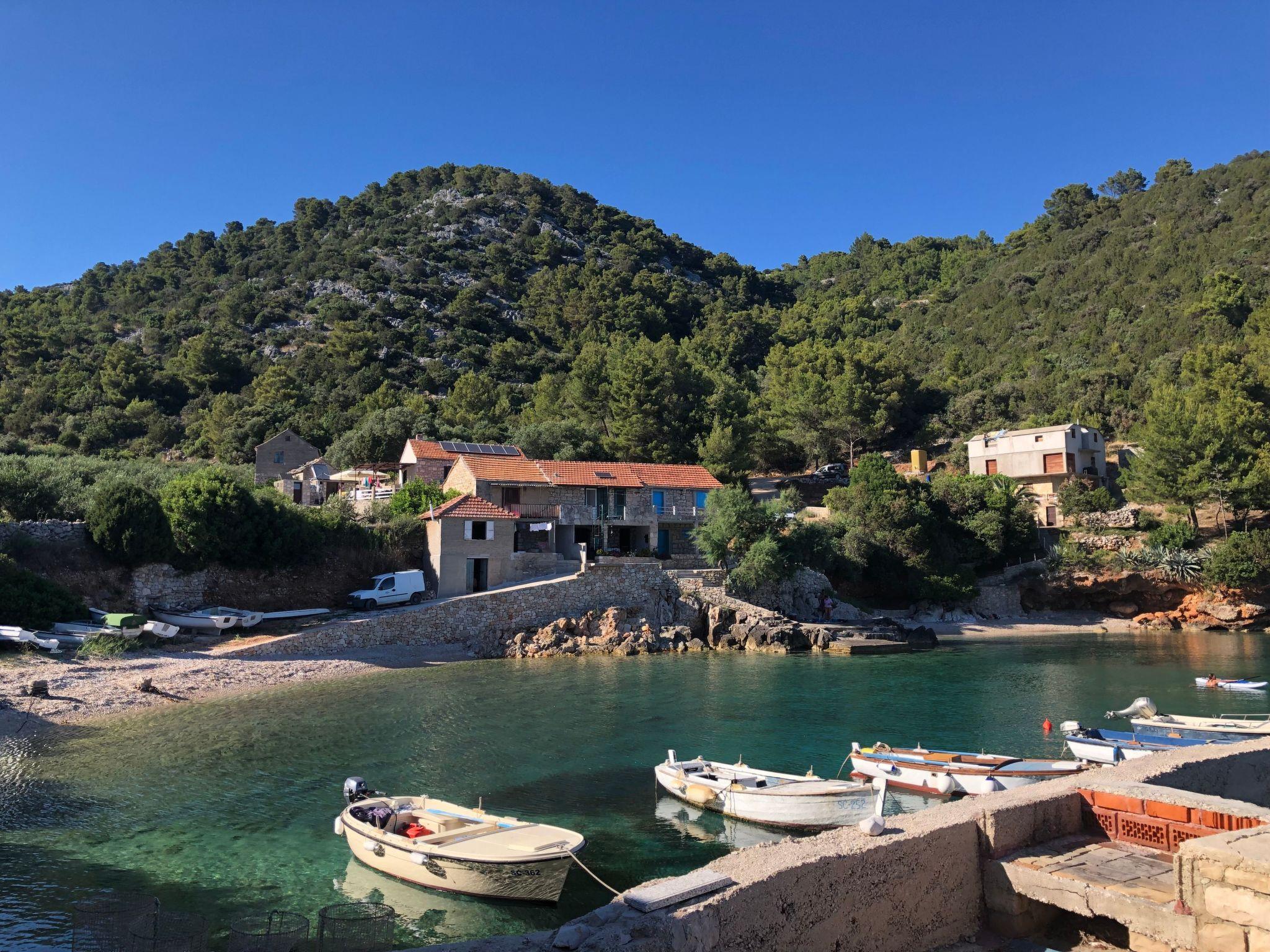The house is situated literally right on the sea shore, in the picturesque and quiet bay of Srhov Dolac, on the sunny Croatian island of Hvar. This is the perfect accommodation for a relaxing holiday, far away from the stress and noise of the city, with your family with children or a group of friends. It offers a robinson type of tourism.
