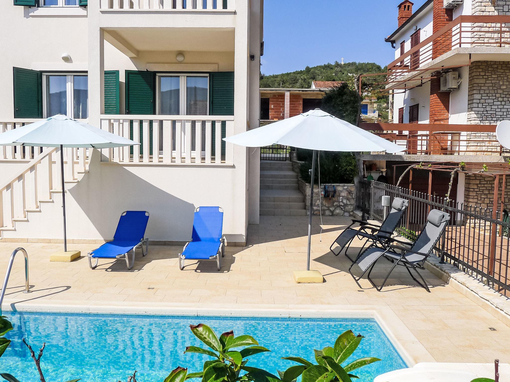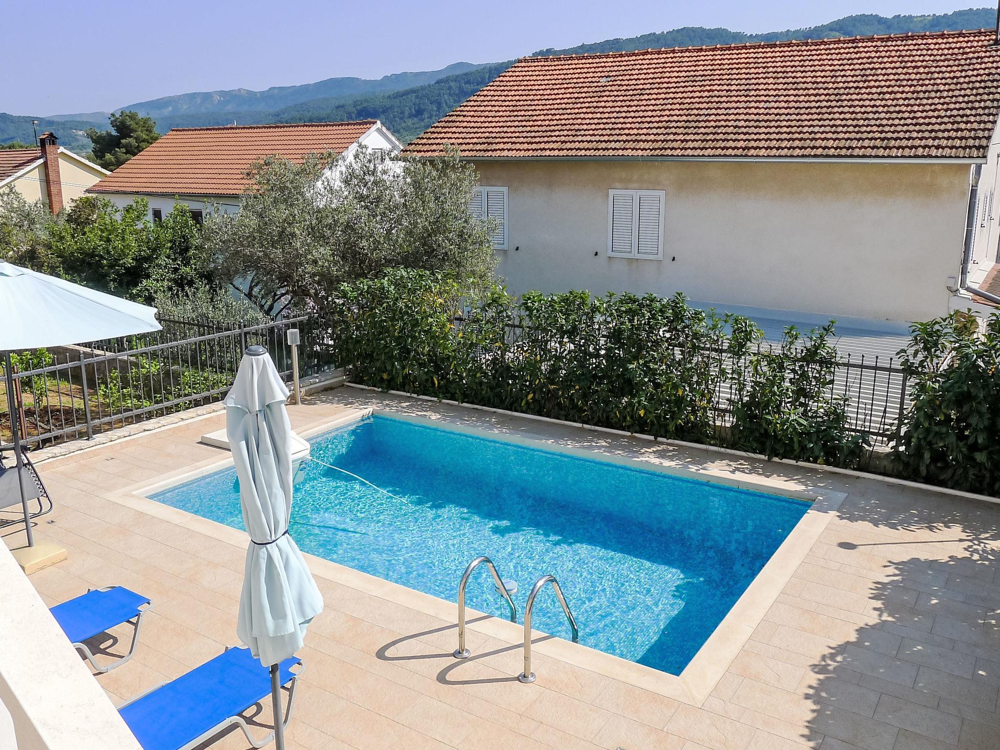Semi-detached house "Villa Zlatan", 2 storeys. 600 m from the centre of Stari Grad, in a sunny position, 420 m from the sea, 420 m from the beach. Private: property 450 m2, swimming pool angular (6 x 4 m, depth 150 cm, seasonal availability: 15.Jun. - 15.Sep.). Outdoor shower, terrace (40 m2). In the house: internet access, washing machine. Parking (for 2 cars) at the house on the premises. Shop 600 m, restaurant 400 m, bus stop 64.2 km, ferry "Stari Grad" 4.3 km, pebble beach 420 m. Tennis 700 m. Semi-detached house consists of 2 apartments rented as one unit.
