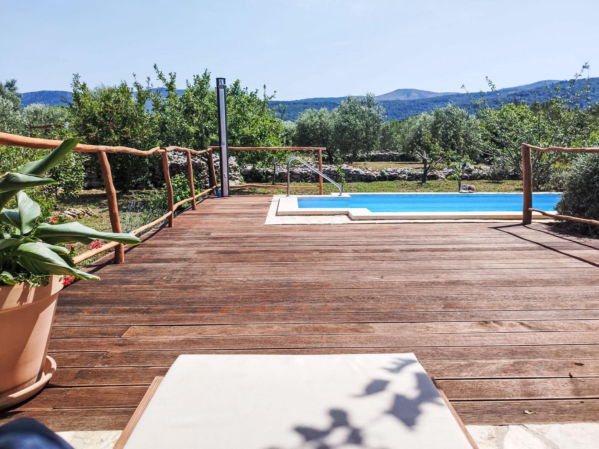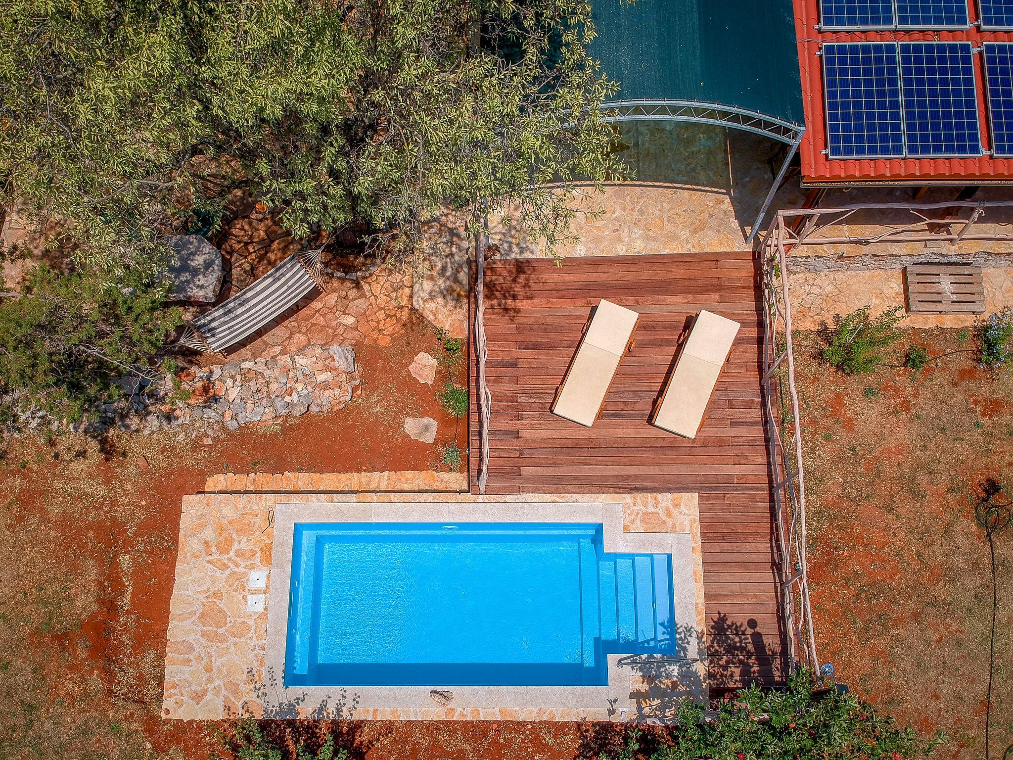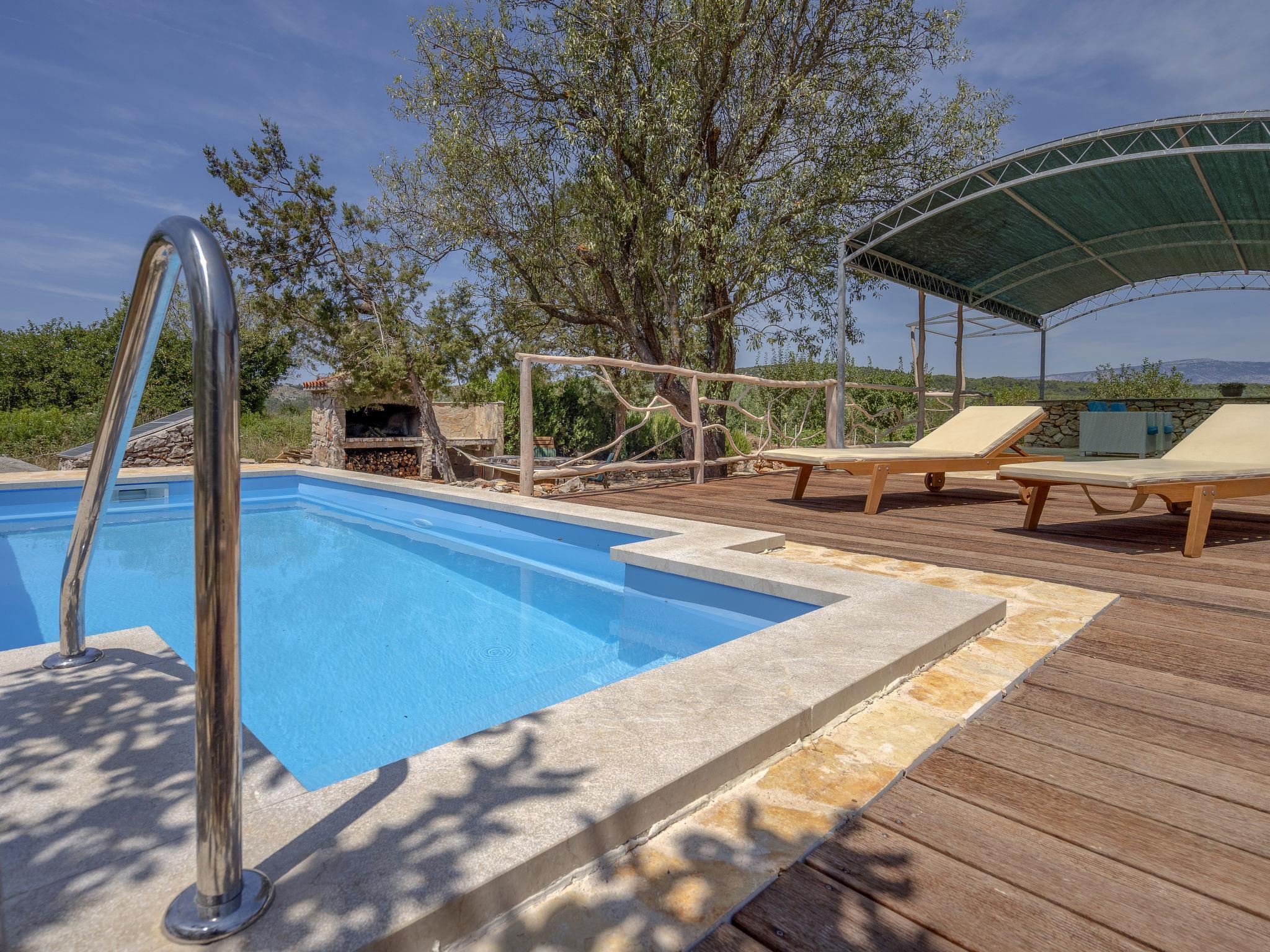Single-family house "Marijo". 1.7 km from the centre of Stari Grad, in a quiet, sunny position, 1.7 km from the sea, 3 km from the beach. Private: property 5'700 m2, swimming pool angular (6 x 3 m, depth 135 cm, seasonal availability: 01.May. - 01.Oct.) with internal staircase and alarm system. Terrace (50 m2), garden furniture, barbecue. In the house: internet access. Parking (for 2 cars) at the house on the premises. Shop 1.7 km, restaurant 1.7 km, bus stop 71.2 km, rocky beach 3 km.