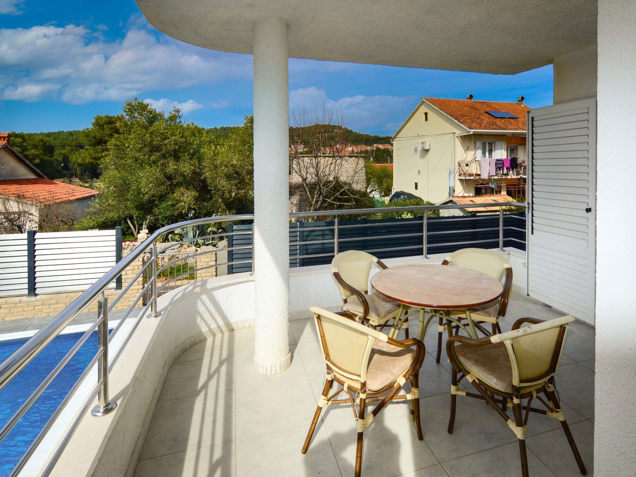 3-family house "Mirroni". 700 m from the centre of Stari Grad, in a quiet, sunny position, 100 m from the sea, 350 m from the beach. Private: property 500 m2 (fenced), swimming pool angular (6 x 4 m, depth 150 cm, seasonal availability: 01.May. - 01.Oct.) with internal staircase. Terrace (60 m2), garden furniture, pool maintenance by the owner/gardener. In the house: internet access. Parking at the house on the premises. Supermarket 1 km, restaurant, café 500 m, bus stop 61.5 km, ferry 1.5 km, pebble beach 350 m.