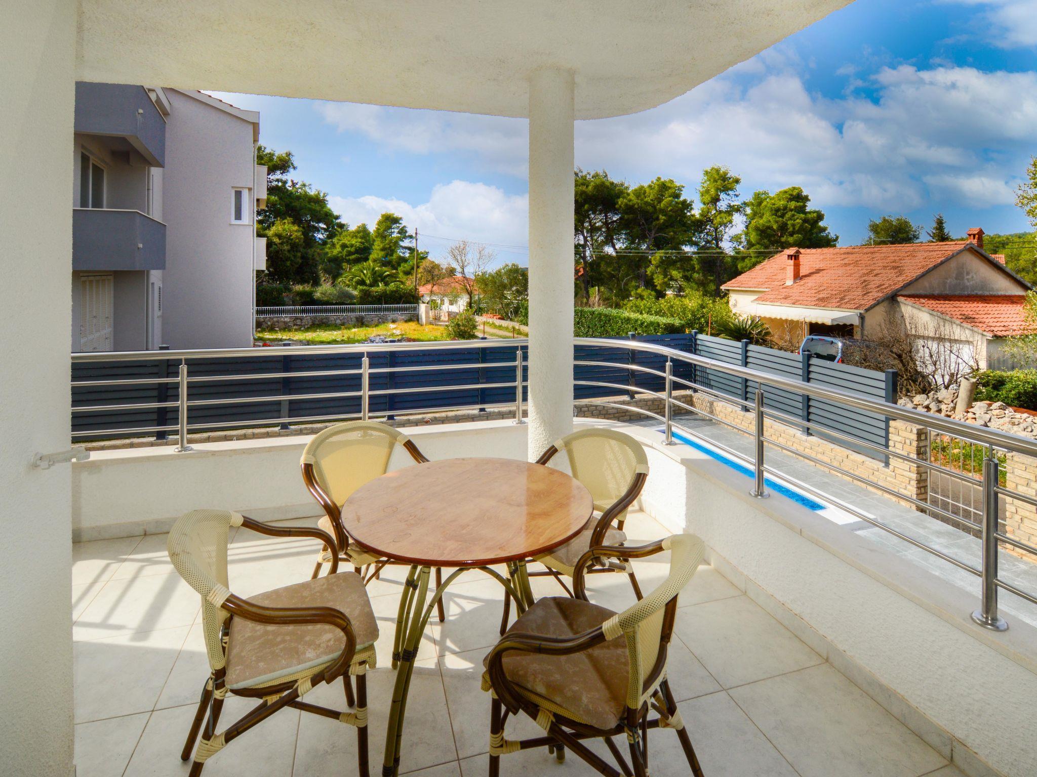 2-room apartment 62 m2, on the upper ground floor. Living/dining room with 1 double sofabed (140 cm, length 200 cm), satellite TV and air conditioning. Exit to the balcony. 1 room with 1 french bed (160 cm, length 200 cm), air conditioning and fan. Exit to the balcony. Open kitchen (2 hot plates, oven, dishwasher, 2 gas rings, microwave, freezer, electric coffee machine). Shower/bidet/WC. No heating option. Balcony 15 m2. Balcony furniture, deck chairs (4). View of the swimming pool. Facilities: Internet (WiFi, free). 2181-01/01-17-2
