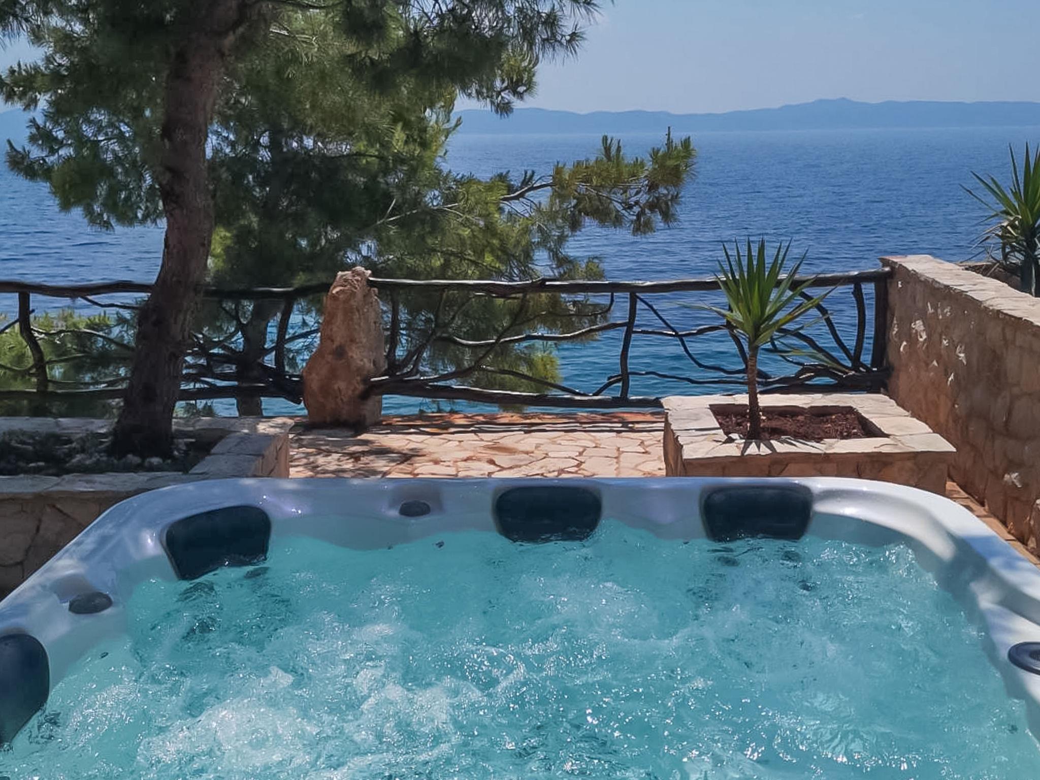 Uvala Golubinka 4 km from Zastražišce: Single-family house "Villa Golubinka", 2 storeys. In a quiet, sunny position, at the seaside, on the beach. Private: property 13 ha. Outdoor shower, terrace (180 m2), garden furniture, barbecue. In the house: internet access, washing machine. Available: canoe. Motor access to the house (3.5 km via unmade road). Parking (for 3 cars) at the house on the premises. Shop 3.5 km, restaurant 13 km, bus stop 60.1 km, pebble beach, rocky beach, concrete beach 10 m. Please note: private mooring, on request. Solar-powered energy (220 volt current, 500 W). Available: boat 5 m, 5 hp (on request, fuel extra). Available: terrain vehicle (on request, included, fuel extra).