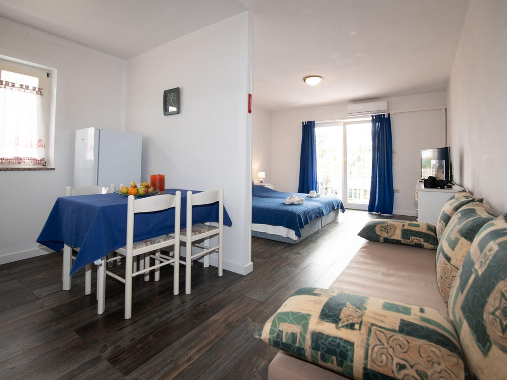 Studio bietet Platz für 3 Gäste. Die Betten sind in Schlafzimmern, die es 1 gibt, und in Esszimmer, innerhalb einer Gesamtfläche von 32m2, angeordnet. Die Gäste haben eine eigene Terrasse zur Verfügung, auf der sie in warmen Sommernächten genießen können. In der Unterkunftseinheit besteht die Möglichkeit des Mitbringens von Haustieren gegen Aufpreis. IM PREIS INBEGRIFFEN: Kurtaxe, Endreinigung, Klimatisierung, Parkplatz, Internet, Kinderbett, Bügeleisen, Bügelbrett, Föhn. UNVERBINDLICHE ZUSÄTZLICHE KOSTEN: Haustiere (7,00 € pro Nacht). Die Verfügbarkeit zusätzlicher Dienstleistungen in Ihrem reservierten Termin und die Preise derselben (falls nicht aufgeführt) müssen im Voraus überprüft werden. Zusätzliche Dienstleistungen die in der Zahlungsaufforderung nicht aufgeführt sind werden direkt beim Vermieter bezahlt, angenommen der Gast nutzt auch diese. Ermäßigung auf den Grundpreis: Gratistag 14=13 (bei einem Aufenthalt von 14 Tagen oder mehr erhalten Sie einen Gratistag für den Aufenthalt bis 31.12.26).