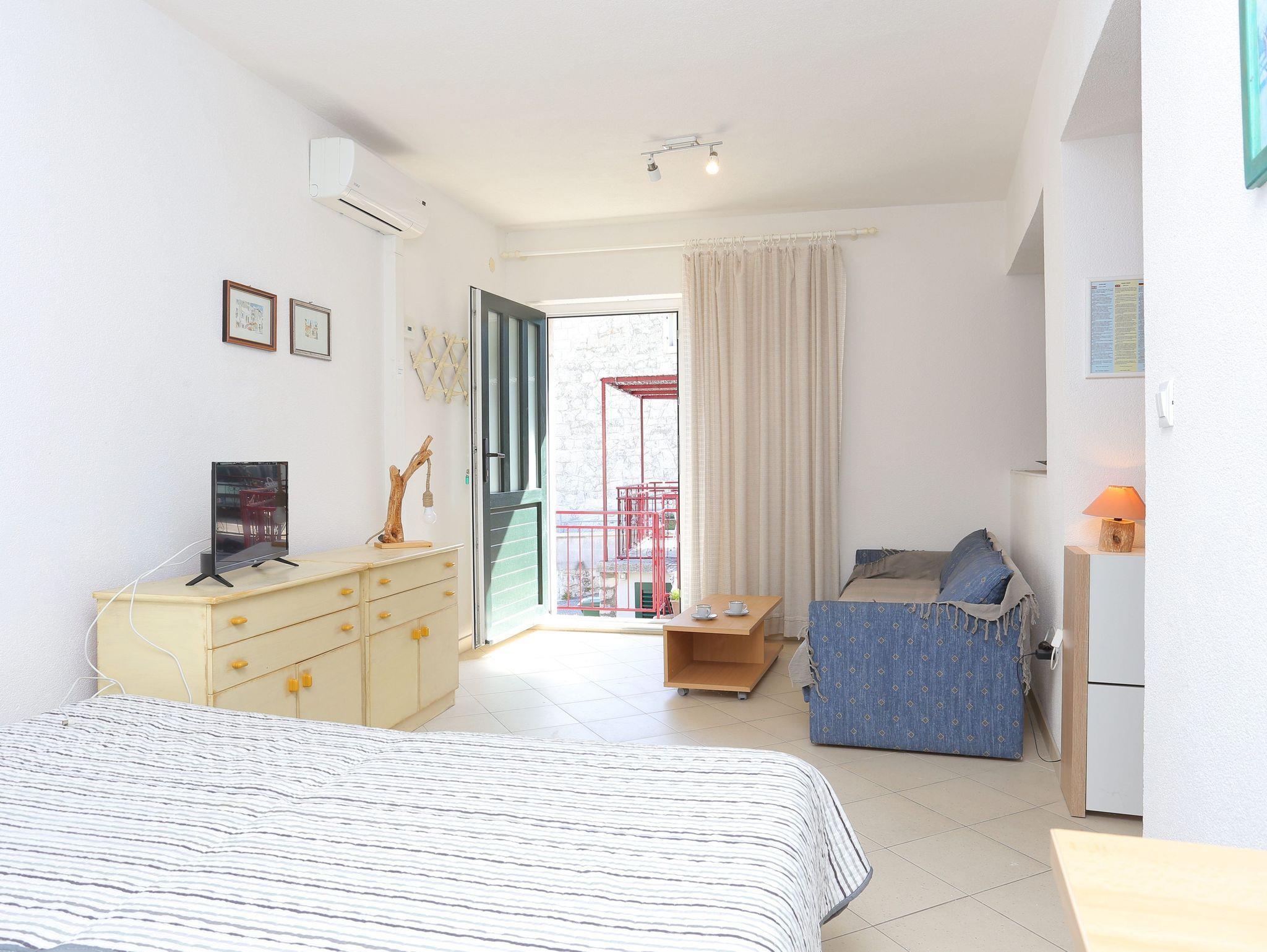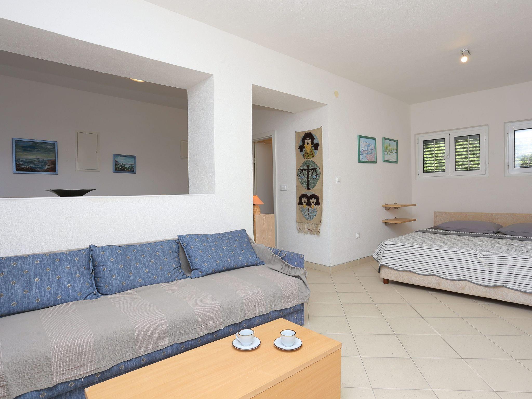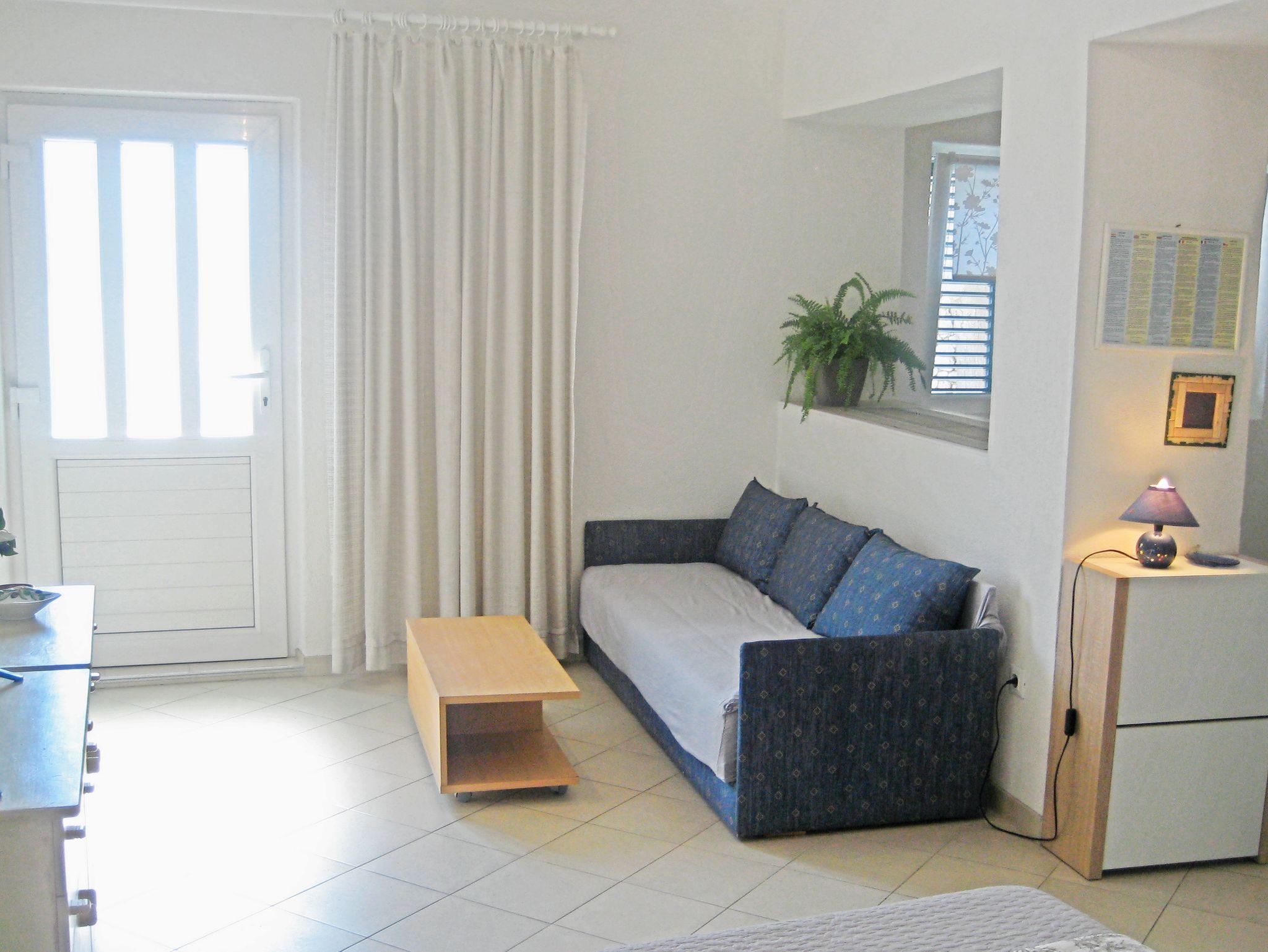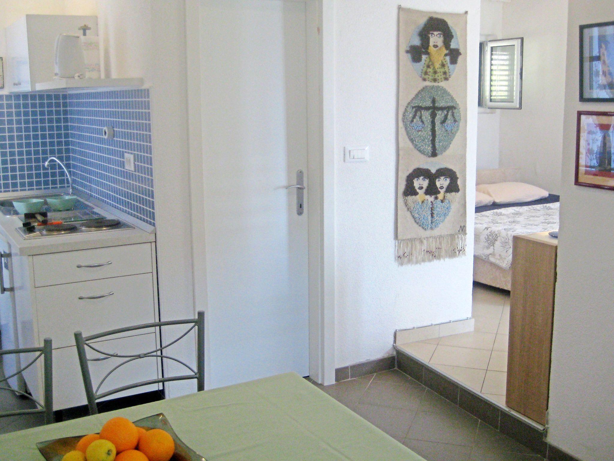 Studio bietet Platz für 4 Gäste. Die Betten sind in Schlafzimmern, die es 1 gibt, und in Wohnzimmer und Esszimmer, innerhalb einer Gesamtfläche von 26m2, angeordnet. Die Gäste haben eine eigene Terrasse zur Verfügung, auf der sie in warmen Sommernächten genießen können. Das Studio-Apartment bietet Meerblick. Es ist erlaubt, Speisen auf dem Gemeinschafts-Grill vorzubereiten. In der Unterkunftseinheit besteht die Möglichkeit des Mitbringens von Haustieren gegen Aufpreis. Unterkunftseinheit hat Räume, die von dem Rest der Einheit abgetrennt werden. IM PREIS INBEGRIFFEN: Kurtaxe, Endreinigung, Klimatisierung, Parkplatz, Internet, Kinderbett, tragbarer Grill. UNVERBINDLICHE ZUSÄTZLICHE KOSTEN: Haustiere (5,00 € pro Nacht). Die Verfügbarkeit zusätzlicher Dienstleistungen in Ihrem reservierten Termin und die Preise derselben (falls nicht aufgeführt) müssen im Voraus überprüft werden. Zusätzliche Dienstleistungen die in der Zahlungsaufforderung nicht aufgeführt sind werden direkt beim Vermieter bezahlt, angenommen der Gast nutzt auch diese. Ermäßigung auf den Grundpreis: Gratistag 14=13 (bei einem Aufenthalt von 14 Tagen oder mehr erhalten Sie einen Gratistag für den Aufenthalt bis 31.12.26).