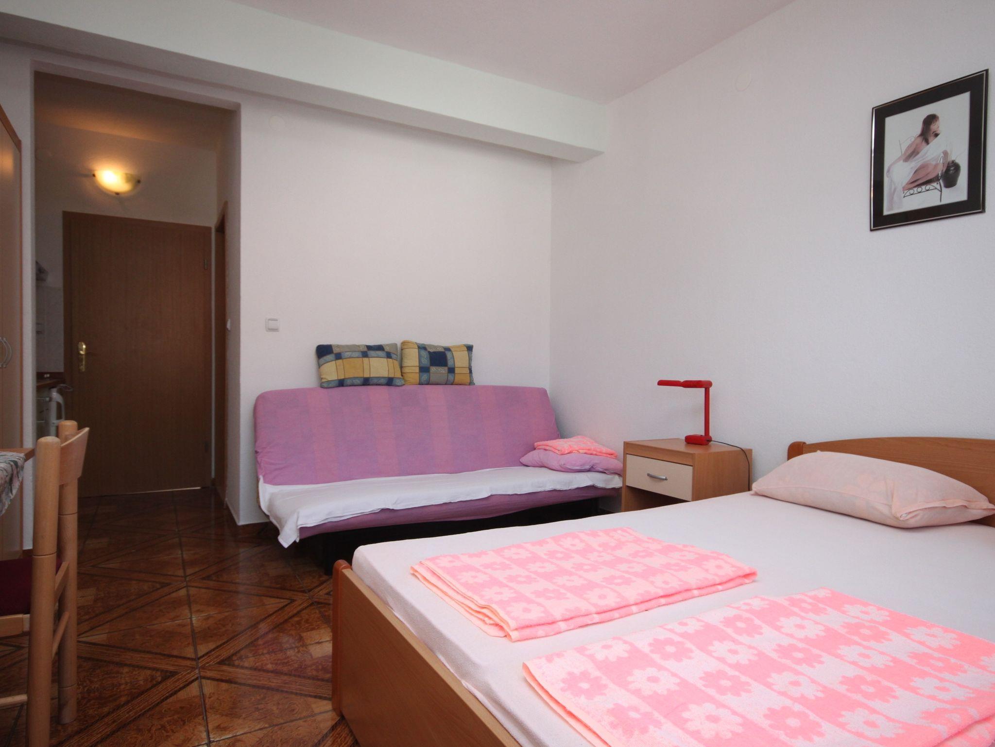 Studio bietet Platz für 3 Gäste. Die Betten sind in Schlafzimmern, die es 1 gibt, innerhalb einer Gesamtfläche von 20m2, angeordnet. Die Gäste haben einen eigenen Balkon zur Verfügung, auf der sie in warmen Sommernächten genießen können. Das Studio-Apartment bietet Meerblick. Es ist erlaubt, Speisen auf dem Gemeinschafts-Grill vorzubereiten. IM PREIS INBEGRIFFEN: Kurtaxe, Endreinigung, Klimatisierung, Parkplatz, Internet, Bügeleisen, Bügelbrett, Föhn, tragbarer Grill. VERBINDLICHE ZUSÄTZLICHE KOSTEN: Aufzahlung für Kurzaufenthalte (prozentualer Zuschlag pro Nächtigungsanzahl: 30% - 1, 20% - 2, 10% - 3). Die Verfügbarkeit zusätzlicher Dienstleistungen in Ihrem reservierten Termin und die Preise derselben (falls nicht aufgeführt) müssen im Voraus überprüft werden. Zusätzliche Dienstleistungen die in der Zahlungsaufforderung nicht aufgeführt sind werden direkt beim Vermieter bezahlt, angenommen der Gast nutzt auch diese. Ermäßigung auf den Grundpreis: Gratistag 14=13 (bei einem Aufenthalt von 14 Tagen oder mehr erhalten Sie einen Gratistag für den Aufenthalt bis 31.12.26).