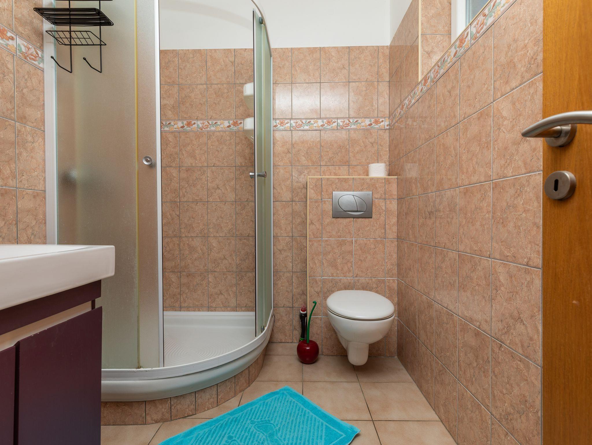 Ferienwohnung bietet Platz für 4 Gäste. Die Betten sind in Schlafzimmern, die es 1 gibt, und in Wohnzimmer, innerhalb einer Gesamtfläche von 33m2, angeordnet. Die Gäste haben eine eigene Terrasse zur Verfügung, auf der sie in warmen Sommernächten genießen können. Das Apartment bietet Meerblick. Es ist erlaubt, Speisen auf dem Gemeinschafts-Grill vorzubereiten. In der Unterkunftseinheit besteht die Möglichkeit des Mitbringens von Haustieren gegen Aufpreis. IM PREIS INBEGRIFFEN: Kurtaxe, Endreinigung, Klimatisierung, Parkplatz, Internet, Kinderbett, tragbarer Grill. VERBINDLICHE ZUSÄTZLICHE KOSTEN: Aufzahlung für Kurzaufenthalte (prozentualer Zuschlag pro Nächtigungsanzahl: 30% - 1, 20% - 2, 10% - 3). UNVERBINDLICHE ZUSÄTZLICHE KOSTEN: Haustiere (5,00 € pro Nacht). Die Verfügbarkeit zusätzlicher Dienstleistungen in Ihrem reservierten Termin und die Preise derselben (falls nicht aufgeführt) müssen im Voraus überprüft werden. Zusätzliche Dienstleistungen die in der Zahlungsaufforderung nicht aufgeführt sind werden direkt beim Vermieter bezahlt, angenommen der Gast nutzt auch diese. Ermäßigung auf den Grundpreis: Gratistag 14=13 (bei einem Aufenthalt von 14 Tagen oder mehr erhalten Sie einen Gratistag für den Aufenthalt bis 31.12.26).