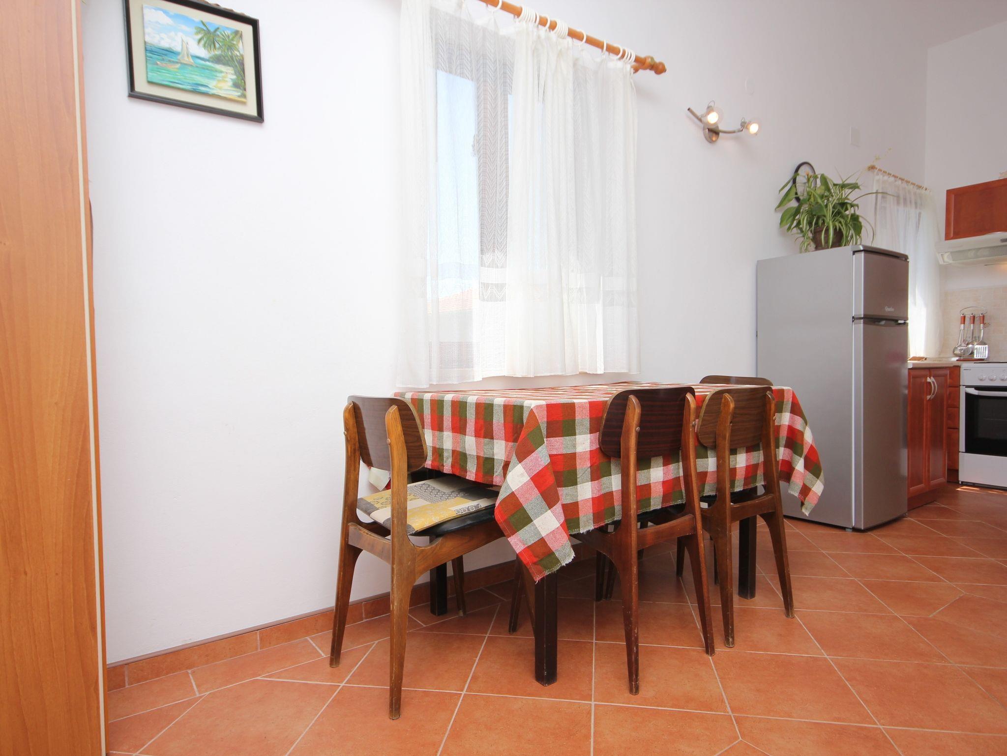 Ferienwohnung bietet Platz für 4 Gäste. Die Betten sind in Schlafzimmern, die es 1 gibt, und in Wohnzimmer, innerhalb einer Gesamtfläche von 37m2, angeordnet. Die Gäste haben eine eigene Terrasse zur Verfügung, auf der sie in warmen Sommernächten genießen können. Es ist erlaubt, Speisen auf dem Gemeinschafts-Grill vorzubereiten. In der Unterkunftseinheit besteht die Möglichkeit des Mitbringens von Haustieren gegen Aufpreis. IM PREIS INBEGRIFFEN: Kurtaxe, Endreinigung, Klimatisierung, Internet, Wäschewaschen, Transport zum Objekt (mit dem Boot des Vermieters), Bügeleisen, Föhn. VERBINDLICHE ZUSÄTZLICHE KOSTEN: Aufzahlung für Kurzaufenthalte (prozentualer Zuschlag pro Nächtigungsanzahl: 30% - 1, 20% - 2, 10% - 3). UNVERBINDLICHE ZUSÄTZLICHE KOSTEN: Haustiere (5,00 € pro Nacht). Die Verfügbarkeit zusätzlicher Dienstleistungen in Ihrem reservierten Termin und die Preise derselben (falls nicht aufgeführt) müssen im Voraus überprüft werden. Zusätzliche Dienstleistungen die in der Zahlungsaufforderung nicht aufgeführt sind werden direkt beim Vermieter bezahlt, angenommen der Gast nutzt auch diese.