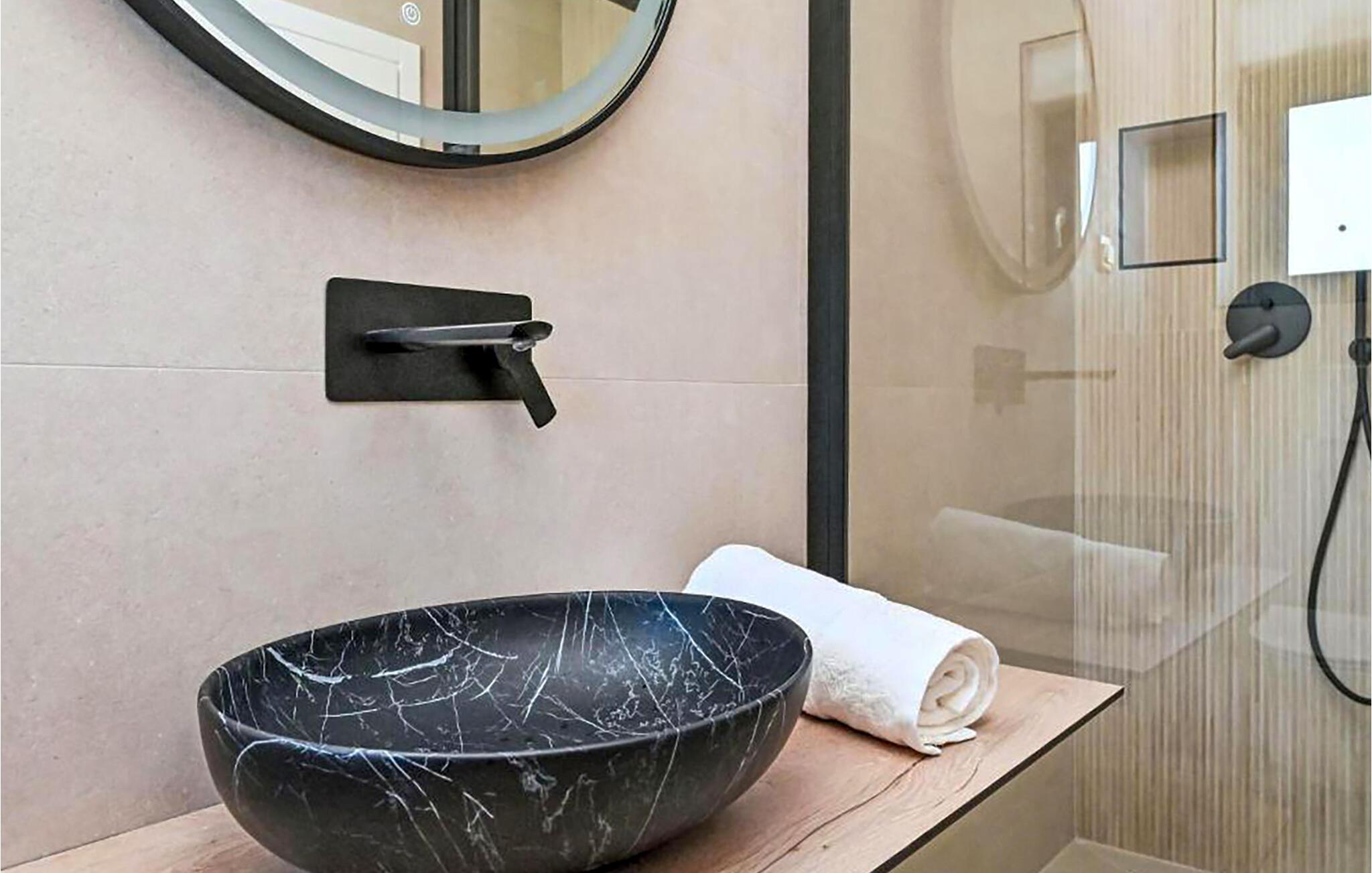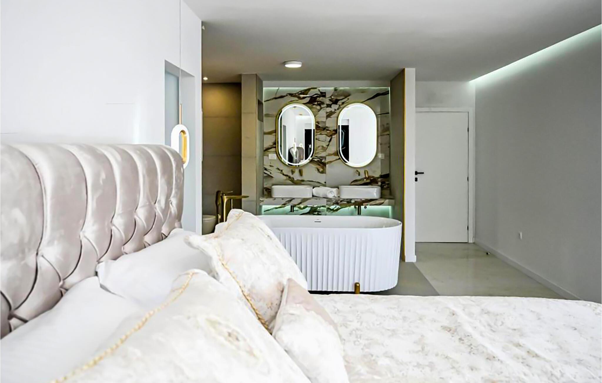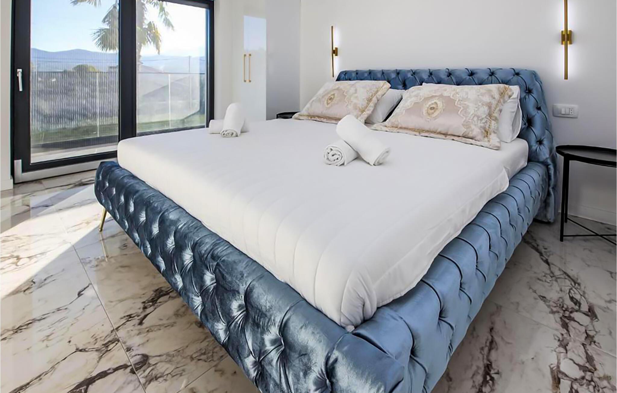 Denne romslige og moderne villaen har god plass til å dele den stilfulle atmosfæren med en større familie eller vennegjeng. Du kan trylle frem kulinariske høydepunkter i hyggelige sammenkomster, samles til avslappede måltider i den elegante spisestuen og kose deg i sofaene av høy kvalitet med en god film eller en spillkveld etter en lang dag i solen.