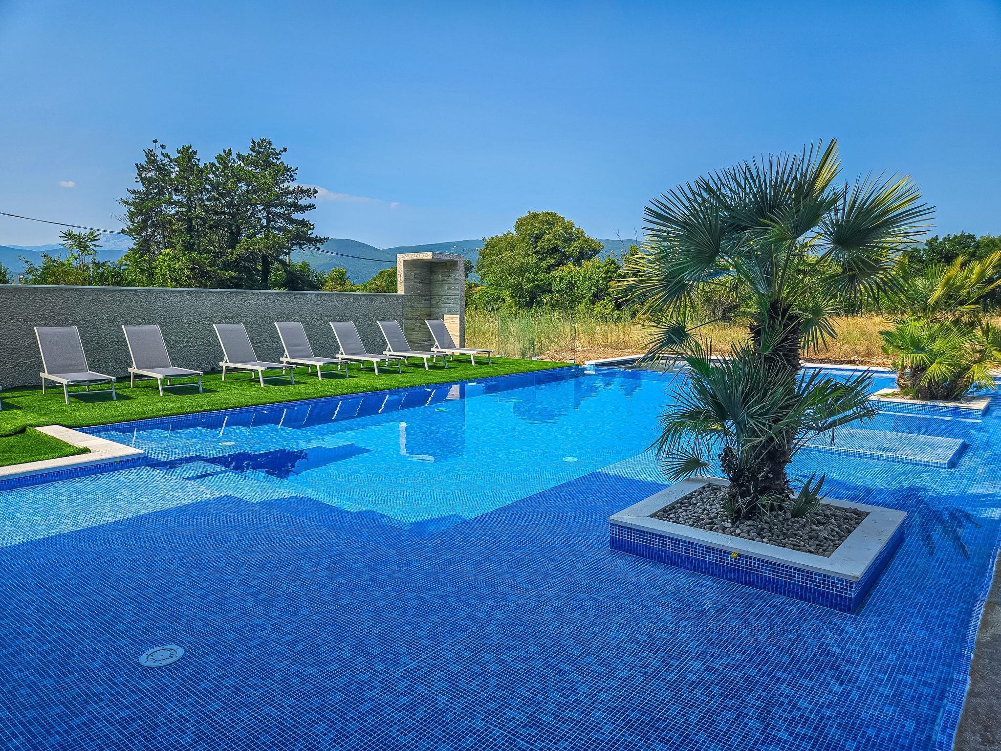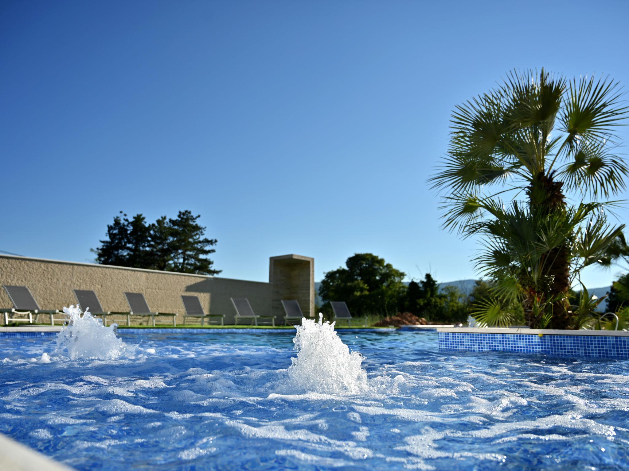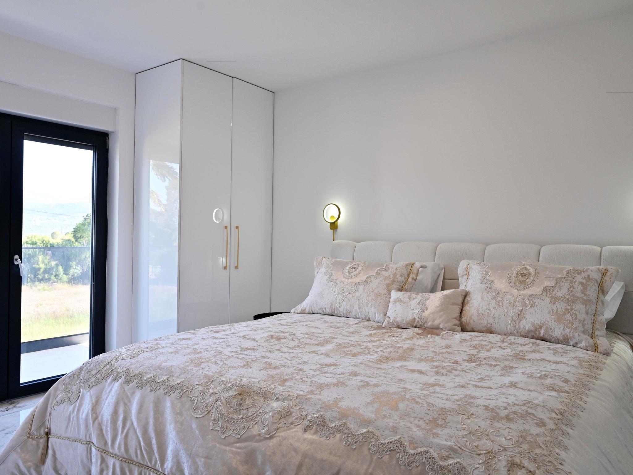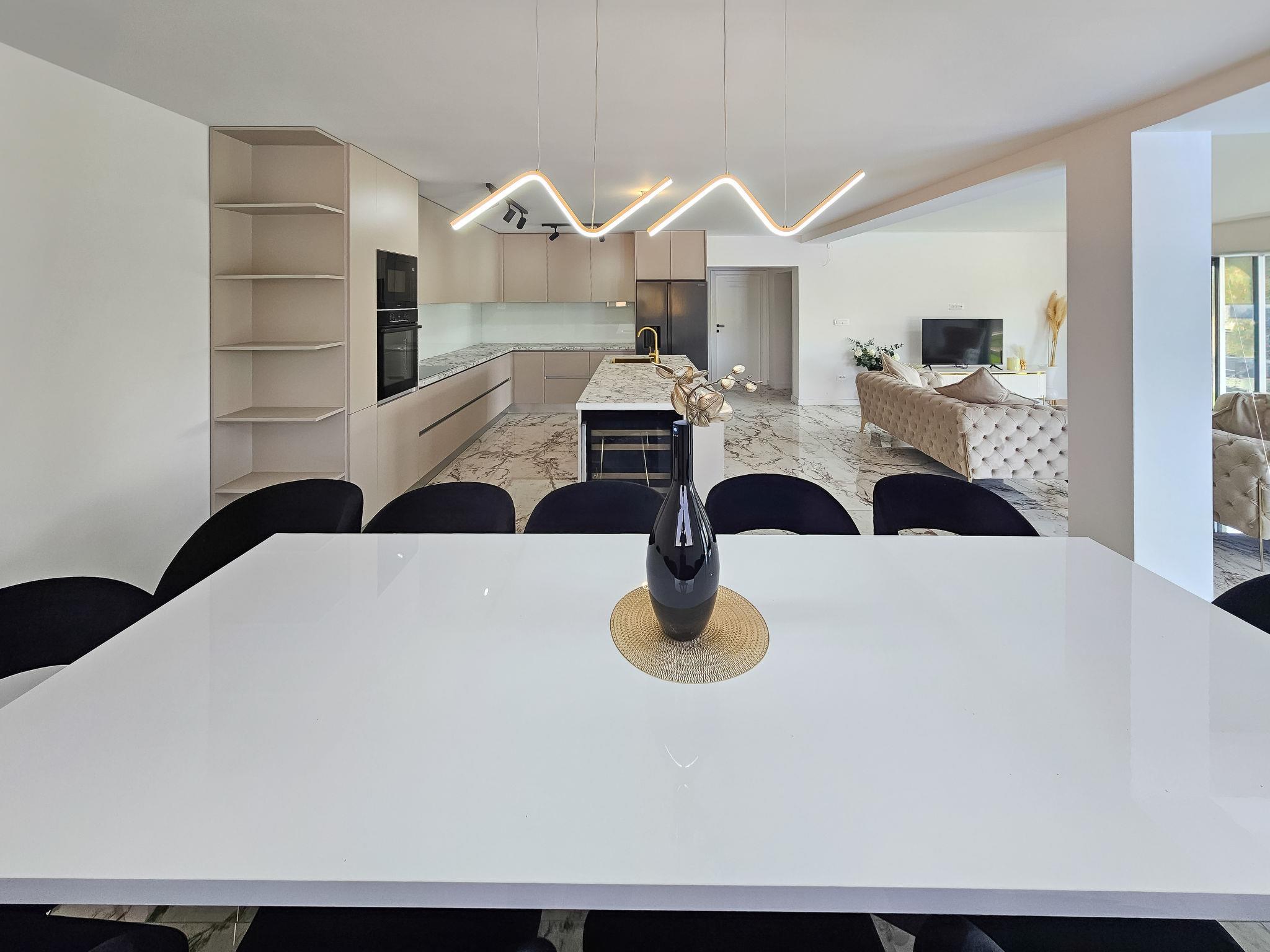 7-room villa 220 m2 on 2 levels. Beautiful and stylish furnishings: living/dining room 70 m2 with satellite TV (flat screen), air conditioning. Exit to the terrace. 1 room with 1 french bed (160 cm, length 200 cm), shower/WC. Exit to the balcony. 1 room with 2 beds (80 cm, length 200 cm), shower/WC. Exit to the balcony. Open kitchen (oven, dishwasher, 4 ceramic glass hob hotplates, microwave, freezer, electric coffee machine). Sep. WC. Upper floor: 2 rooms, each room with 1 french bed (180 cm, length 200 cm), shower/WC. 1 room with 1 french bed (180 cm, length 200 cm), bath/WC. Exit to the balcony. 1 room with 2 beds (80 cm, length 200 cm), 1 french bed (180 cm, length 200 cm), bath/shower/WC. Exit to the balcony. 2 balconies 4 m2, balcony 5 m2, terrace 10 m2. Terrace furniture, deck chairs (8). Beautiful view of the swimming pool and the countryside. Facilities: washing machine, children's high chair, baby cot, hair dryer. Internet (WiFi, free). Please note: non-smoking house. UP/I-335-02/24-0201/102