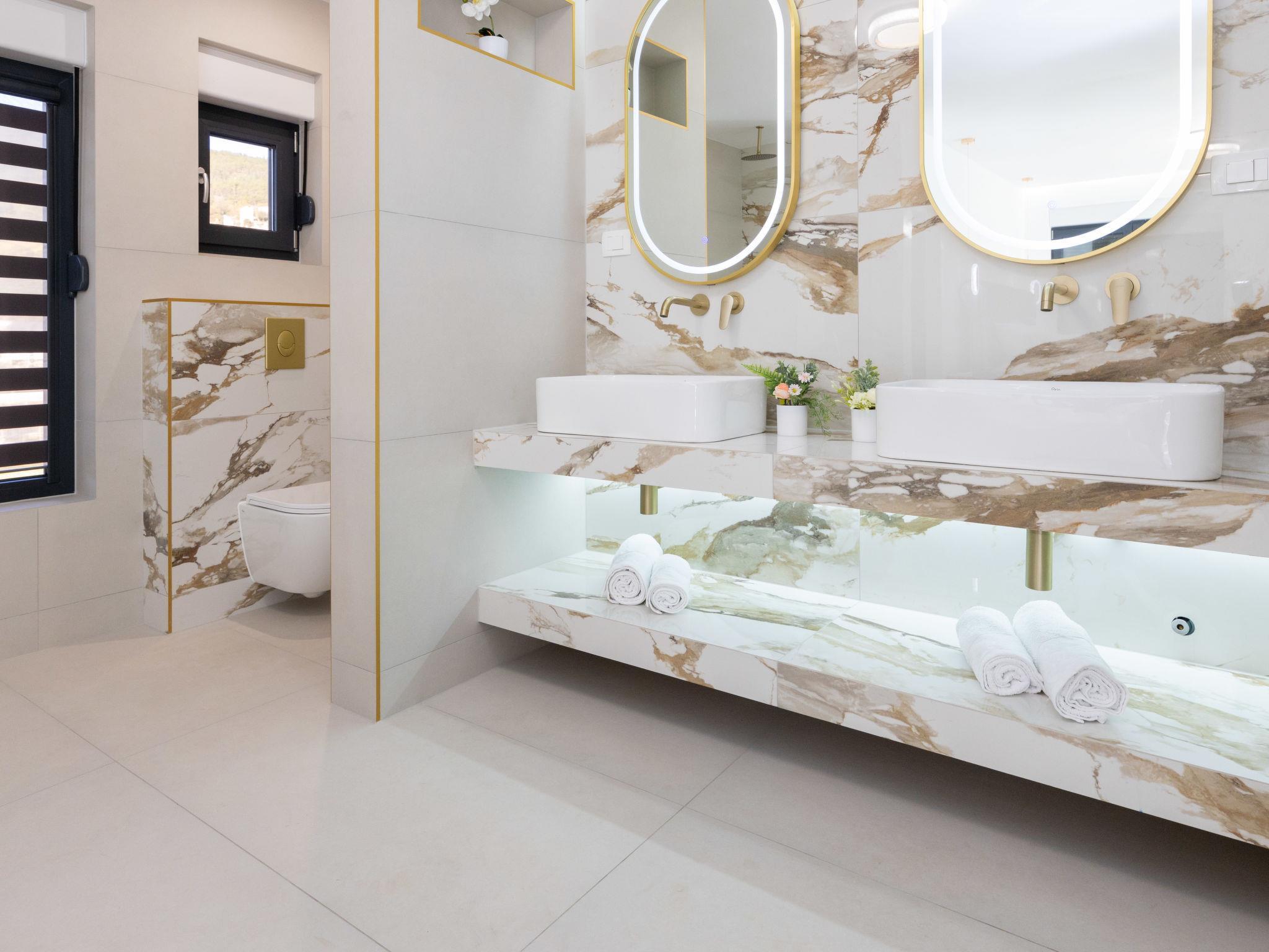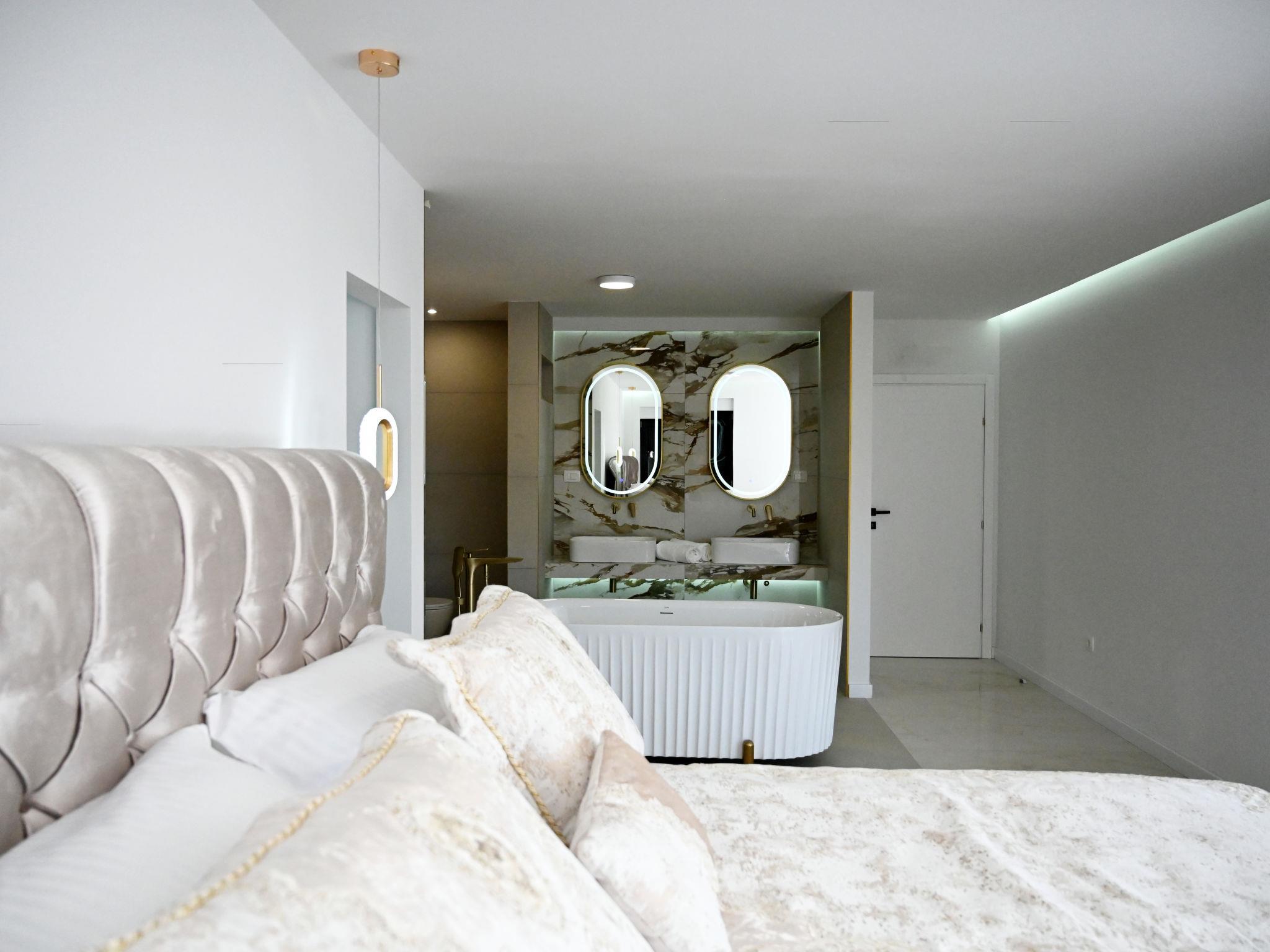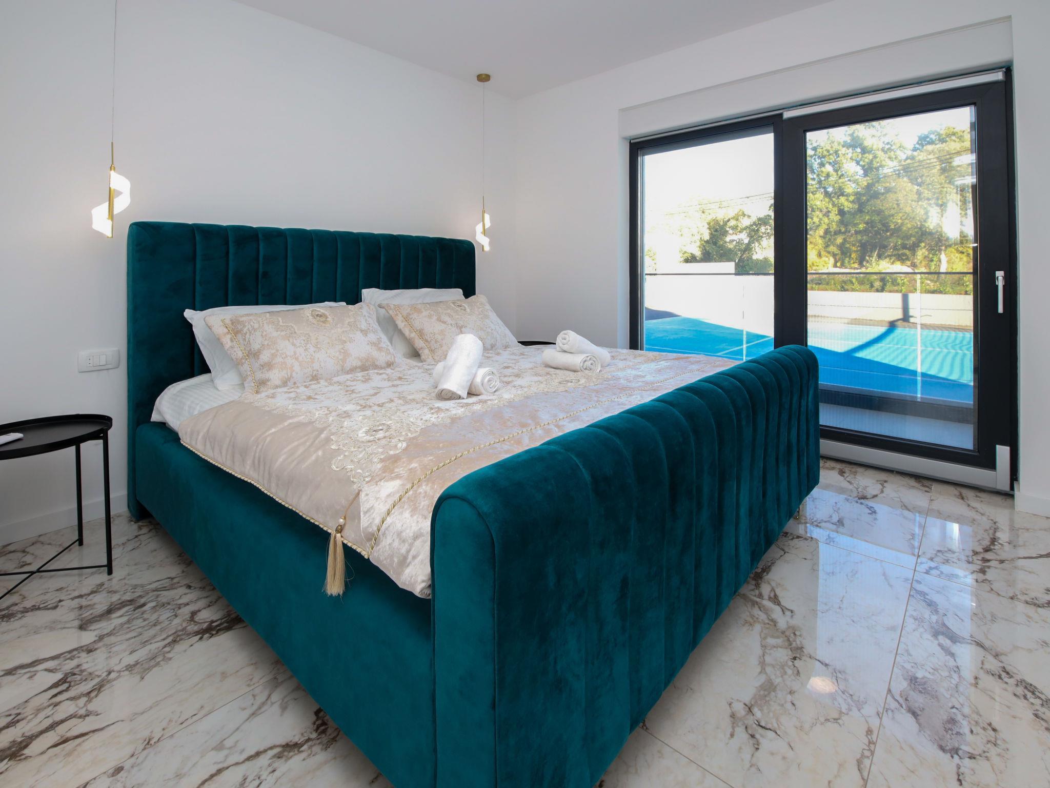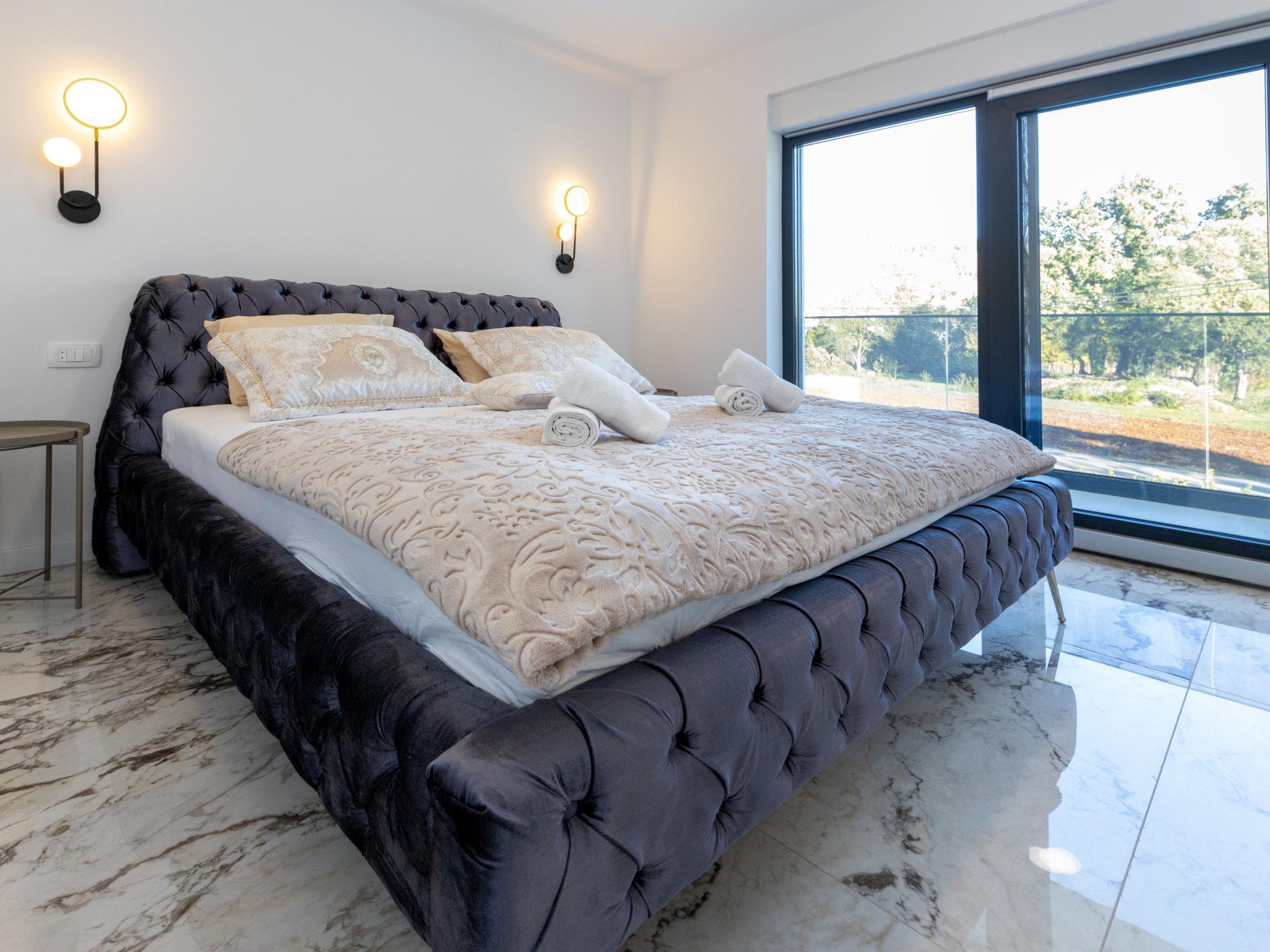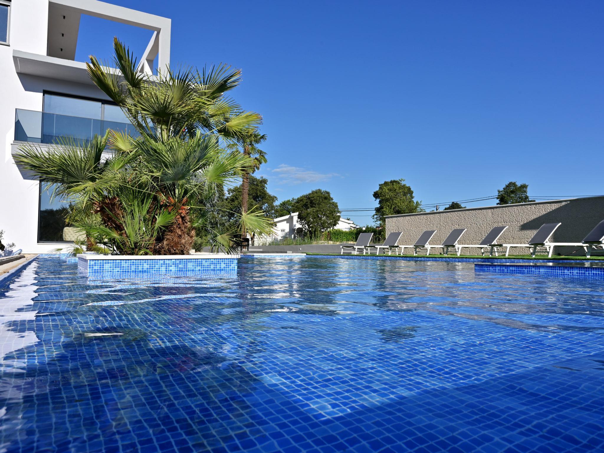 7-room villa 220 m2 on 2 levels. Beautiful and stylish furnishings: living/dining room 70 m2 with satellite TV (flat screen), air conditioning. Exit to the terrace. 1 room with 1 french bed (160 cm, length 200 cm), shower/WC. Exit to the balcony. 1 room with 2 beds (80 cm, length 200 cm), shower/WC. Exit to the balcony. Open kitchen (oven, dishwasher, 4 ceramic glass hob hotplates, microwave, freezer, electric coffee machine). Sep. WC. Upper floor: 2 rooms, each room with 1 french bed (180 cm, length 200 cm), shower/WC. 1 room with 1 french bed (180 cm, length 200 cm), bath/WC. Exit to the balcony. 1 room with 2 beds (80 cm, length 200 cm), 1 french bed (180 cm, length 200 cm), bath/shower/WC. Exit to the balcony. 2 balconies 4 m2, balcony 5 m2, terrace 10 m2. Terrace furniture, deck chairs (8). Beautiful view of the swimming pool and the countryside. Facilities: washing machine, children's high chair, baby cot, hair dryer. Internet (WiFi, free). Please note: non-smoking house. UP/I-335-02/24-0201/102