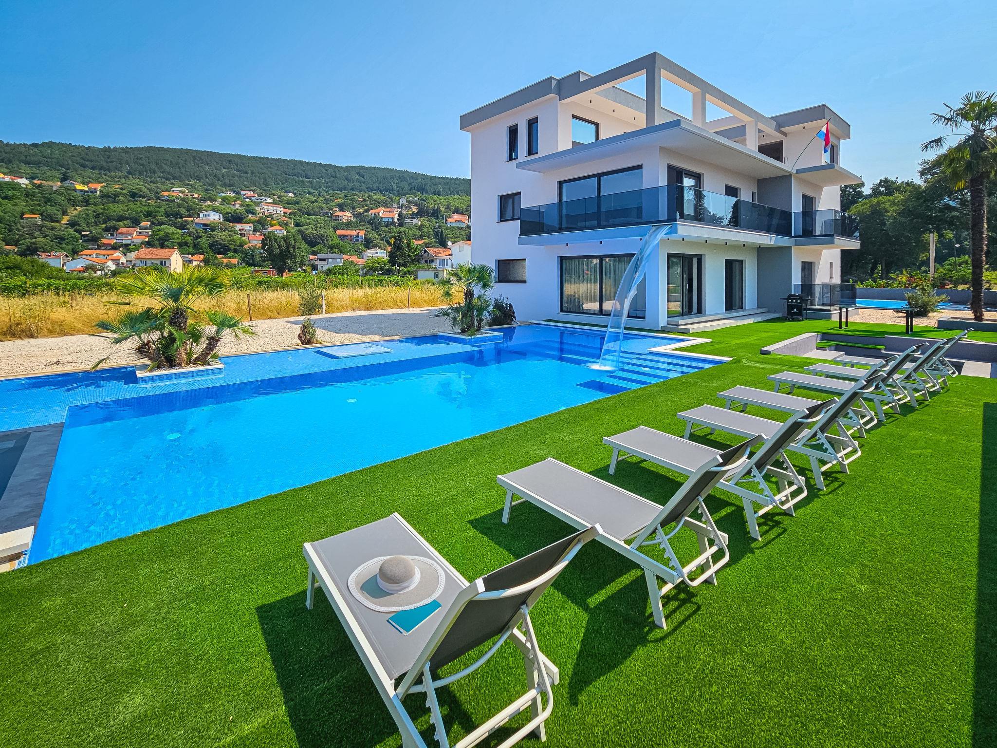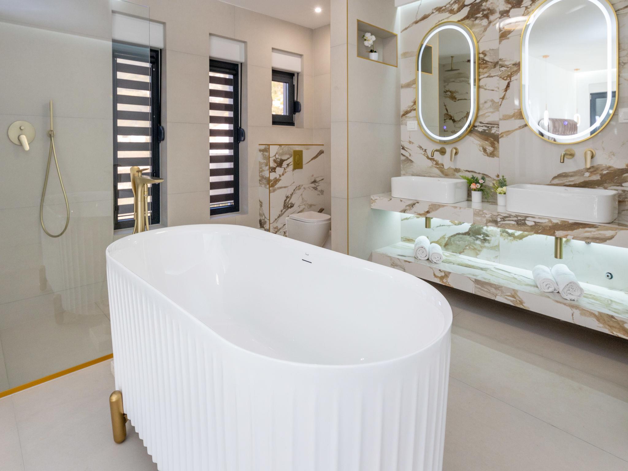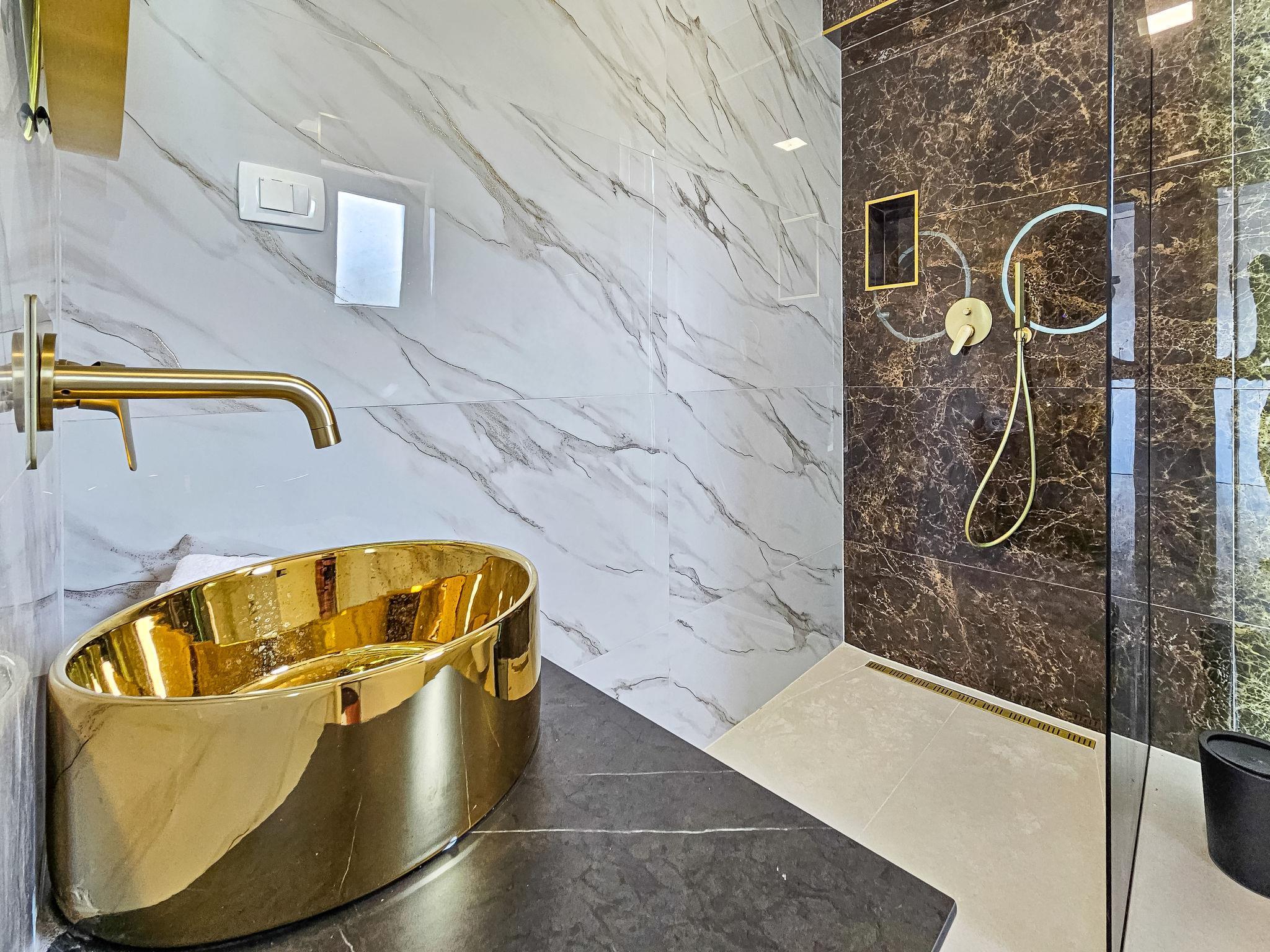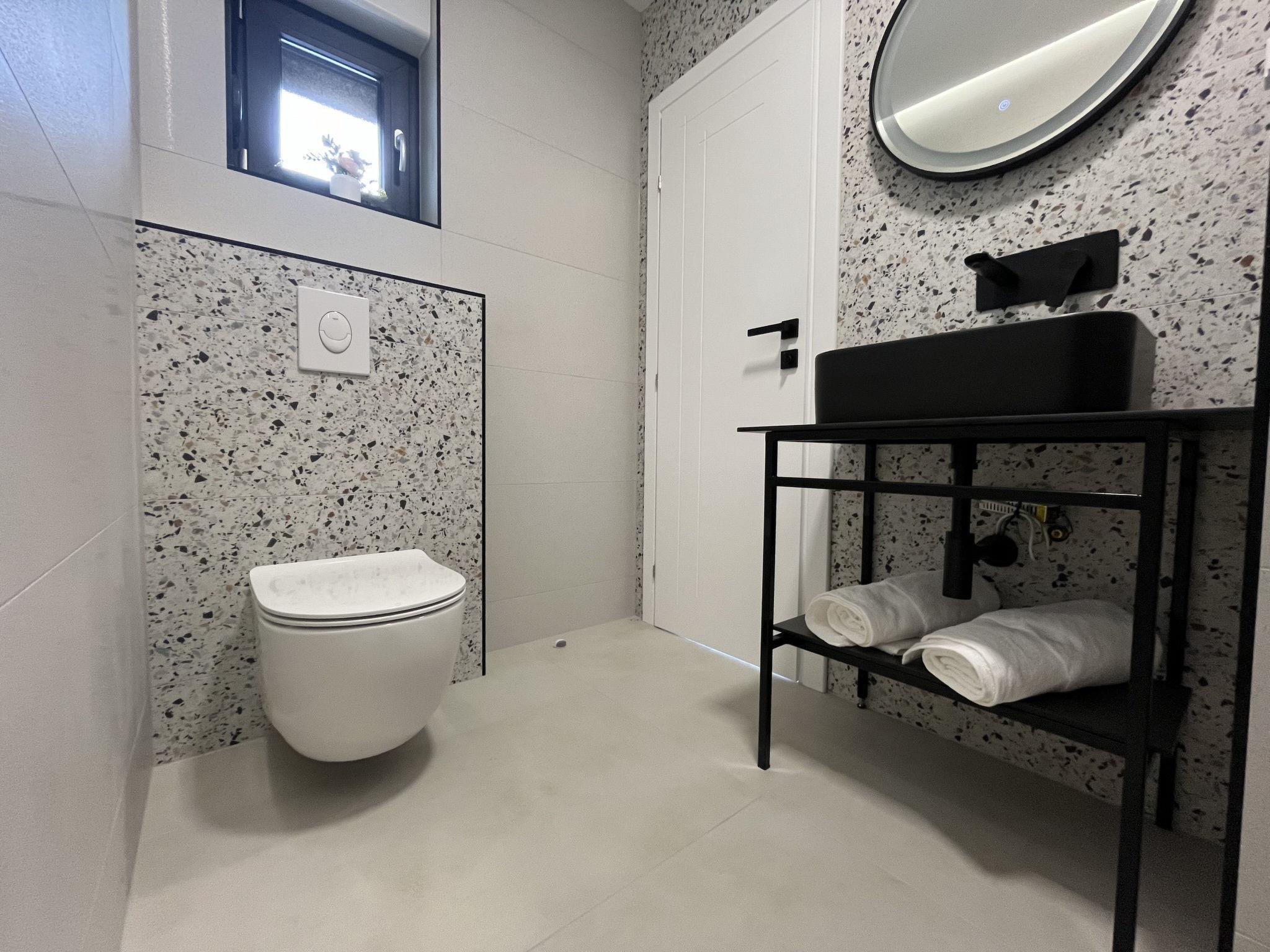 7-room villa 220 m2 on 2 levels. Beautiful and stylish furnishings: living/dining room 70 m2 with satellite TV (flat screen), air conditioning. Exit to the terrace. 1 room with 1 french bed (160 cm, length 200 cm), shower/WC. Exit to the balcony. 1 room with 2 beds (80 cm, length 200 cm), shower/WC. Exit to the balcony. Open kitchen (oven, dishwasher, 4 ceramic glass hob hotplates, microwave, freezer, electric coffee machine). Sep. WC. Upper floor: 2 rooms, each room with 1 french bed (180 cm, length 200 cm), shower/WC. 1 room with 1 french bed (180 cm, length 200 cm), bath/WC. Exit to the balcony. 1 room with 2 beds (80 cm, length 200 cm), 1 french bed (180 cm, length 200 cm), bath/shower/WC. Exit to the balcony. 2 balconies 4 m2, balcony 5 m2, terrace 10 m2. Terrace furniture, deck chairs (8). Beautiful view of the swimming pool and the countryside. Facilities: washing machine, children's high chair, baby cot, hair dryer. Internet (WiFi, free). Please note: non-smoking house. UP/I-335-02/24-0201/102