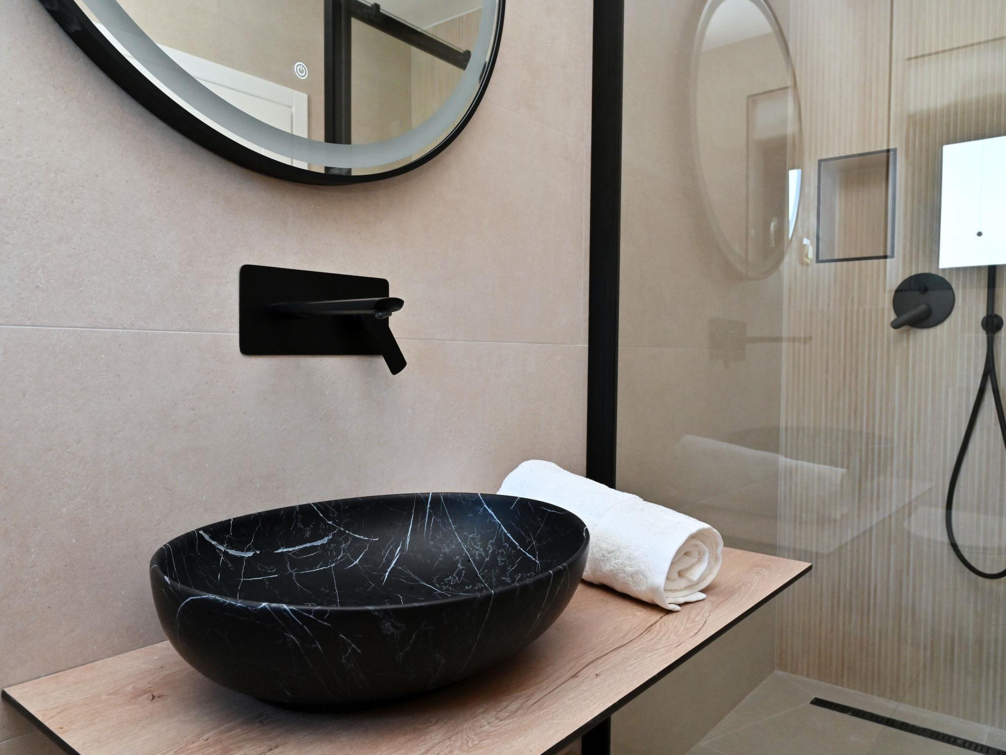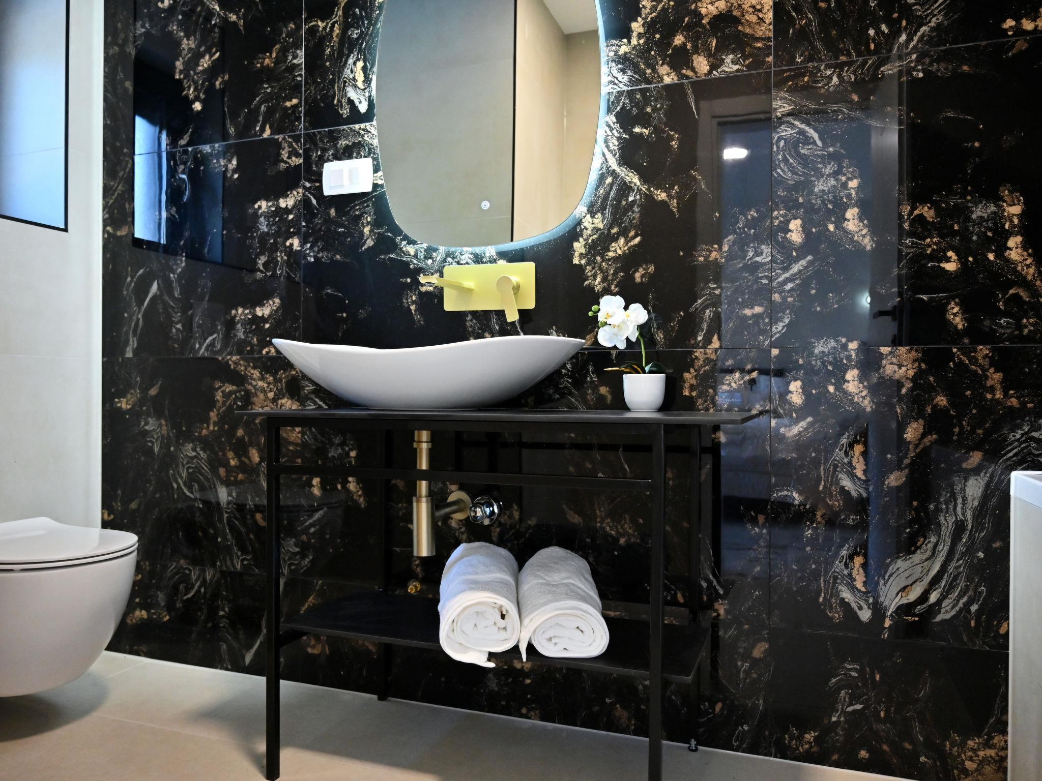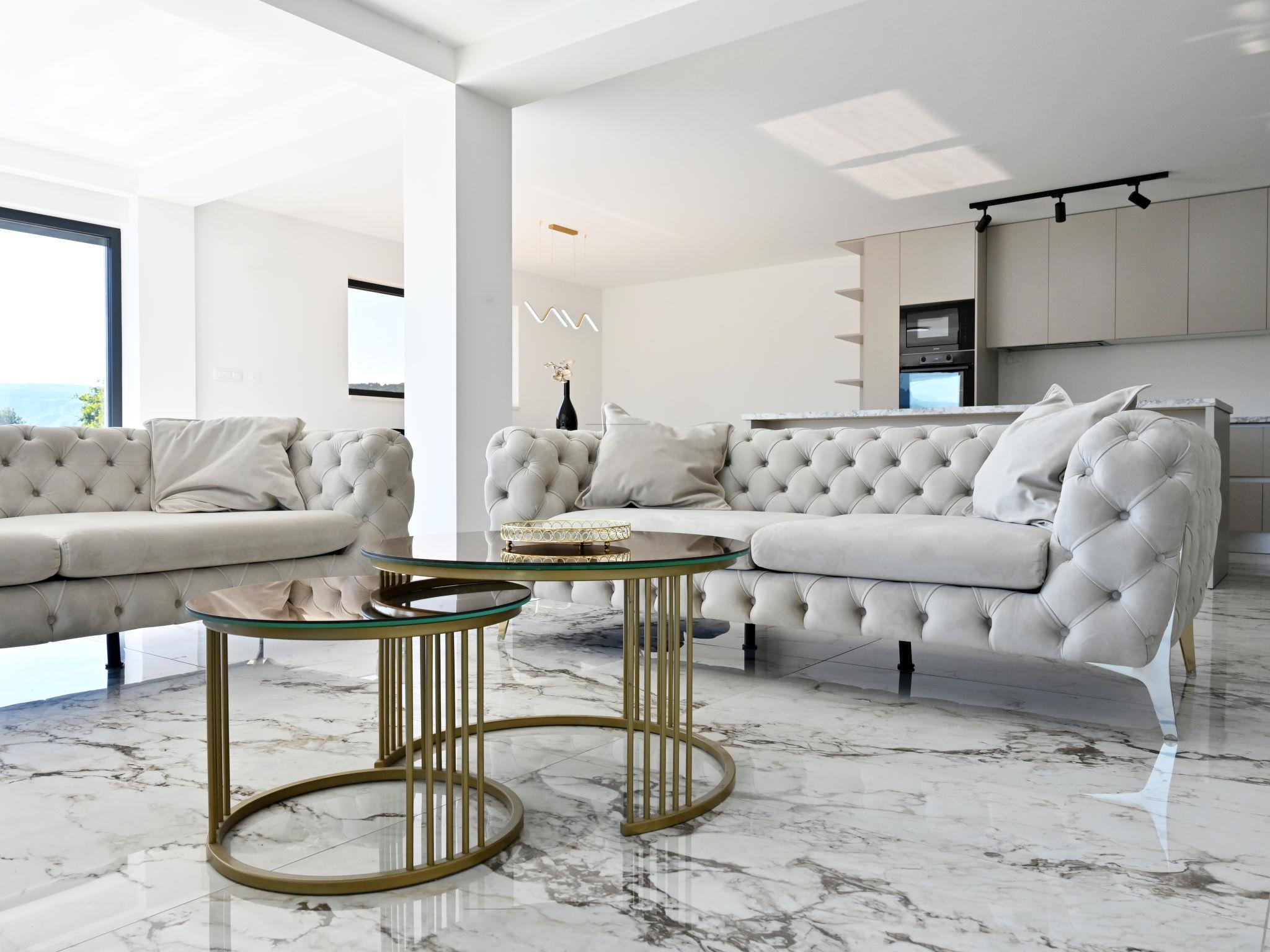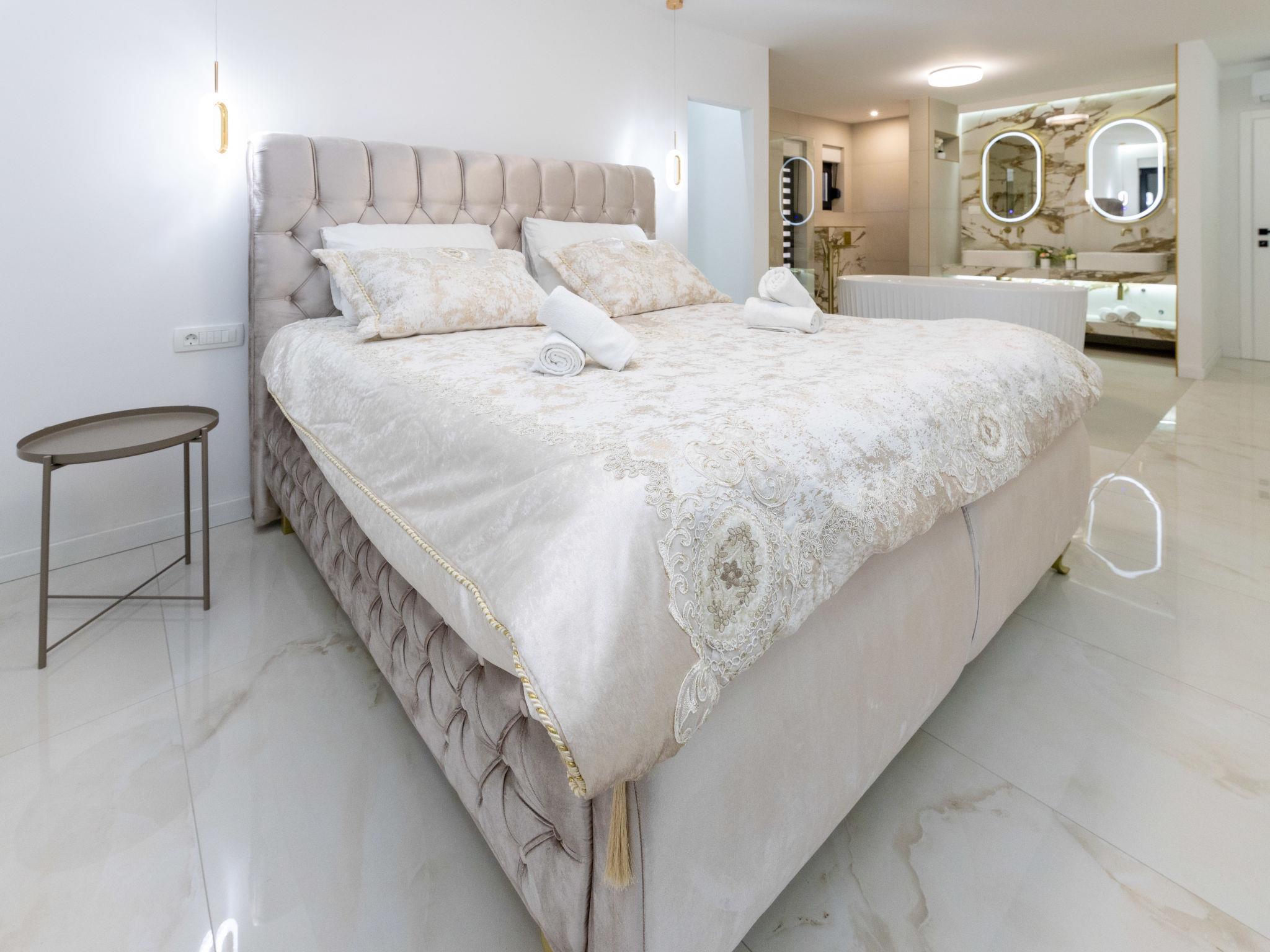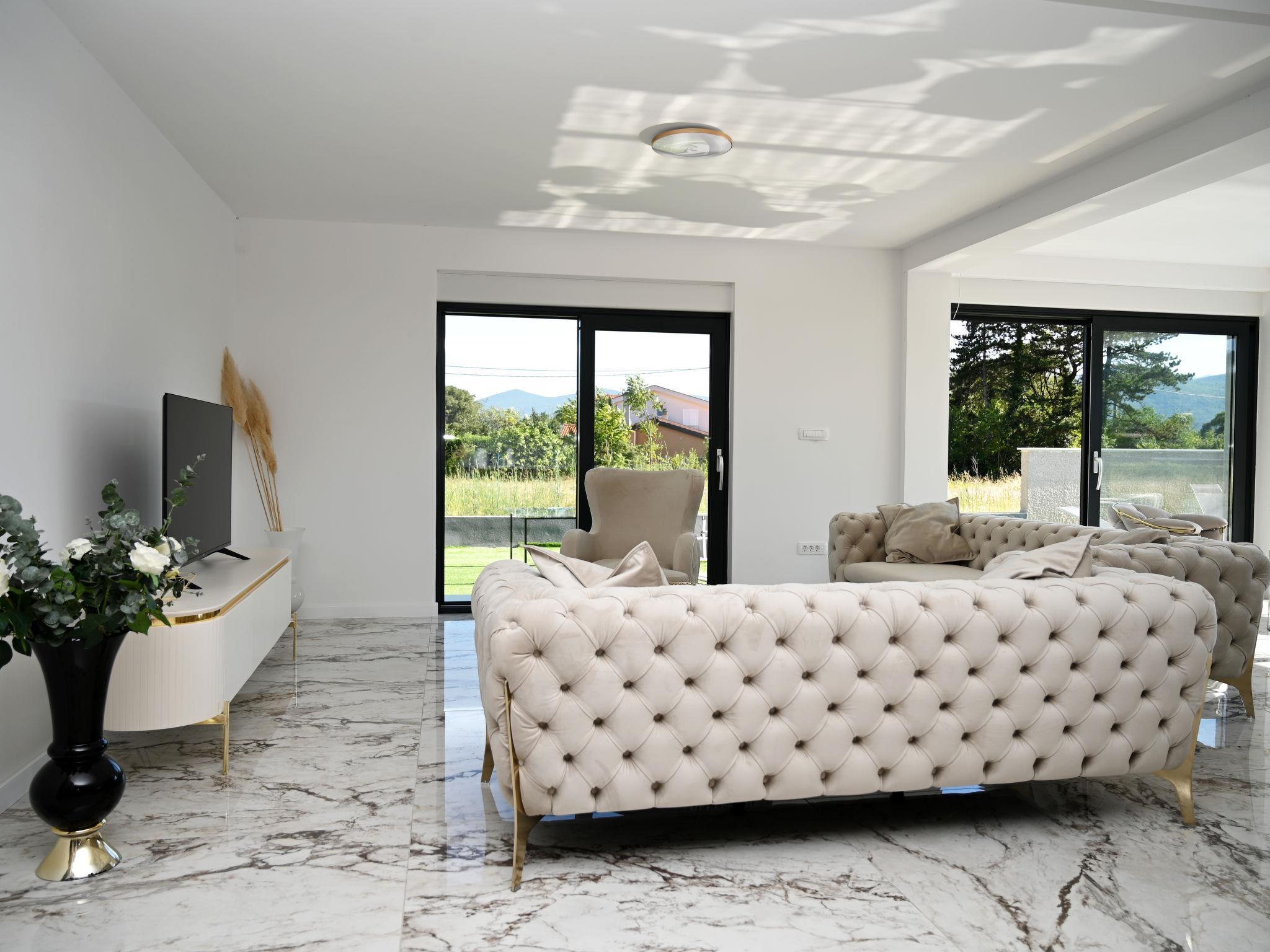 7-room villa 220 m2 on 2 levels. Beautiful and stylish furnishings: living/dining room 70 m2 with satellite TV (flat screen), air conditioning. Exit to the terrace. 1 room with 1 french bed (160 cm, length 200 cm), shower/WC. Exit to the balcony. 1 room with 2 beds (80 cm, length 200 cm), shower/WC. Exit to the balcony. Open kitchen (oven, dishwasher, 4 ceramic glass hob hotplates, microwave, freezer, electric coffee machine). Sep. WC. Upper floor: 2 rooms, each room with 1 french bed (180 cm, length 200 cm), shower/WC. 1 room with 1 french bed (180 cm, length 200 cm), bath/WC. Exit to the balcony. 1 room with 2 beds (80 cm, length 200 cm), 1 french bed (180 cm, length 200 cm), bath/shower/WC. Exit to the balcony. 2 balconies 4 m2, balcony 5 m2, terrace 10 m2. Terrace furniture, deck chairs (8). Beautiful view of the swimming pool and the countryside. Facilities: washing machine, children's high chair, baby cot, hair dryer. Internet (WiFi, free). Please note: non-smoking house. UP/I-335-02/24-0201/102