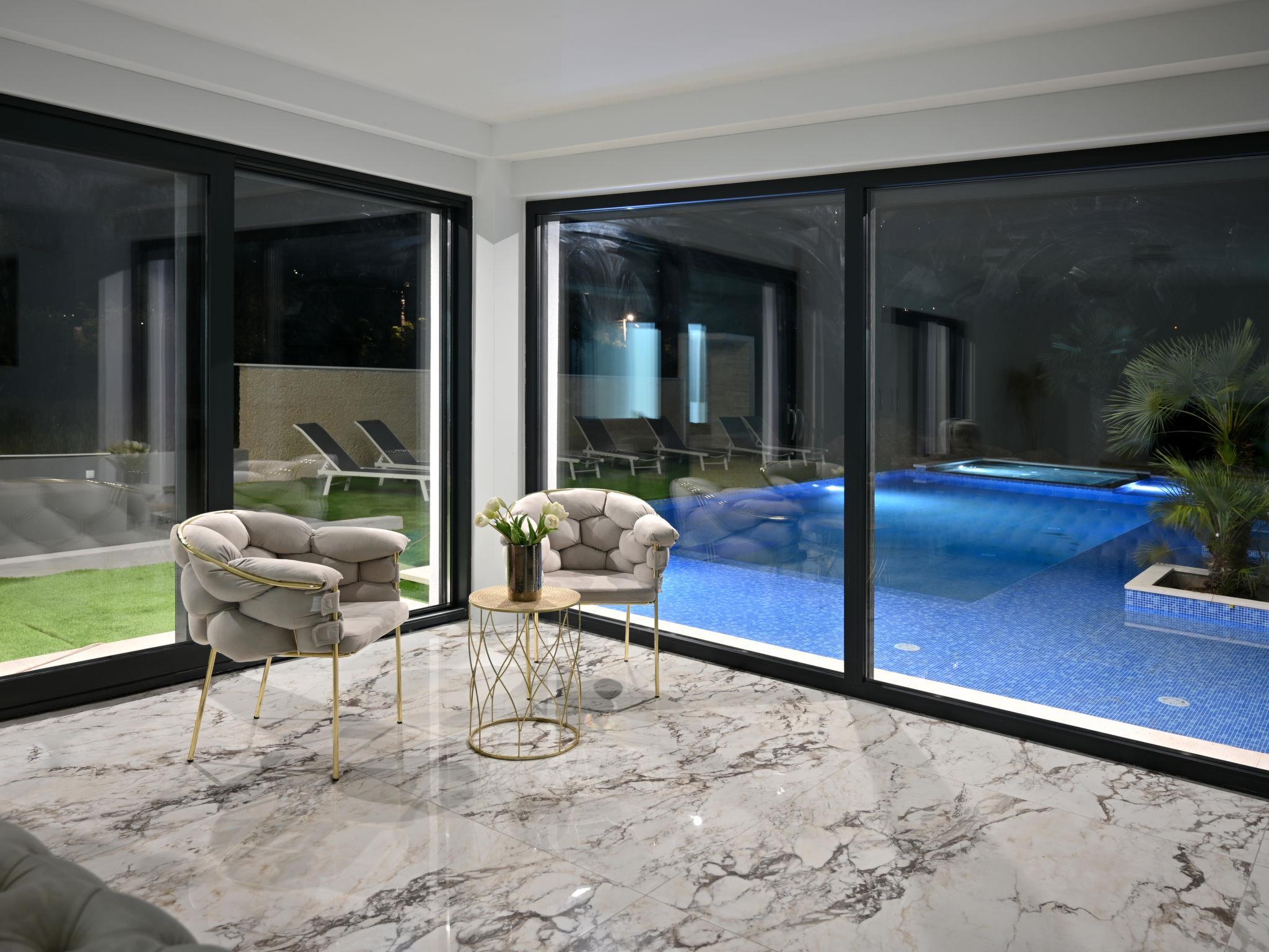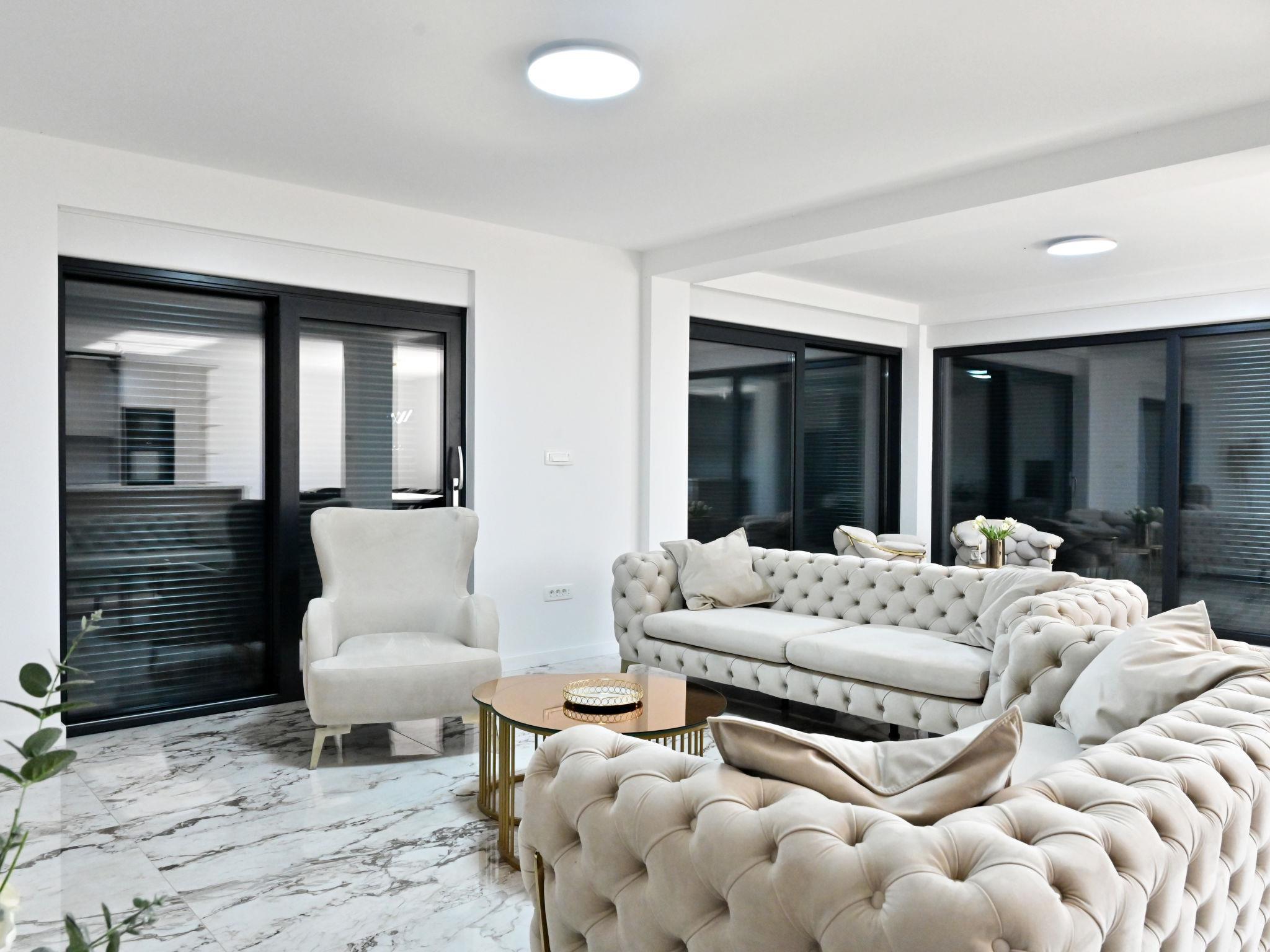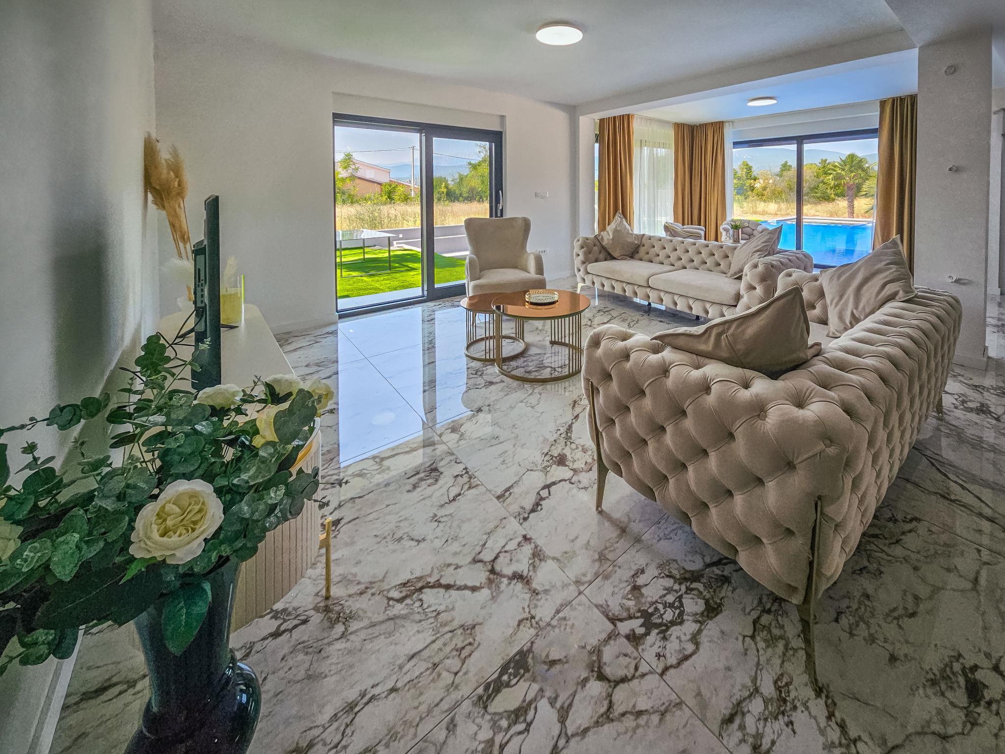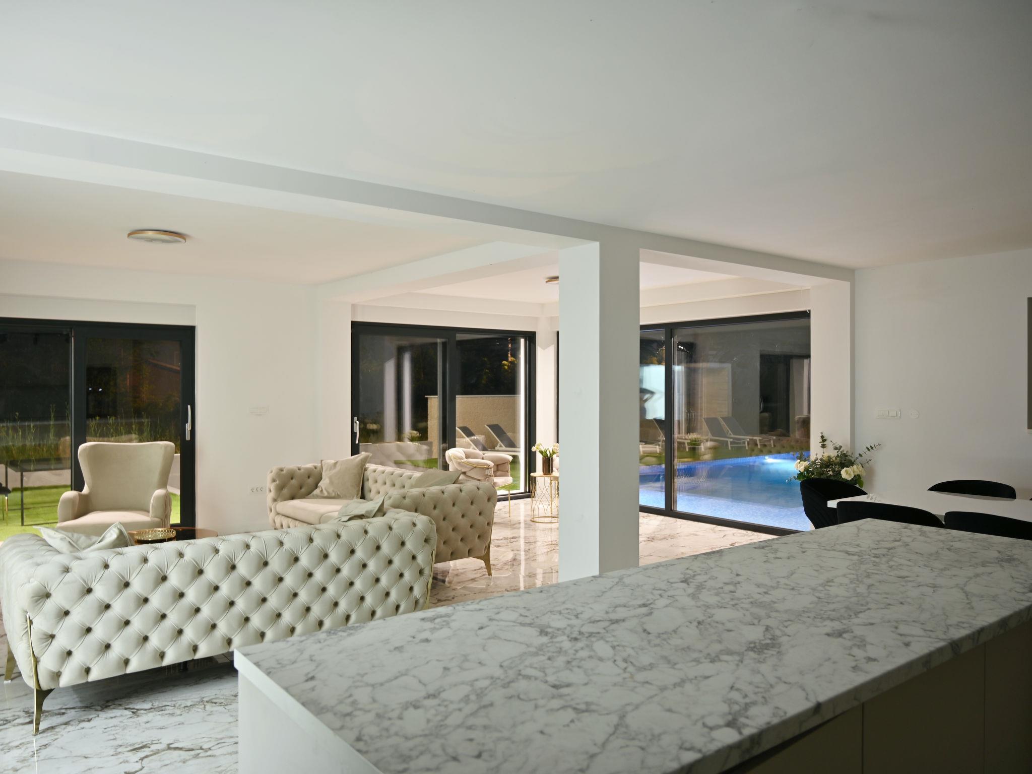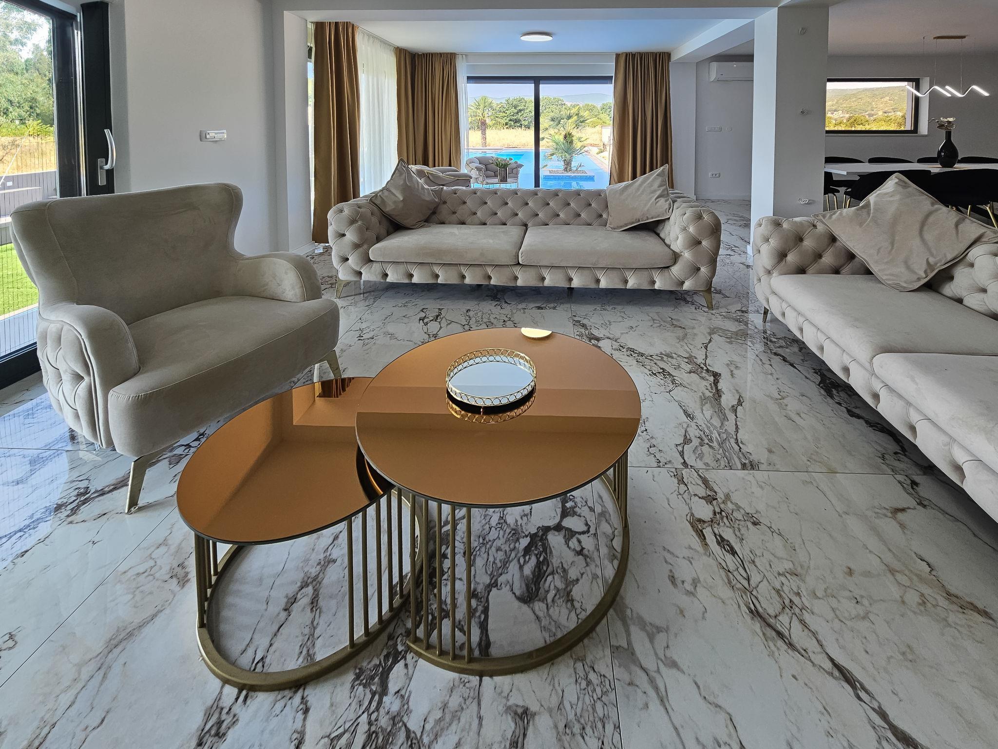 Donji Proložac 6 km from Imotski: Modern, beautiful villa "Noel", 2 storeys, built in 2024. 35 km from the sea. Private: property 700 m2, swimming pool angular (16 x 10 m, depth 25 - 160 cm, seasonal availability: 01.May. - 01.Oct.) with internal staircase. Paddling pool, outdoor shower, barbecue. In the house: internet access, washing machine. Parking (for 5 cars) at the house on the premises. Shop 2 km, restaurant 4 km, bus stop 5.8 km, pebble beach 38 km. Well-known lakes can easily be reached: Modro jezero 6 km, Crveno jezero 6 km. Please note: suitable for families. Groups of teenagers on request only.