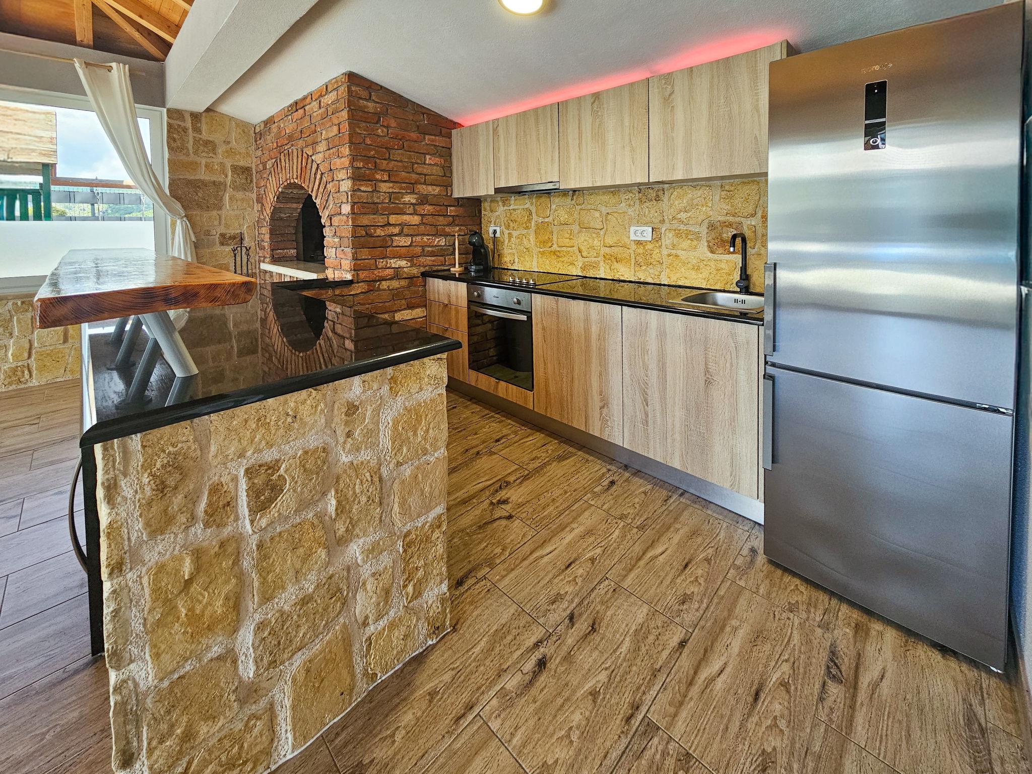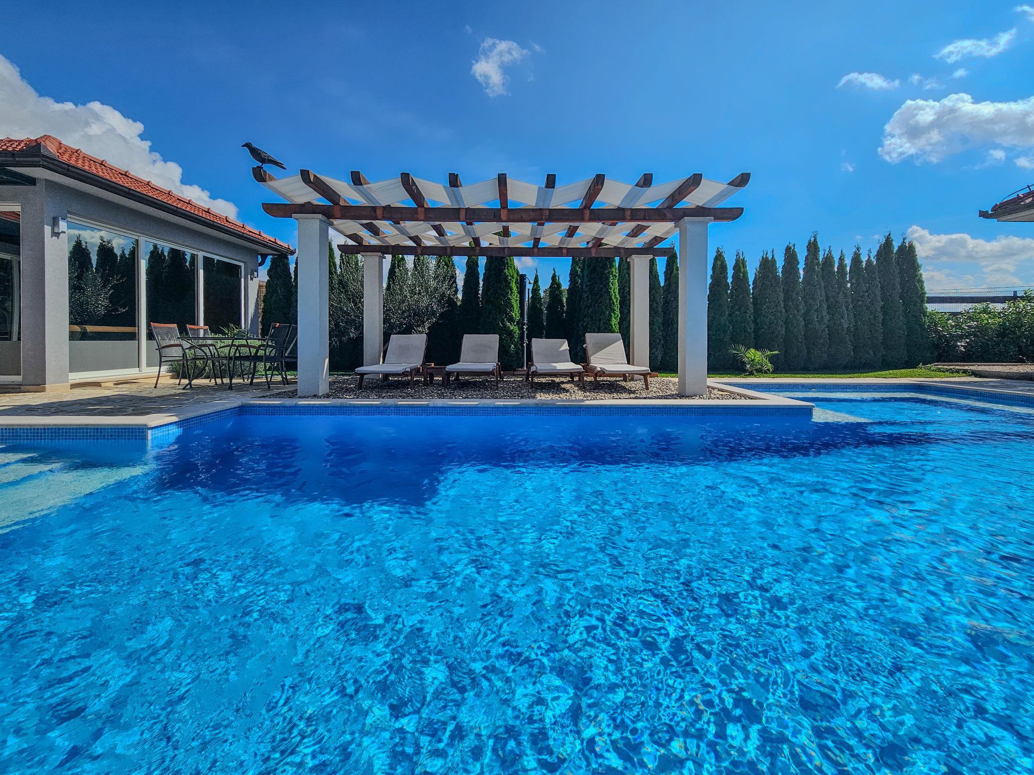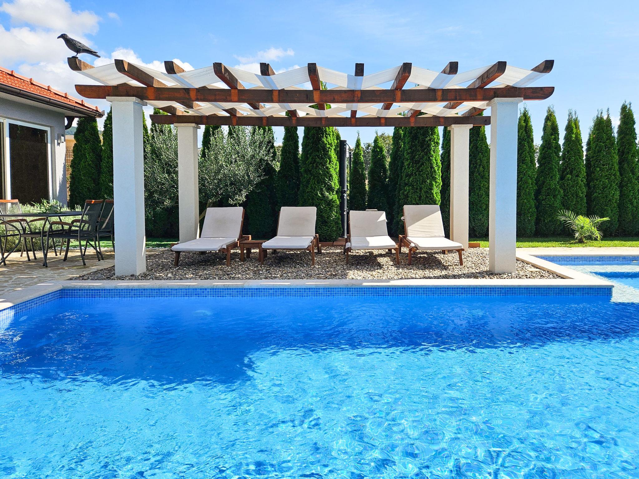 Donji Proložac 6 km from Imotski: Modern, beautiful single-family house "Maja". In a quiet, sunny position, 38 km from the sea. Private: property 1'200 m2 (fenced), lawn 260 m2, swimming pool angular (10 x 5 m, 52 m2, depth 150 cm, seasonal availability: 01.May. - 01.Oct.) with internal staircase. Outdoor shower, hot tub, pool house with fridge, shower, WC and cooking stove, table tennis, terrace (50 m2), garden furniture, barbecue, children's playground (slide). In the house: internet access. Parking (for 3 cars) at the house on the premises. Shop 2 km, restaurant 4 km, bus stop 5.9 km, pebble beach 38 km, rocky beach 38 km. Well-known lakes can easily be reached: Modro jezero 6 km, Crveno jezero 6 km.