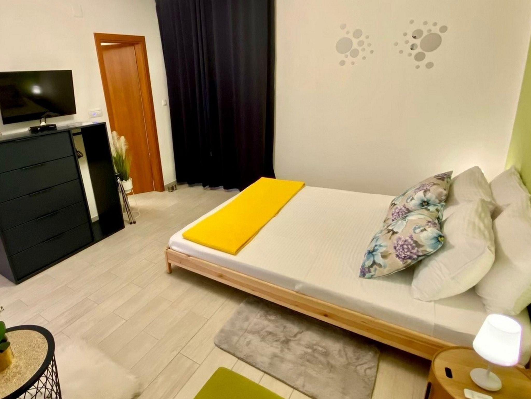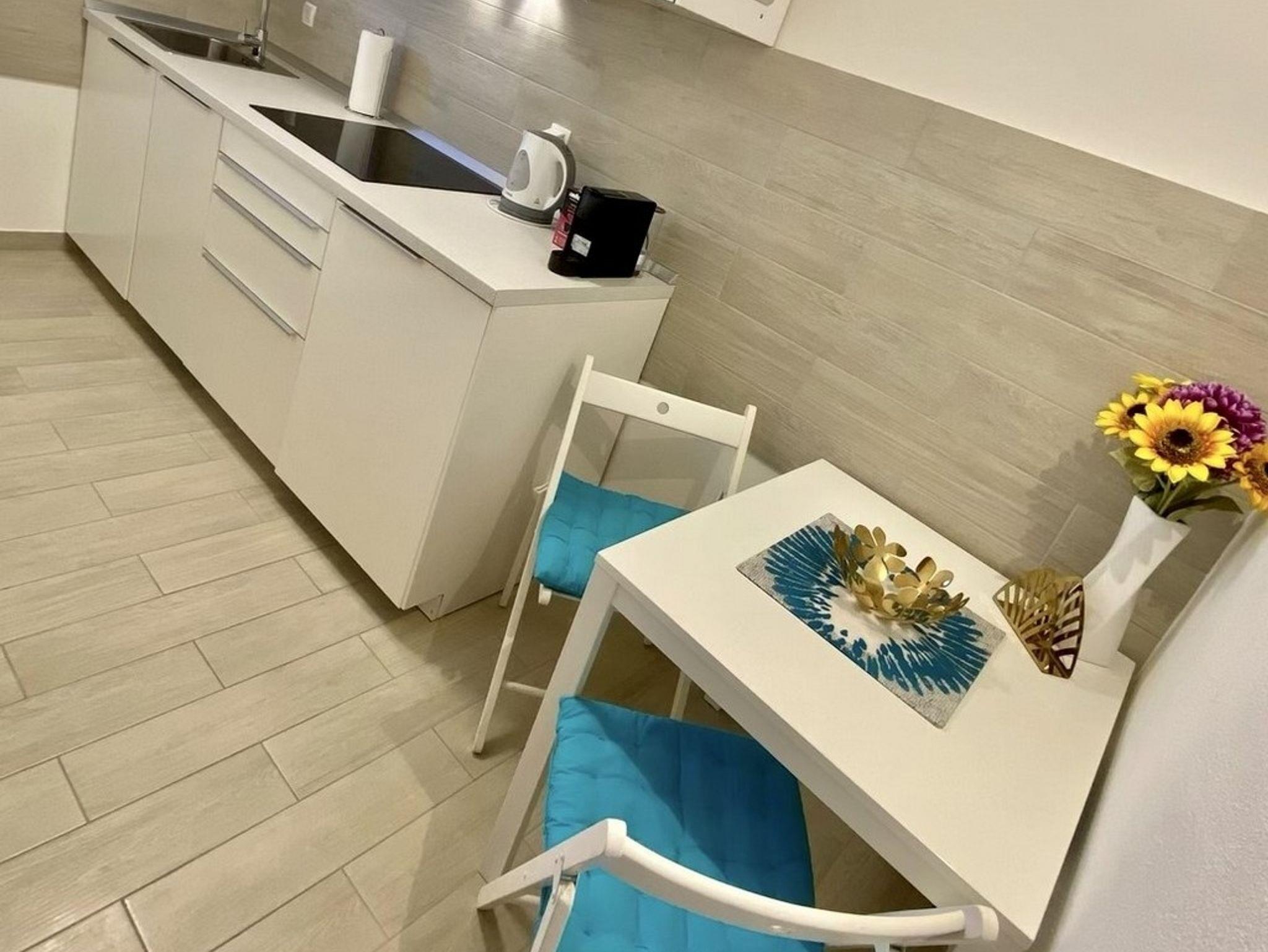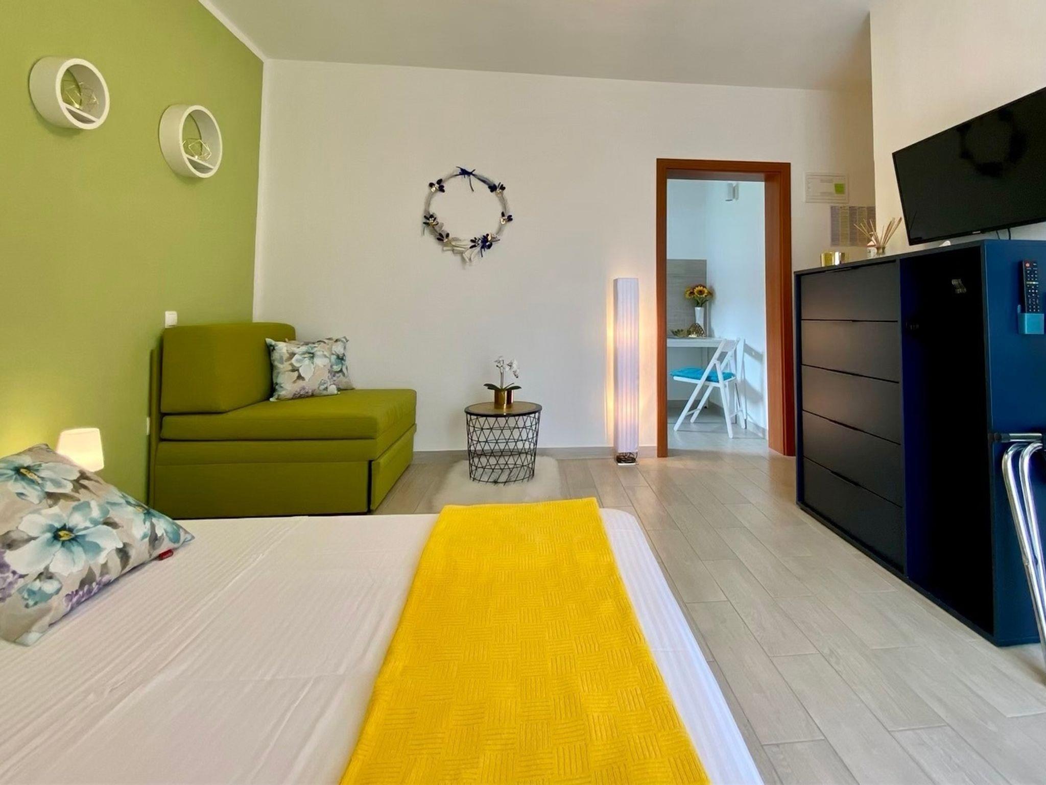 Studio bietet Platz für 2 Gäste. Die Betten sind in Schlafzimmern, die es 1 gibt, innerhalb einer Gesamtfläche von 23m2, angeordnet. Die Gäste haben einen eigenen Balkon zur Verfügung, auf der sie in warmen Sommernächten genießen können. Es ist erlaubt, Speisen auf dem Gemeinschafts-Grill vorzubereiten. IM PREIS INBEGRIFFEN: Kurtaxe, Endreinigung, Klimatisierung, Internet, Bügeleisen, Bügelbrett, Föhn. UNVERBINDLICHE ZUSÄTZLICHE KOSTEN: Wäschewaschen (5,00 € Waschen). Die Verfügbarkeit zusätzlicher Dienstleistungen in Ihrem reservierten Termin und die Preise derselben (falls nicht aufgeführt) müssen im Voraus überprüft werden. Zusätzliche Dienstleistungen die in der Zahlungsaufforderung nicht aufgeführt sind werden direkt beim Vermieter bezahlt, angenommen der Gast nutzt auch diese. Ermäßigung auf den Grundpreis: Gratistag 14=13 (bei einem Aufenthalt von 14 Tagen oder mehr erhalten Sie einen Gratistag für den Aufenthalt bis 31.12.26).