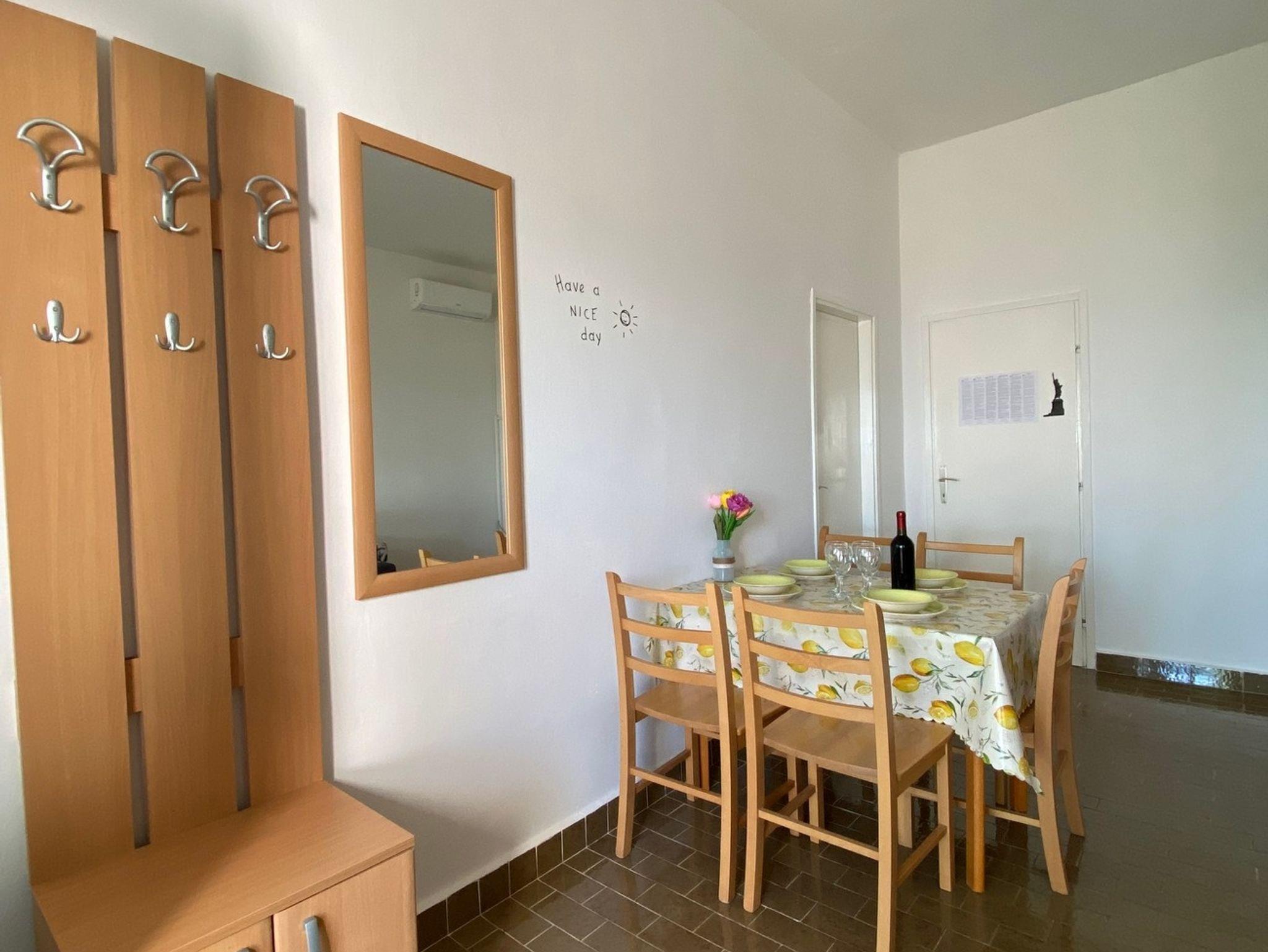 Ferienwohnung bietet Platz für 5 Gäste. Die Betten sind in Schlafzimmern, die es 1 gibt, und in Wohnzimmer, innerhalb einer Gesamtfläche von 55m2, angeordnet. Die Gäste haben eine eigene Terrasse zur Verfügung, auf der sie in warmen Sommernächten genießen können. Das Apartment bietet Meerblick. In der Unterkunftseinheit besteht die Möglichkeit des Mitbringens von Haustieren gegen Aufpreis. IM PREIS INBEGRIFFEN: Kurtaxe, Endreinigung, Klimatisierung, Parkplatz, Internet, Föhn. UNVERBINDLICHE ZUSÄTZLICHE KOSTEN: Haustiere (10,00 € pro Nacht). Die Verfügbarkeit zusätzlicher Dienstleistungen in Ihrem reservierten Termin und die Preise derselben (falls nicht aufgeführt) müssen im Voraus überprüft werden. Zusätzliche Dienstleistungen die in der Zahlungsaufforderung nicht aufgeführt sind werden direkt beim Vermieter bezahlt, angenommen der Gast nutzt auch diese.