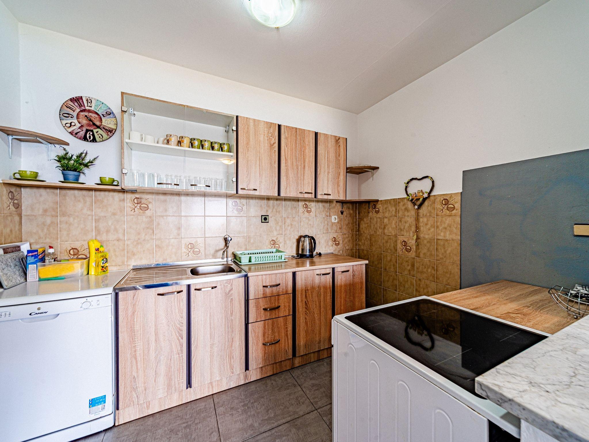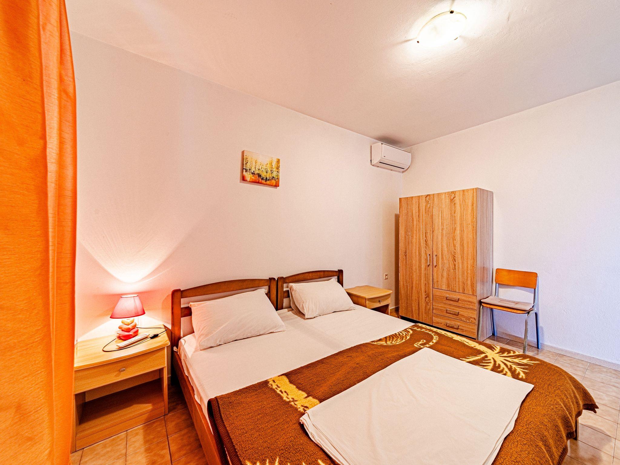 Ferienwohnung bietet Platz für 8 Gäste. Die Betten sind in Schlafzimmern, die es 4 gibt, innerhalb einer Gesamtfläche von 93m2, angeordnet. Die Gäste haben eine eigene Terrasse zur Verfügung, auf der sie in warmen Sommernächten genießen können. Das Apartment bietet Meerblick. Es ist erlaubt, Speisen auf dem Gemeinschafts-Grill vorzubereiten. IM PREIS INBEGRIFFEN: Kurtaxe, Endreinigung, Klimatisierung, Parkplatz, Internet, Bootsanlegeplatz, Kinderbett, Zusatzbett, Bügeleisen, Föhn, Liegestühle. VERBINDLICHE ZUSÄTZLICHE KOSTEN: Aufzahlung für Kurzaufenthalte (prozentualer Zuschlag pro Nächtigungsanzahl: 30% - 1, 20% - 2, 10% - 3). Die Verfügbarkeit zusätzlicher Dienstleistungen in Ihrem reservierten Termin und die Preise derselben (falls nicht aufgeführt) müssen im Voraus überprüft werden. Zusätzliche Dienstleistungen die in der Zahlungsaufforderung nicht aufgeführt sind werden direkt beim Vermieter bezahlt, angenommen der Gast nutzt auch diese.