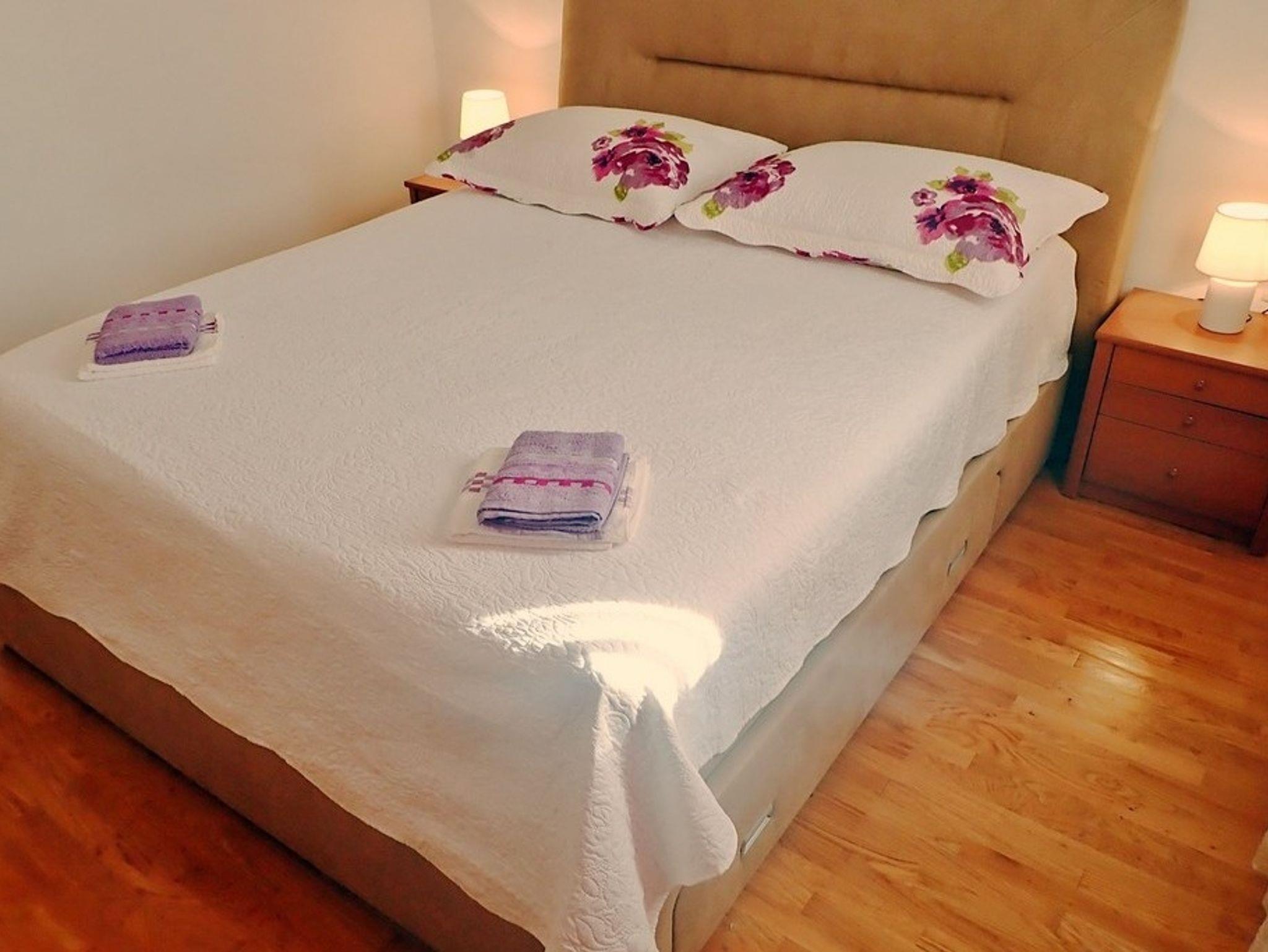 Ferienwohnung bietet Platz für 6 Gäste. Die Betten sind in Schlafzimmern, die es 3 gibt, innerhalb einer Gesamtfläche von 100m2, angeordnet. Die Gäste haben einen eigenen Balkon zur Verfügung, auf der sie in warmen Sommernächten genießen können. Das Apartment bietet Meerblick. Es ist erlaubt, Speisen auf dem Gemeinschafts-Grill vorzubereiten. IM PREIS INBEGRIFFEN: Kurtaxe, Endreinigung, Klimatisierung, Parkplatz, Internet. Die Verfügbarkeit zusätzlicher Dienstleistungen in Ihrem reservierten Termin und die Preise derselben (falls nicht aufgeführt) müssen im Voraus überprüft werden. Zusätzliche Dienstleistungen die in der Zahlungsaufforderung nicht aufgeführt sind werden direkt beim Vermieter bezahlt, angenommen der Gast nutzt auch diese.