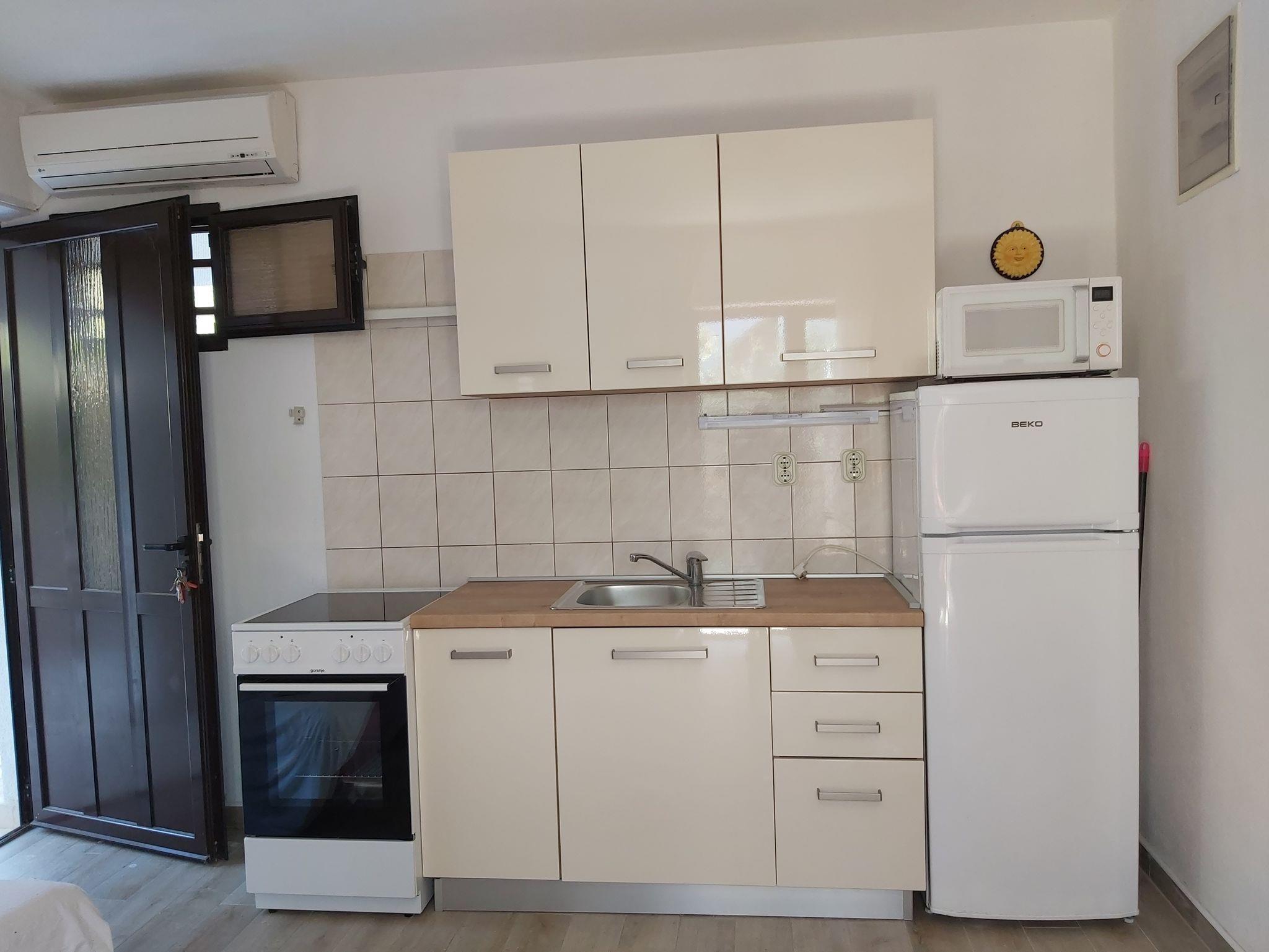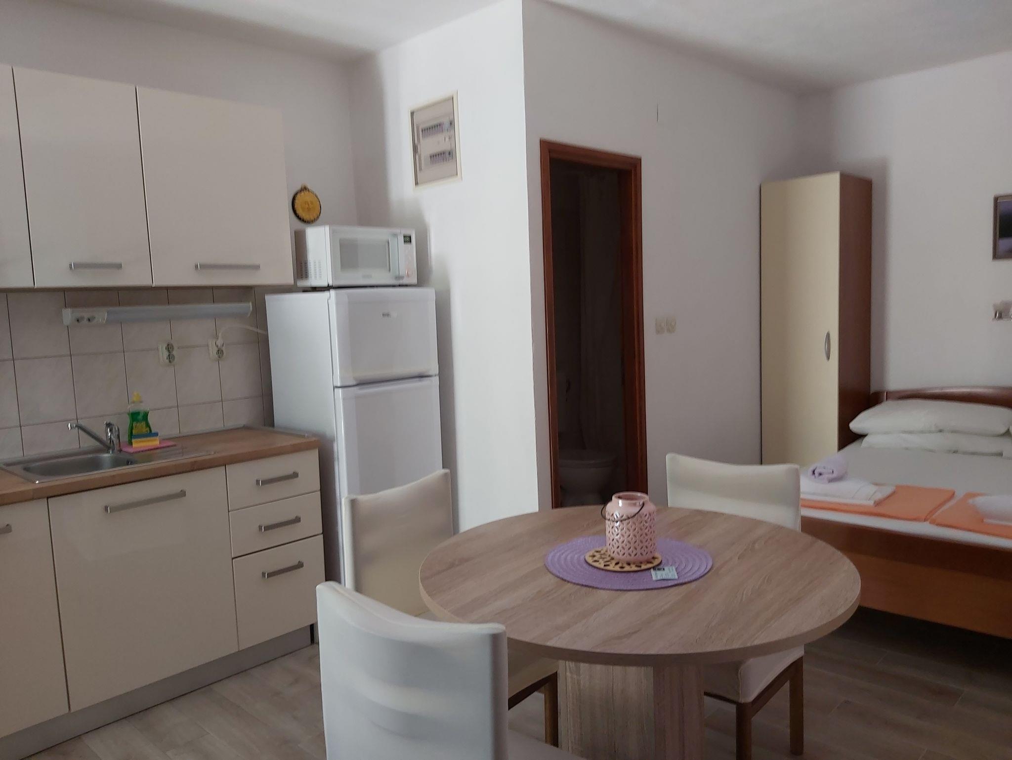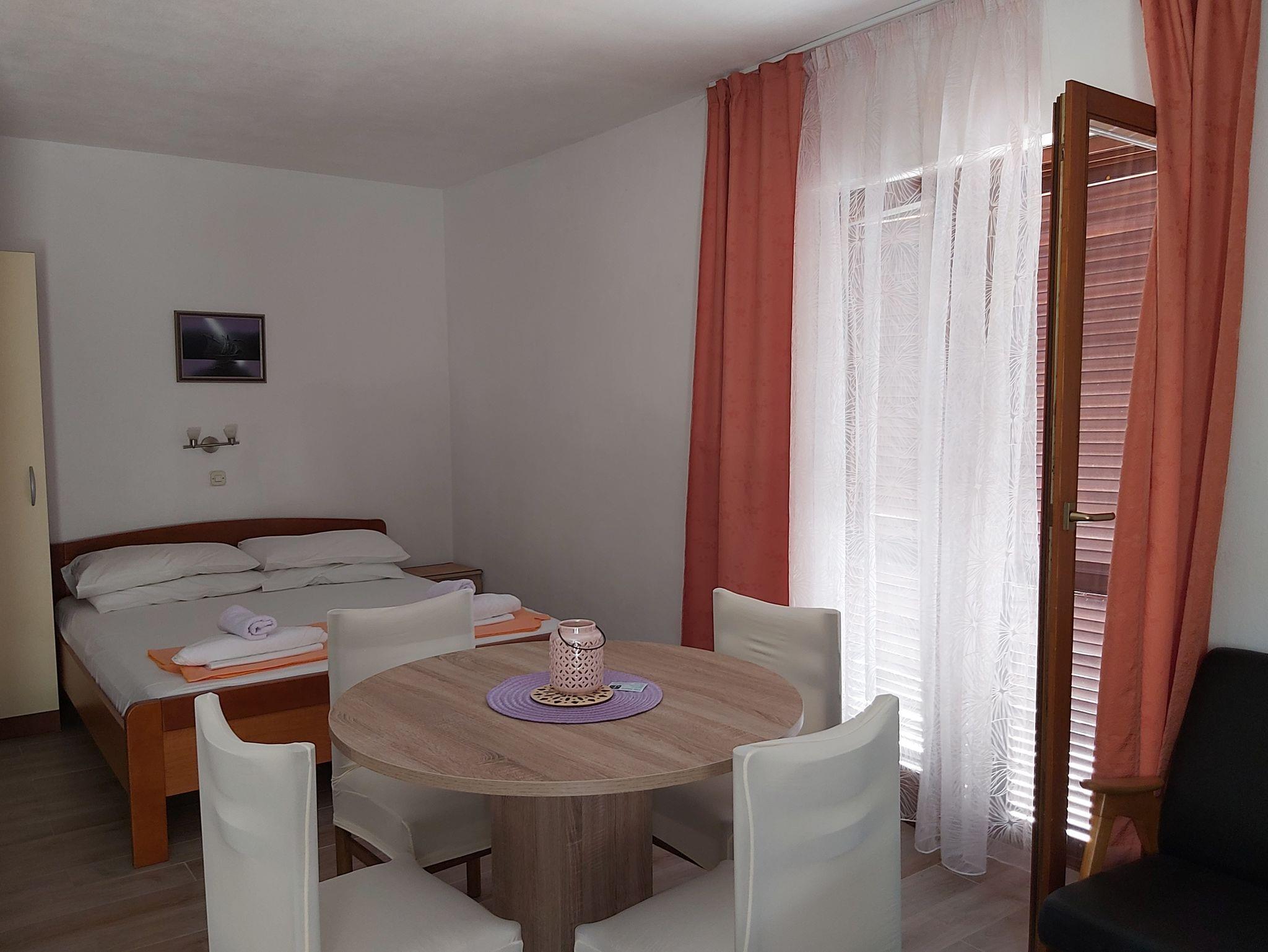Studio bietet Platz für 3 Gäste. Die Betten sind in Schlafzimmern, die es 1 gibt, und in Wohnzimmer, innerhalb einer Gesamtfläche von 23m2, angeordnet. Die Gäste haben eine eigene Terrasse zur Verfügung, auf der sie in warmen Sommernächten genießen können. Das Studio-Apartment bietet Meerblick. Für vollen Genuss und Entspannung gibt es einen privaten Grill für Gäste dieser Unterkunft. IM PREIS INBEGRIFFEN: Kurtaxe, Endreinigung, Klimatisierung, Parkplatz, Internet, Wäschewaschen, Kinderbett, Bügeleisen, Bügelbrett, Föhn. VERBINDLICHE ZUSÄTZLICHE KOSTEN: Aufzahlung für Kurzaufenthalte (prozentualer Zuschlag pro Nächtigungsanzahl: 30% - 1, 20% - 2, 10% - 3). Die Verfügbarkeit zusätzlicher Dienstleistungen in Ihrem reservierten Termin und die Preise derselben (falls nicht aufgeführt) müssen im Voraus überprüft werden. Zusätzliche Dienstleistungen die in der Zahlungsaufforderung nicht aufgeführt sind werden direkt beim Vermieter bezahlt, angenommen der Gast nutzt auch diese. Ermäßigung auf den Grundpreis: Gratistag 21=19 (bei einem Aufenthalt von 21 Tagen oder mehr erhalten Sie 2 Gratistage für den Aufenthalt bis 31.12.26).