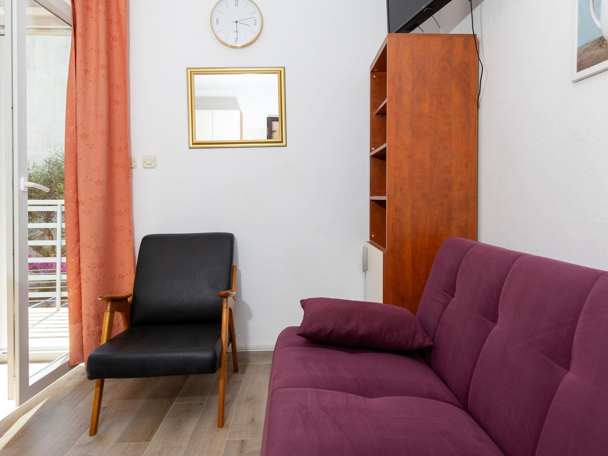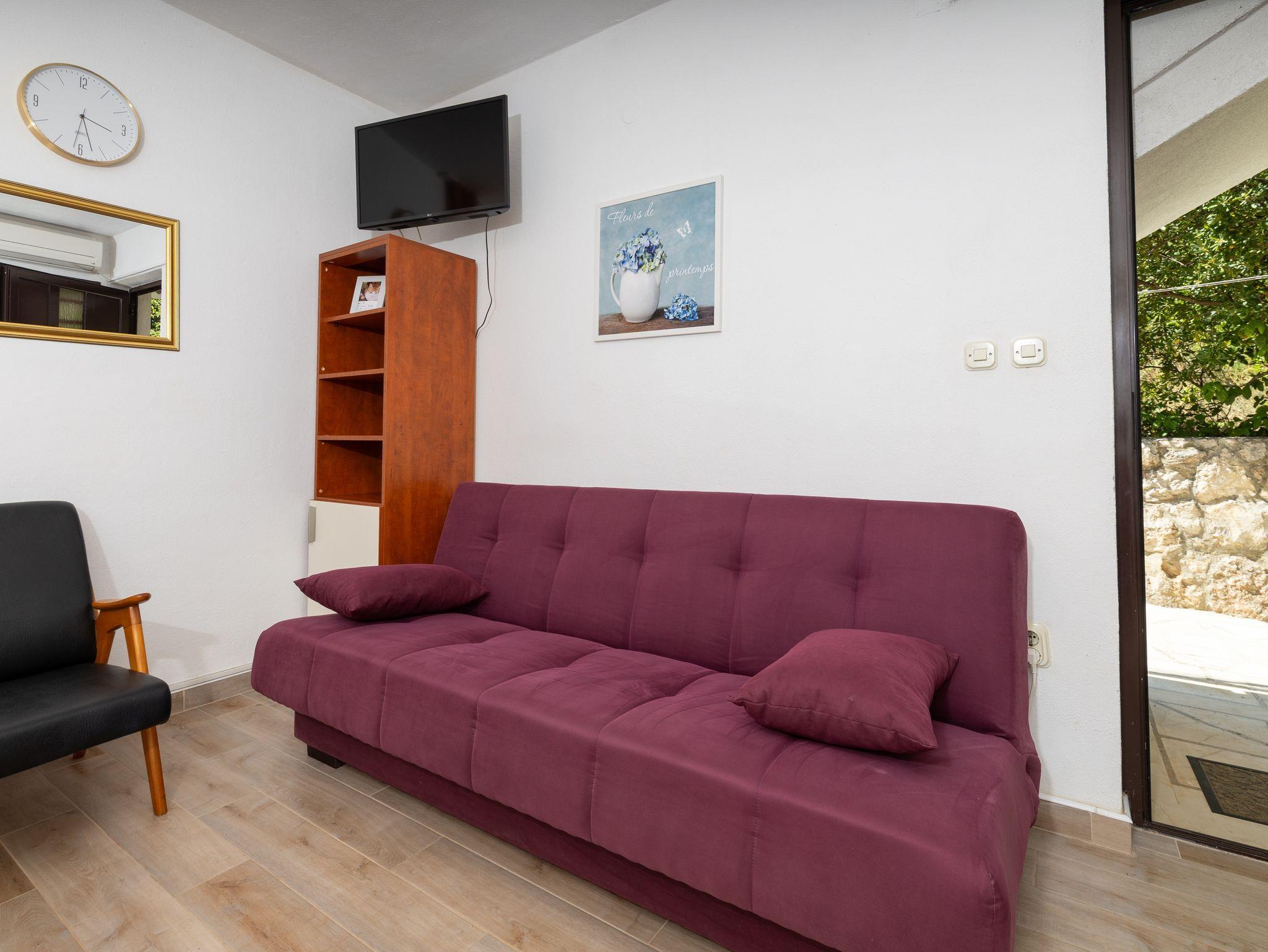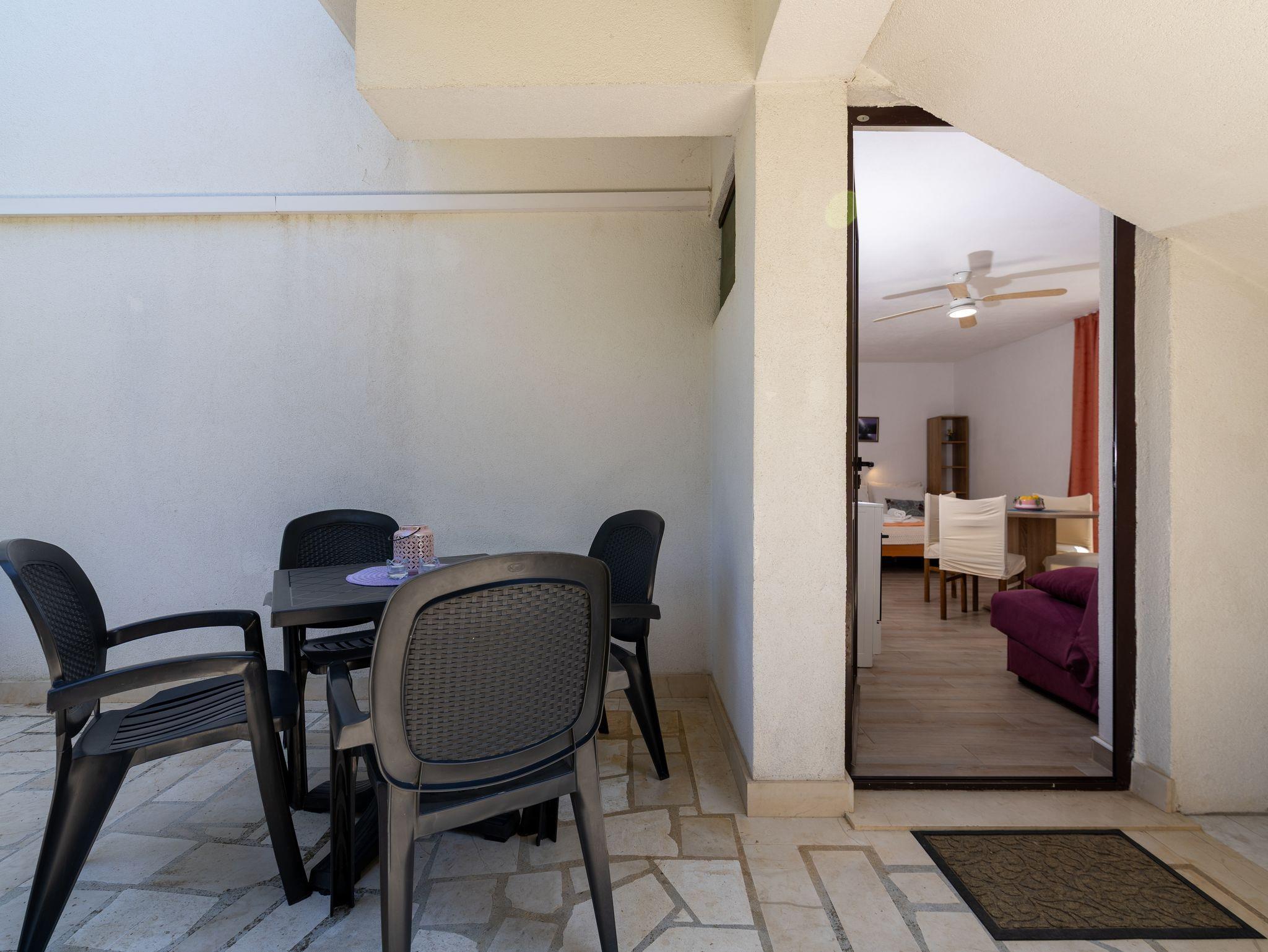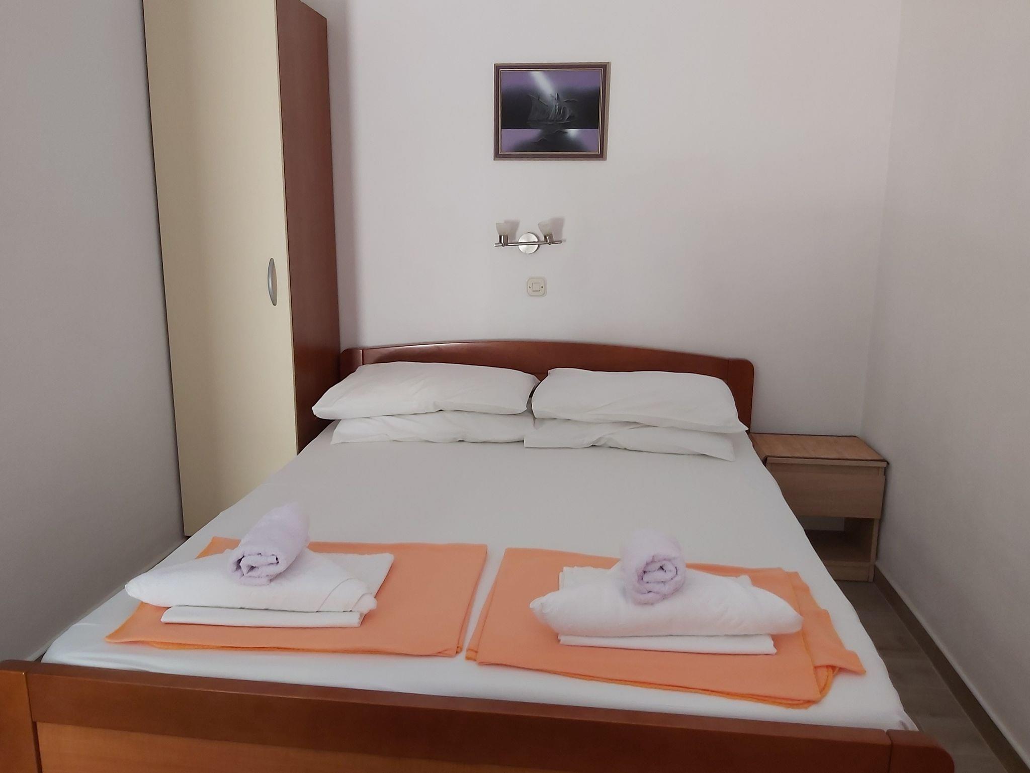 Studio bietet Platz für 3 Gäste. Die Betten sind in Schlafzimmern, die es 1 gibt, und in Wohnzimmer, innerhalb einer Gesamtfläche von 23m2, angeordnet. Die Gäste haben eine eigene Terrasse zur Verfügung, auf der sie in warmen Sommernächten genießen können. Das Studio-Apartment bietet Meerblick. Für vollen Genuss und Entspannung gibt es einen privaten Grill für Gäste dieser Unterkunft. IM PREIS INBEGRIFFEN: Kurtaxe, Endreinigung, Klimatisierung, Parkplatz, Internet, Wäschewaschen, Kinderbett, Bügeleisen, Bügelbrett, Föhn. VERBINDLICHE ZUSÄTZLICHE KOSTEN: Aufzahlung für Kurzaufenthalte (prozentualer Zuschlag pro Nächtigungsanzahl: 30% - 1, 20% - 2, 10% - 3). Die Verfügbarkeit zusätzlicher Dienstleistungen in Ihrem reservierten Termin und die Preise derselben (falls nicht aufgeführt) müssen im Voraus überprüft werden. Zusätzliche Dienstleistungen die in der Zahlungsaufforderung nicht aufgeführt sind werden direkt beim Vermieter bezahlt, angenommen der Gast nutzt auch diese. Ermäßigung auf den Grundpreis: Gratistag 21=19 (bei einem Aufenthalt von 21 Tagen oder mehr erhalten Sie 2 Gratistage für den Aufenthalt bis 31.12.26).