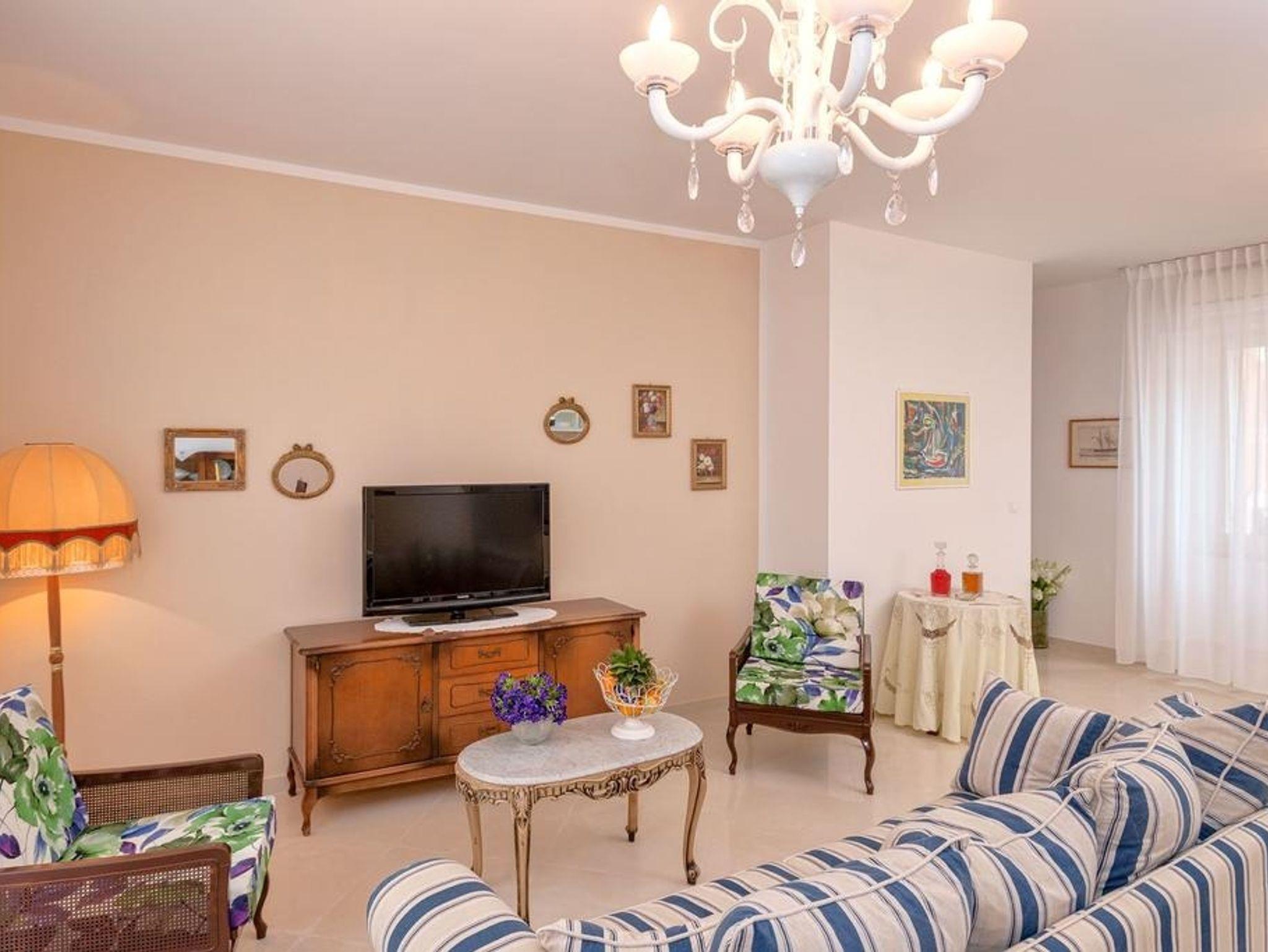 Ferienwohnung bietet Platz für 7 Gäste. Die Betten sind in Schlafzimmern, die es 3 gibt, innerhalb einer Gesamtfläche von 92m2, angeordnet. Die Gäste haben einen eigenen Balkon zur Verfügung, auf der sie in warmen Sommernächten genießen können. Das Apartment bietet Meerblick. Es ist erlaubt, Speisen auf dem Gemeinschafts-Grill vorzubereiten. Während ihres Aufenthalts können Gäste das gemeinsam zur Nutzung stehende Schwimmbad benutzen. IM PREIS INBEGRIFFEN: Kurtaxe, Endreinigung, Klimatisierung, Pool, Parkplatz, Internet, Kinderbett, Bügeleisen, Bügelbrett, Föhn. VERBINDLICHE ZUSÄTZLICHE KOSTEN: Aufzahlung für Kurzaufenthalte (prozentualer Zuschlag pro Nächtigungsanzahl: 30% - 1, 20% - 2, 10% - 3). Die Verfügbarkeit zusätzlicher Dienstleistungen in Ihrem reservierten Termin und die Preise derselben (falls nicht aufgeführt) müssen im Voraus überprüft werden. Zusätzliche Dienstleistungen die in der Zahlungsaufforderung nicht aufgeführt sind werden direkt beim Vermieter bezahlt, angenommen der Gast nutzt auch diese. Ermäßigung auf den Grundpreis: Gratistag 14=13 (bei einem Aufenthalt von 14 Tagen oder mehr erhalten Sie einen Gratistag für den Aufenthalt bis 31.12.26).