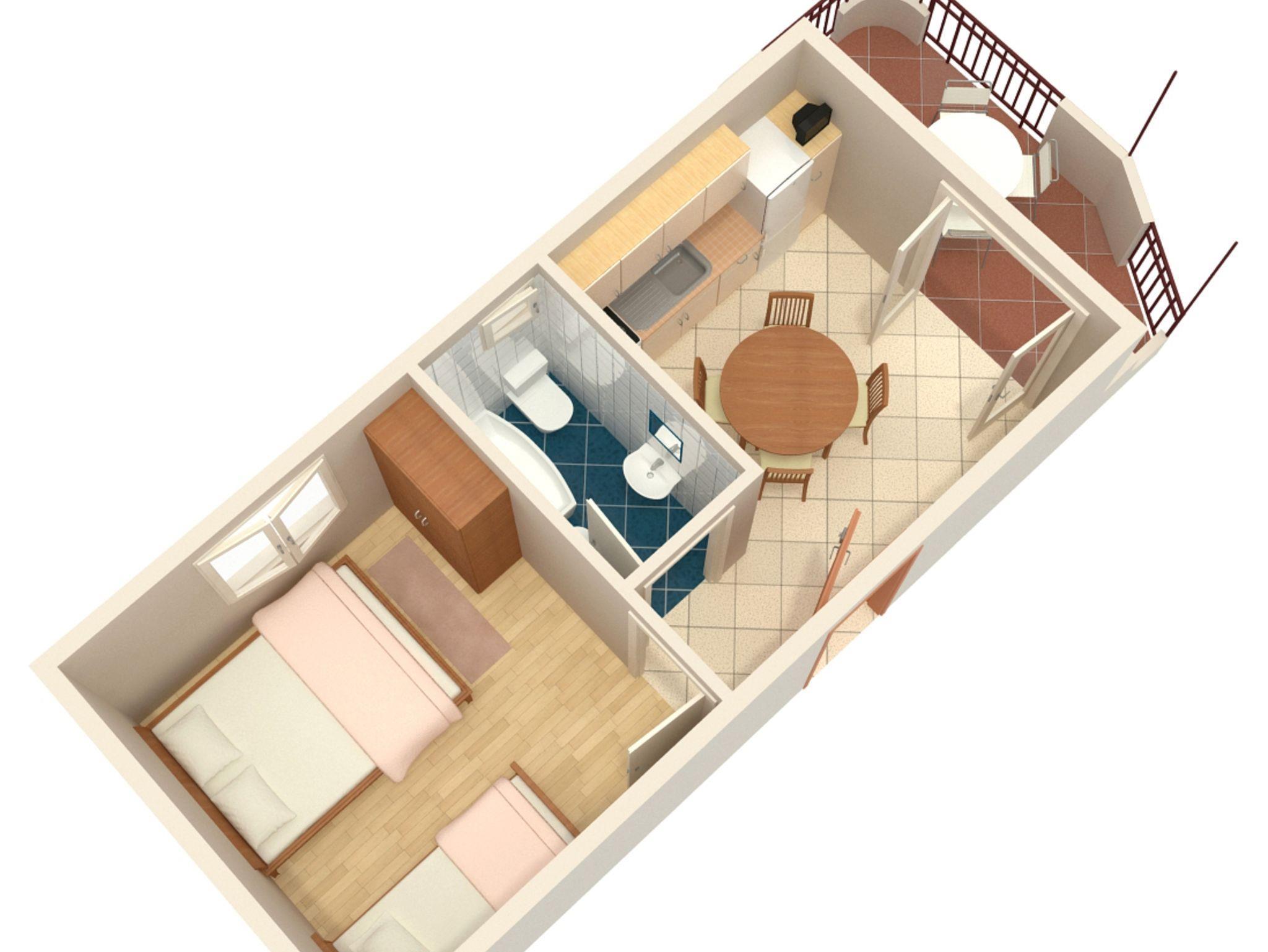 Ferienwohnung bietet Platz für 3 Gäste. Die Betten sind in Schlafzimmern, die es 1 gibt, innerhalb einer Gesamtfläche von 26m2, angeordnet. Die Gäste haben eine eigene Terrasse zur Verfügung, auf der sie in warmen Sommernächten genießen können. Es ist erlaubt, Speisen auf dem Gemeinschafts-Grill vorzubereiten. In der Unterkunftseinheit besteht die Möglichkeit des Mitbringens von Haustieren gegen Aufpreis. IM PREIS INBEGRIFFEN: Kurtaxe, Endreinigung, Klimatisierung, Parkplatz, Internet. VERBINDLICHE ZUSÄTZLICHE KOSTEN: Aufzahlung für Kurzaufenthalte (prozentualer Zuschlag pro Nächtigungsanzahl: 30% - 1, 20% - 2, 10% - 3). UNVERBINDLICHE ZUSÄTZLICHE KOSTEN: Haustiere (5,00 € pro Nacht). Die Verfügbarkeit zusätzlicher Dienstleistungen in Ihrem reservierten Termin und die Preise derselben (falls nicht aufgeführt) müssen im Voraus überprüft werden. Zusätzliche Dienstleistungen die in der Zahlungsaufforderung nicht aufgeführt sind werden direkt beim Vermieter bezahlt, angenommen der Gast nutzt auch diese.