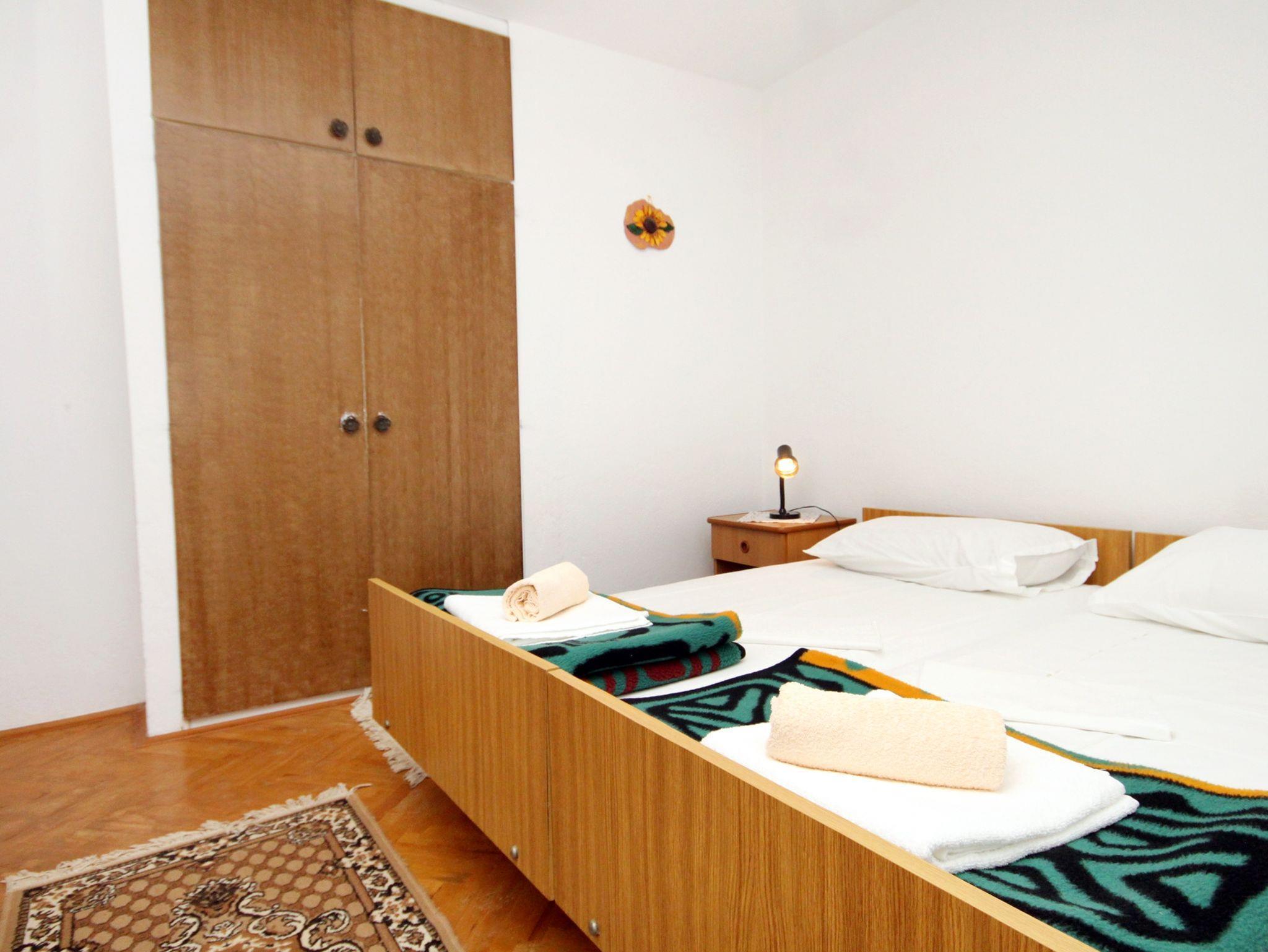 Ferienwohnung bietet Platz für 5 Gäste. Die Betten sind in Schlafzimmern, die es 2 gibt, innerhalb einer Gesamtfläche von 46m2, angeordnet. Die Gäste haben eine eigene Terrasse zur Verfügung, auf der sie in warmen Sommernächten genießen können. Das Apartment bietet Meerblick. Es ist erlaubt, Speisen auf dem Gemeinschafts-Grill vorzubereiten. In der Unterkunftseinheit besteht die Möglichkeit des Mitbringens von Haustieren, und die Dienstleistung ist im Preis der Unterkunft enthalten. IM PREIS INBEGRIFFEN: Kurtaxe, Endreinigung, Klimatisierung, Parkplatz, Internet, Haustiere, Bügeleisen, Bügelbrett, Föhn. Die Verfügbarkeit zusätzlicher Dienstleistungen in Ihrem reservierten Termin und die Preise derselben (falls nicht aufgeführt) müssen im Voraus überprüft werden. Zusätzliche Dienstleistungen die in der Zahlungsaufforderung nicht aufgeführt sind werden direkt beim Vermieter bezahlt, angenommen der Gast nutzt auch diese. Ermäßigung auf den Grundpreis: Gratistag 14=13 (bei einem Aufenthalt von 14 Tagen oder mehr erhalten Sie einen Gratistag für den Aufenthalt bis 31.12.26).