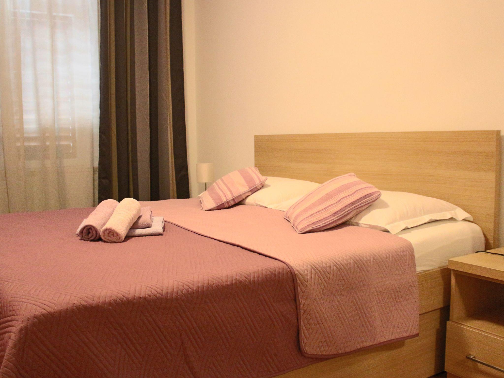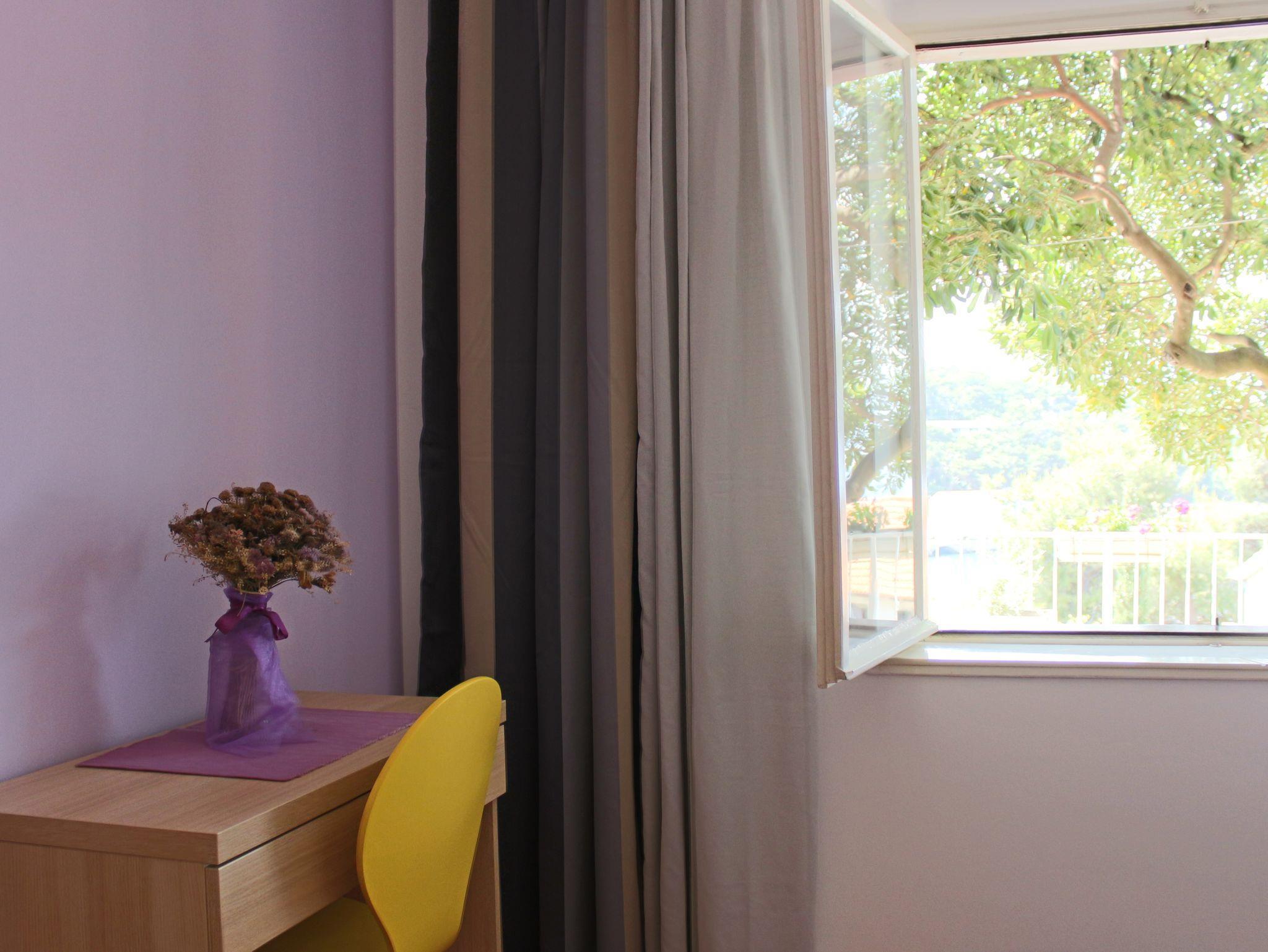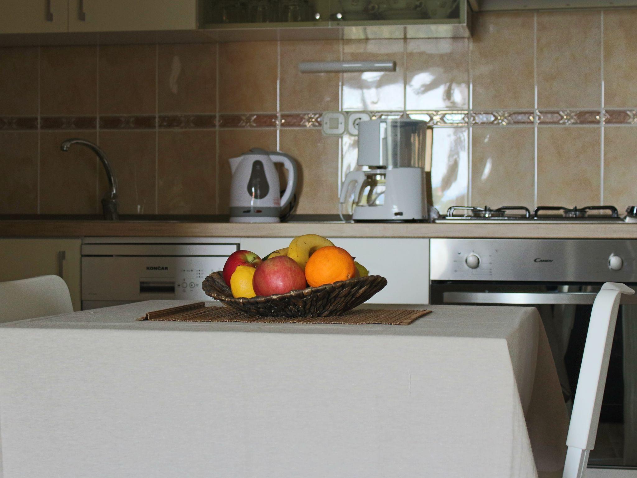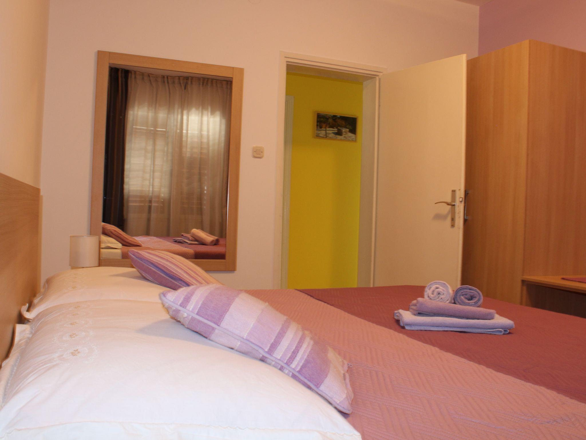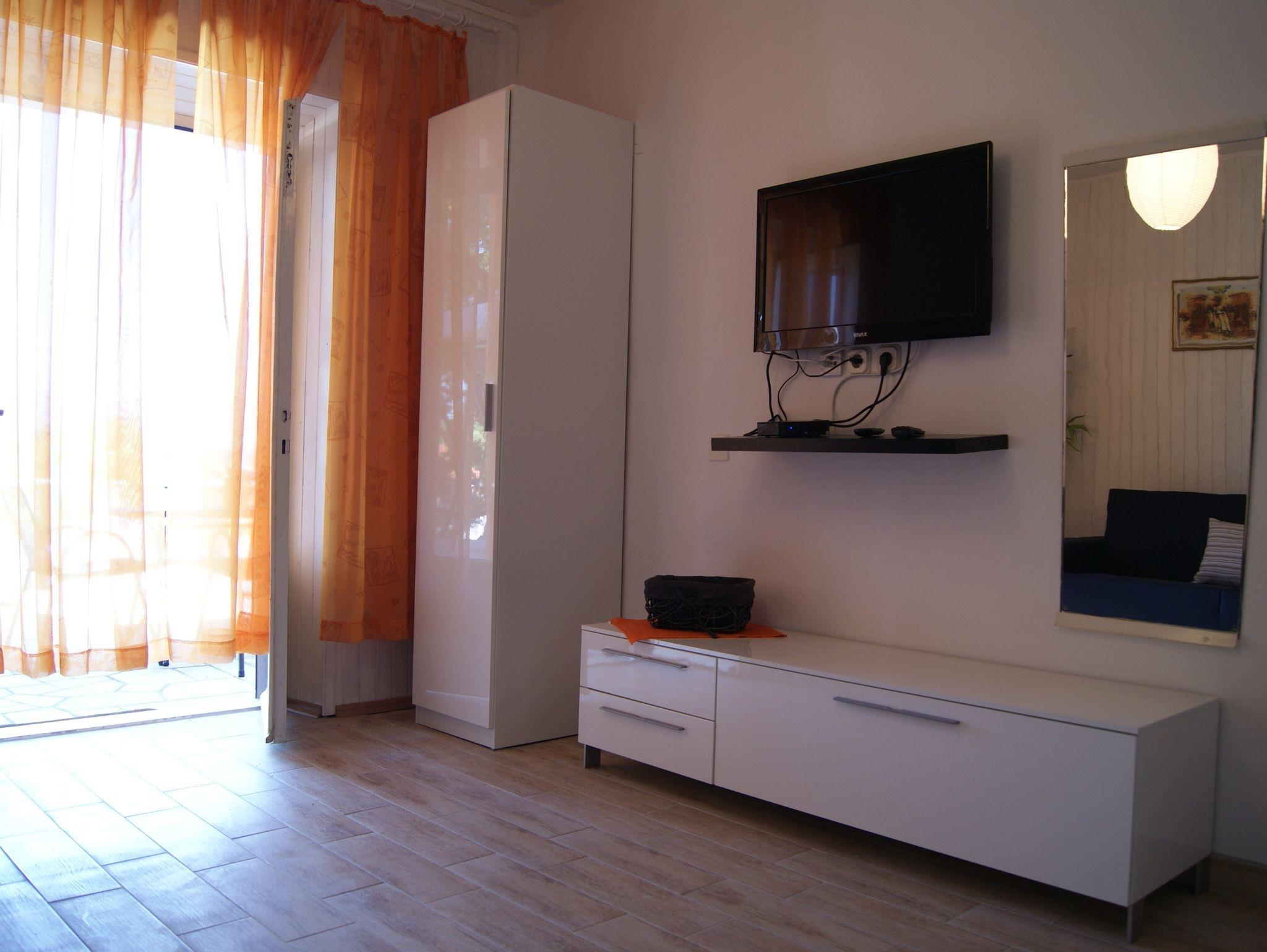 Ferienwohnung bietet Platz für 3 Gäste. Die Betten sind in Schlafzimmern, die es 1 gibt, und in Wohnzimmer, innerhalb einer Gesamtfläche von 34m2, angeordnet. Die Gäste haben eine eigene Terrasse zur Verfügung, auf der sie in warmen Sommernächten genießen können. Das Apartment bietet Meerblick. In der Unterkunftseinheit besteht die Möglichkeit des Mitbringens von Haustieren, und die Dienstleistung ist im Preis der Unterkunft enthalten. IM PREIS INBEGRIFFEN: Kurtaxe, Endreinigung, Parkplatz, Internet, Haustiere, Föhn. VERBINDLICHE ZUSÄTZLICHE KOSTEN: Aufzahlung für Kurzaufenthalte (prozentualer Zuschlag pro Nächtigungsanzahl: 30% - 1, 20% - 2, 10% - 3). UNVERBINDLICHE ZUSÄTZLICHE KOSTEN: Wäschewaschen (5,00 € Waschen). Die Verfügbarkeit zusätzlicher Dienstleistungen in Ihrem reservierten Termin und die Preise derselben (falls nicht aufgeführt) müssen im Voraus überprüft werden. Zusätzliche Dienstleistungen die in der Zahlungsaufforderung nicht aufgeführt sind werden direkt beim Vermieter bezahlt, angenommen der Gast nutzt auch diese.